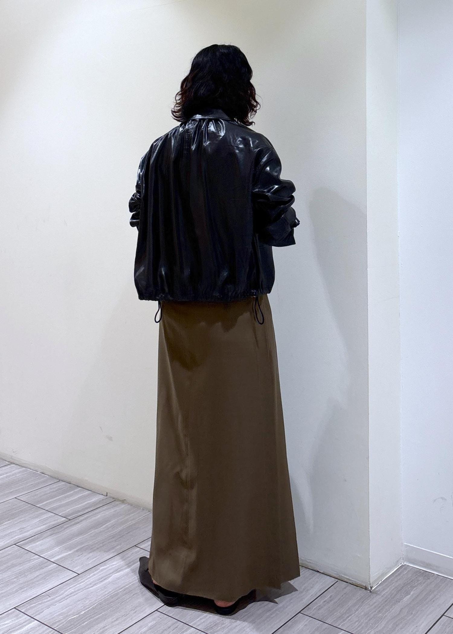 レザーライクブルゾンを合わせてメンズライクな雰囲気をプラスしました!