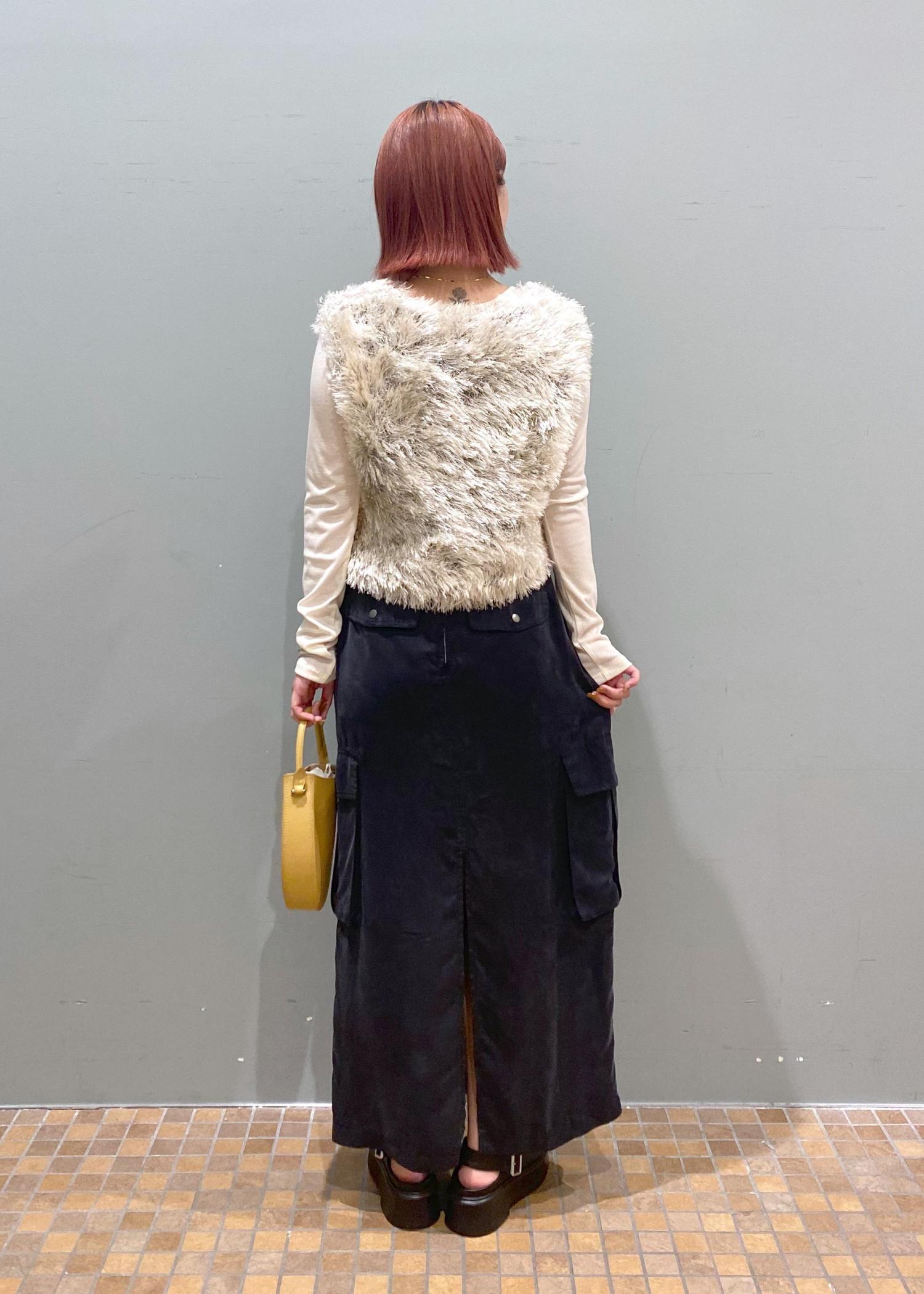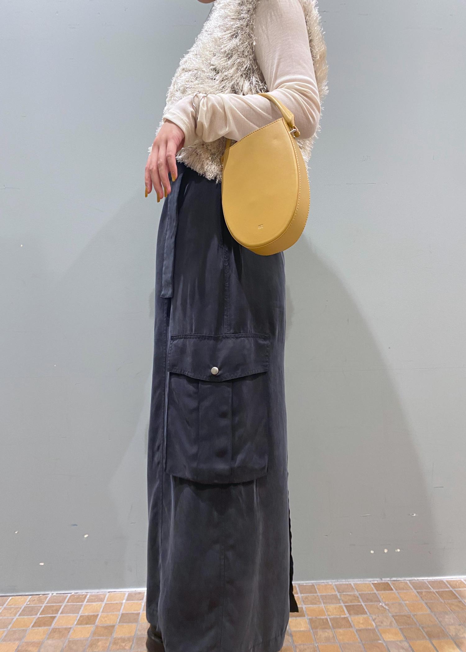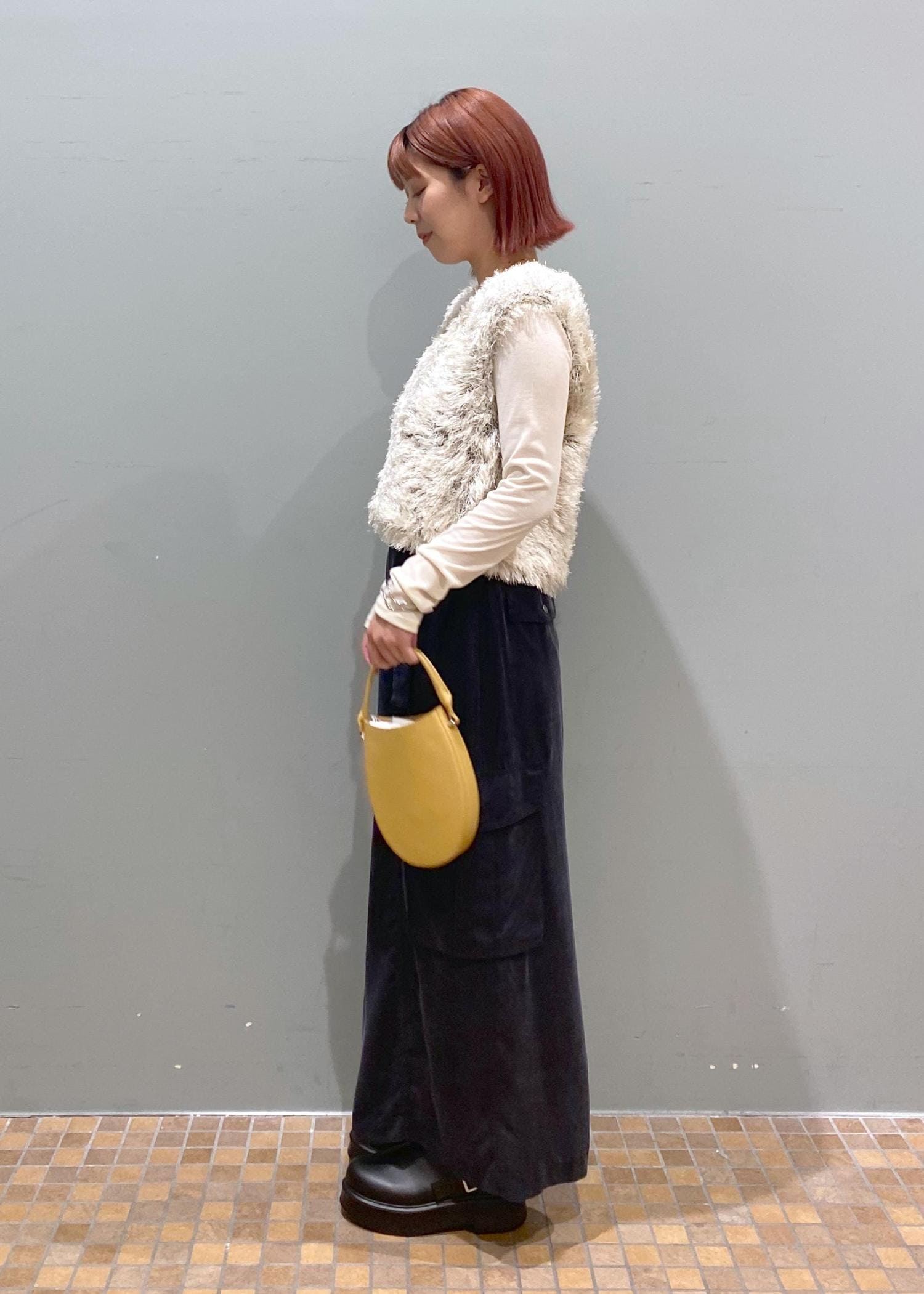 今回は新作のキュプラカーゴスカートを使って少し秋先取りでコーディネートを組んでみました!