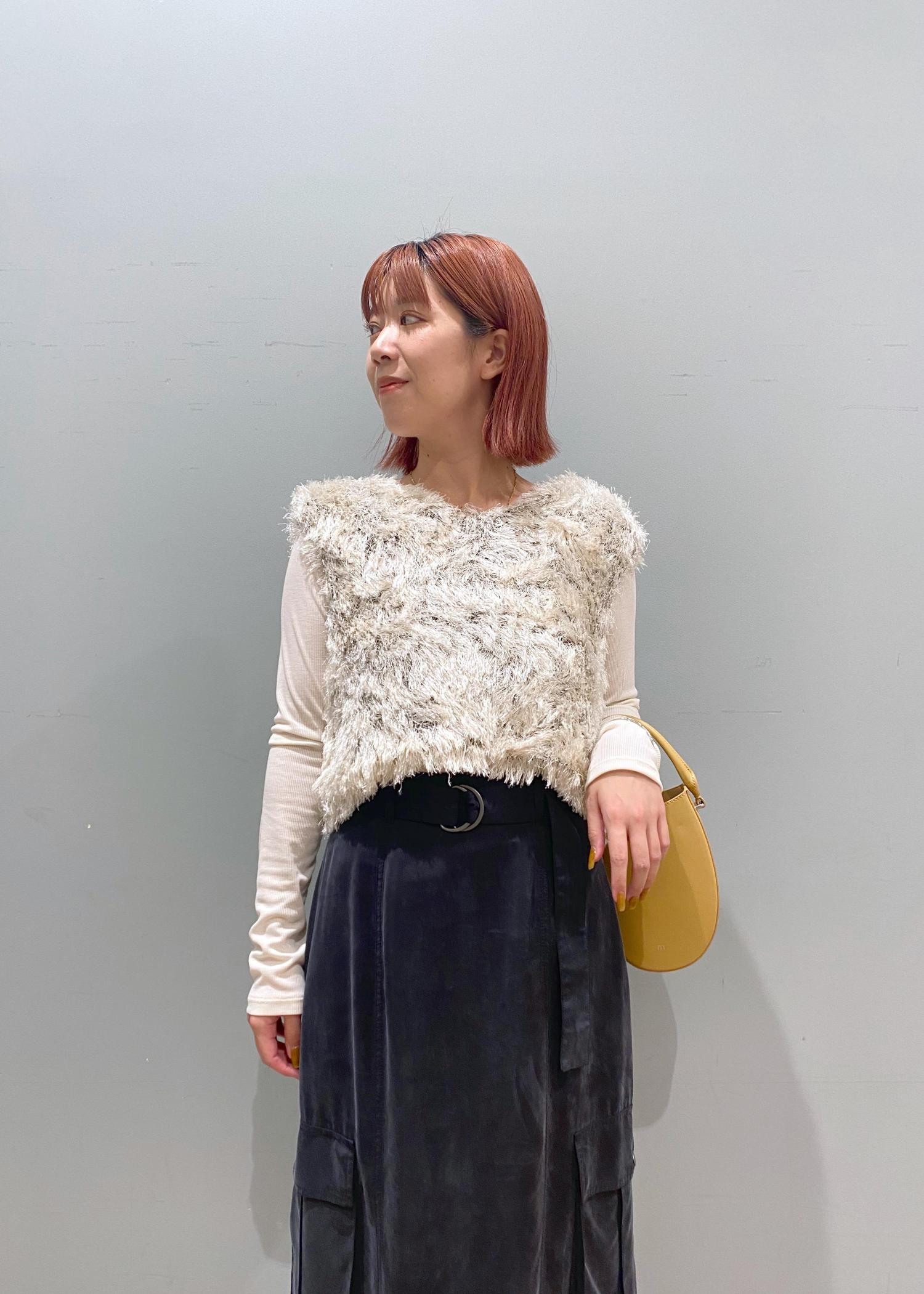 ADAM ET ROPÉ FEMMEフェザーベストキナリ系 / F¥13,860レビュー1枚で主役級なファーベスト!キャミソールやTシャツの上から、ワンピにレイヤード、シアーロンTと重ねて...1枚あるだけでいつものコーディネートも雰囲気がガラっと変わるアイテムです♡