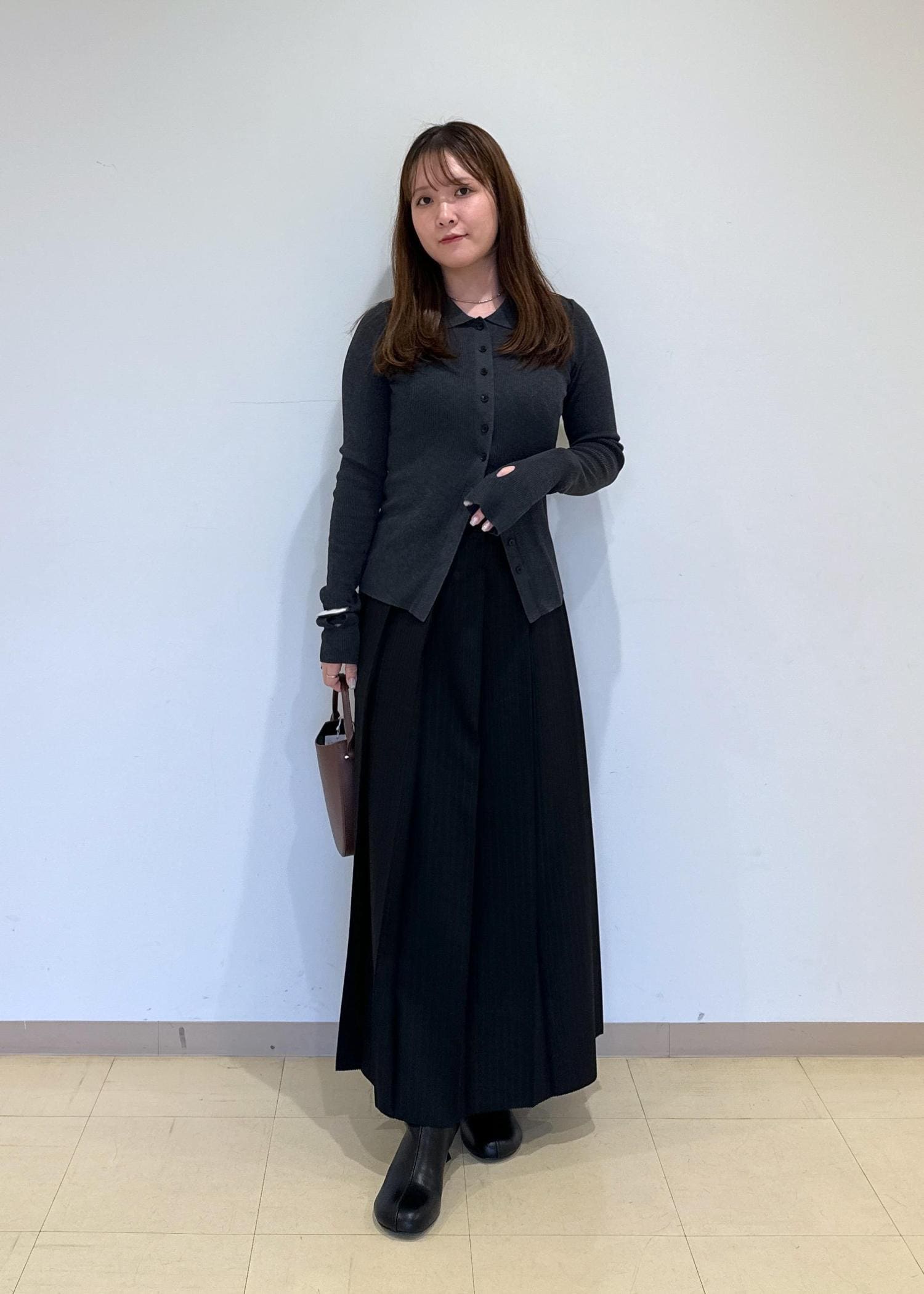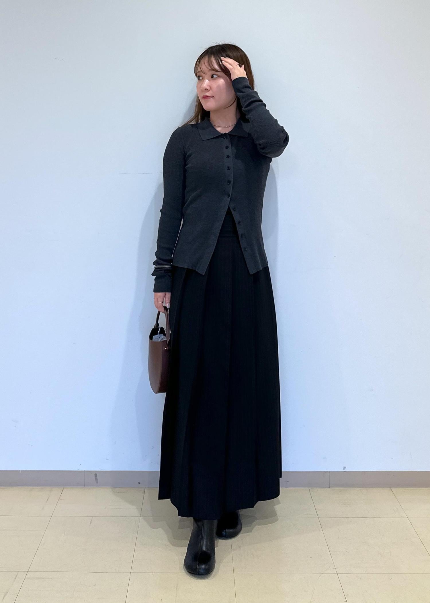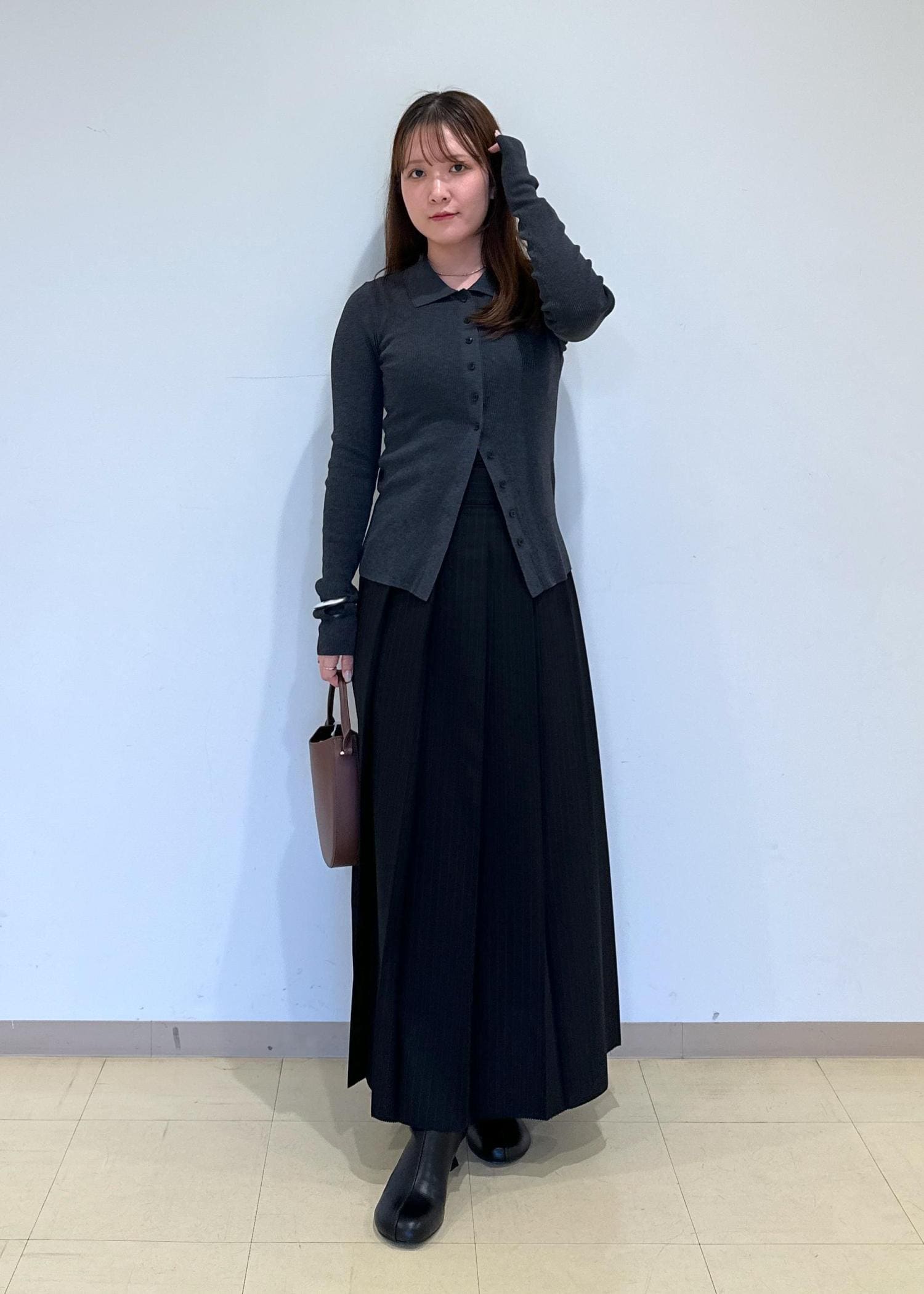 エモエレのフロントプリーツスカートを使った少し大人なコーデです。
