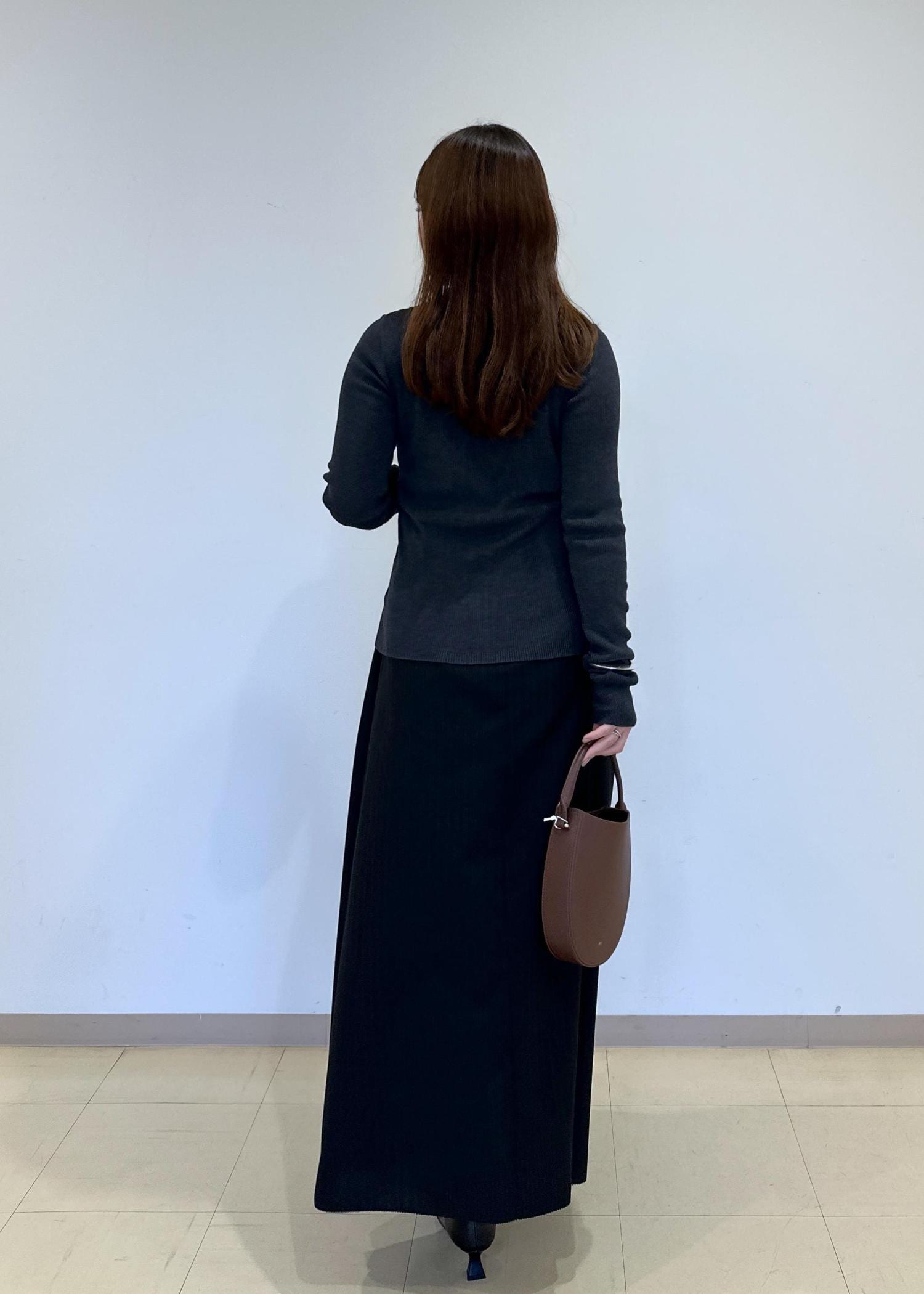 スカートは歩くとスリットから足が見えて女性らしさも出してくれて、前後で見え方が違うのも可愛いポイントです!リアルバイしました