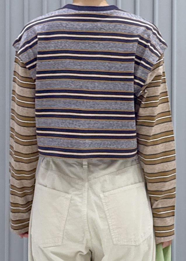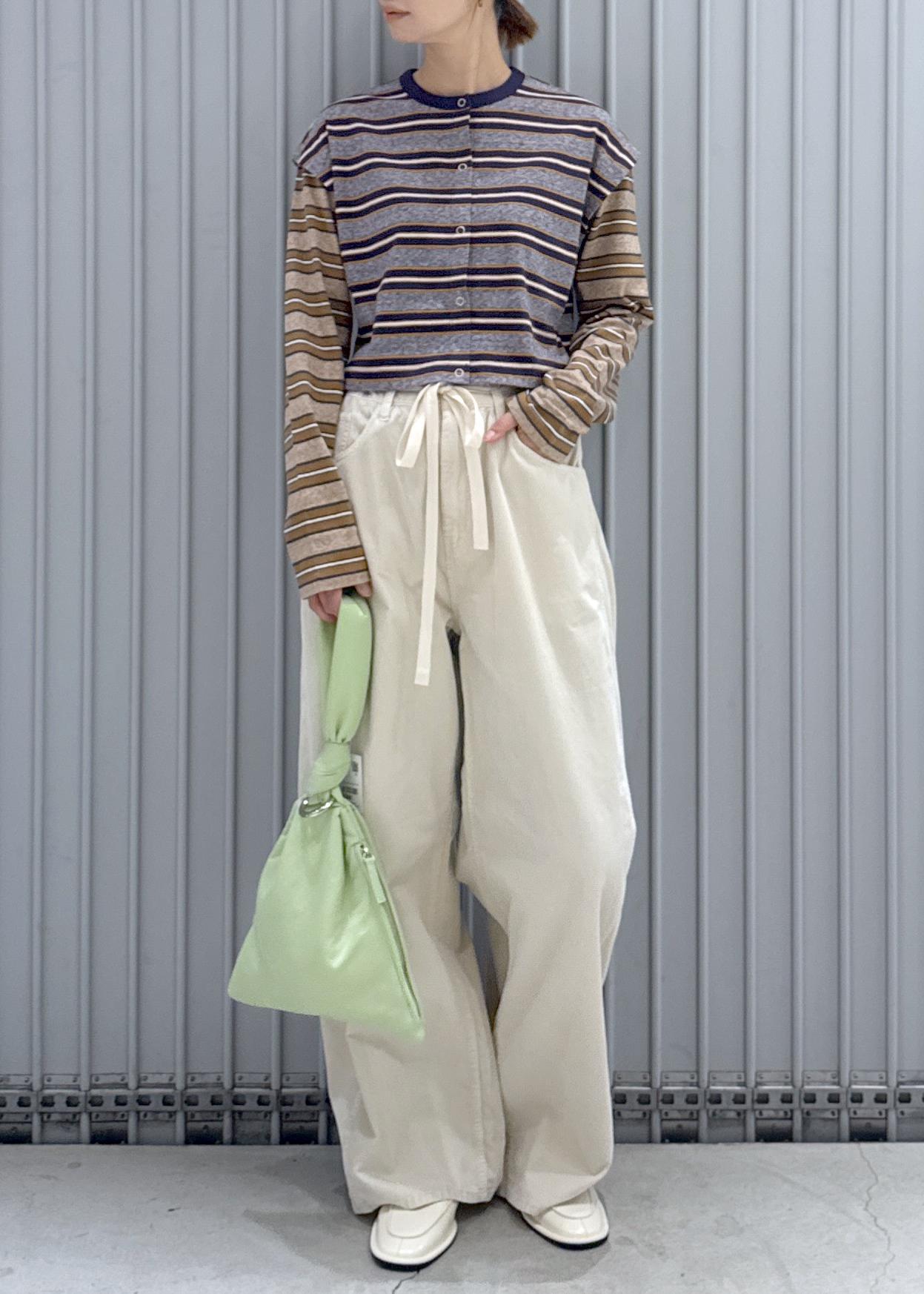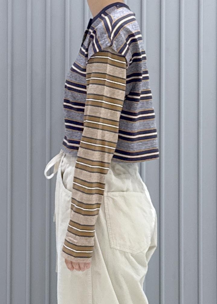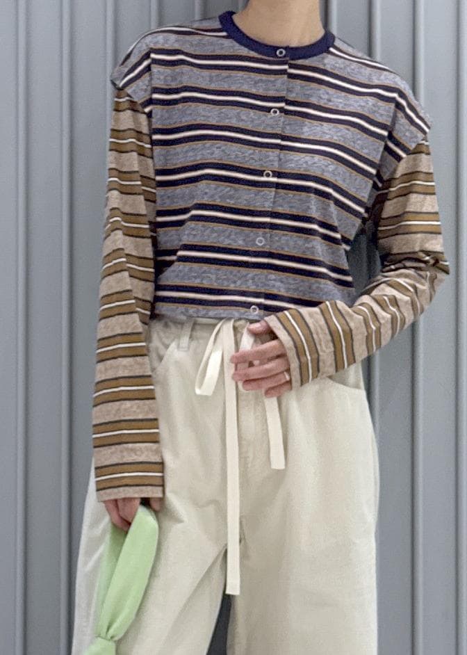 アームだけカラーを変えた組み合わせのこちらのボーダーカーディガン!