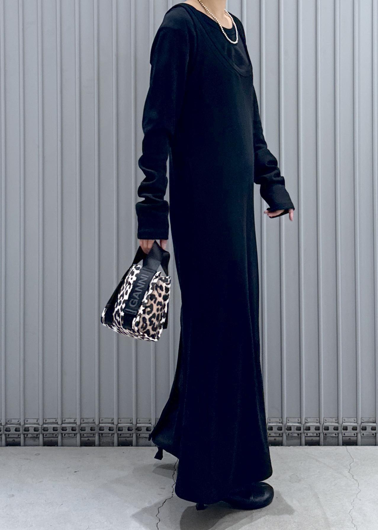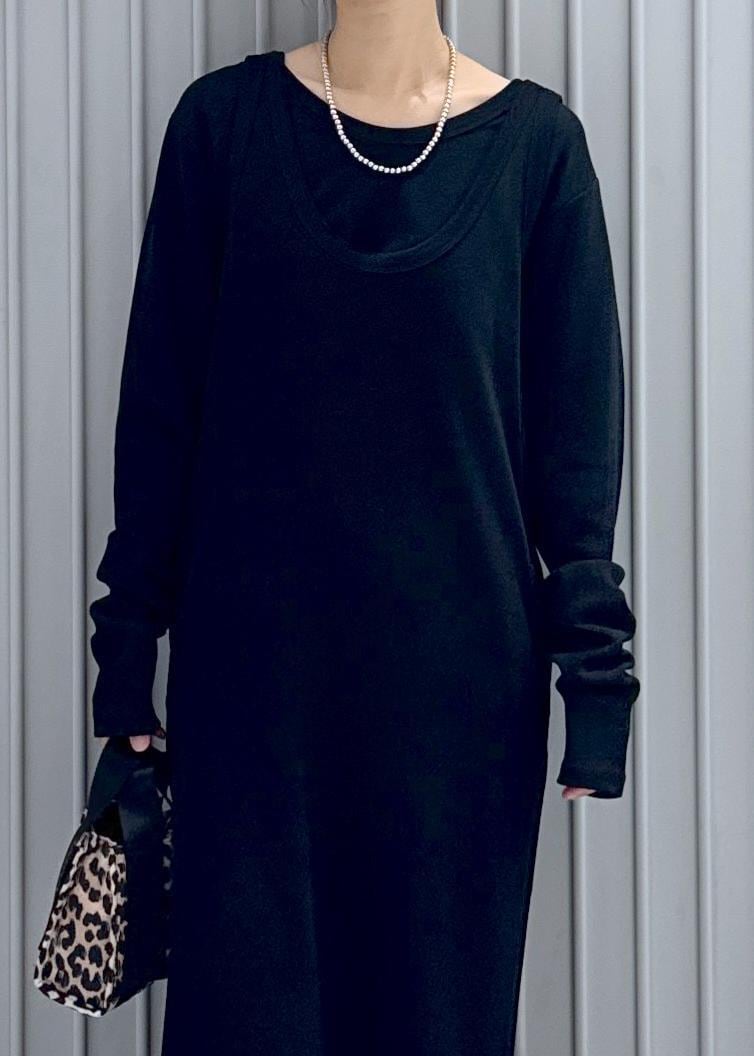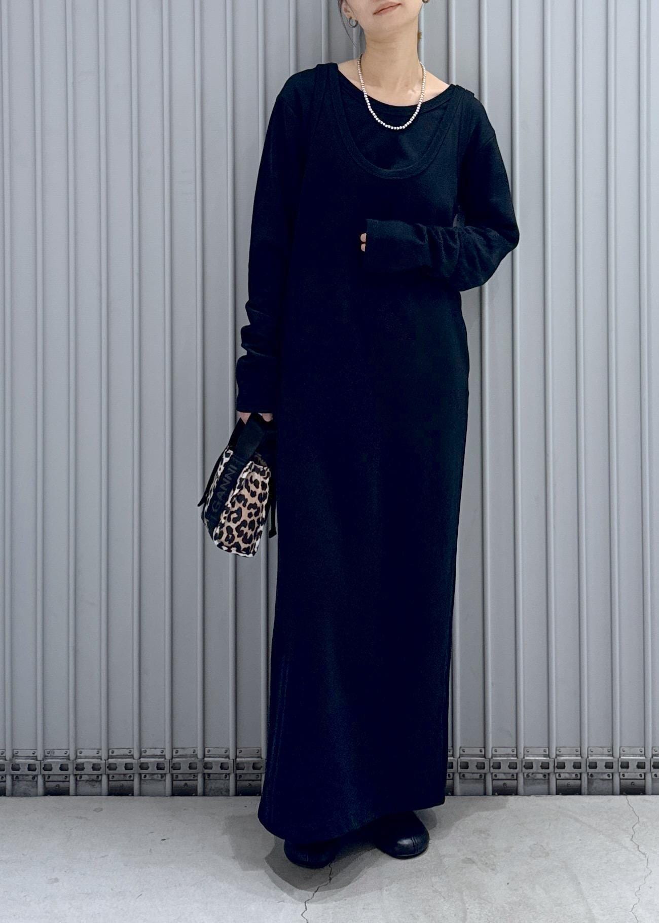 ADAM ET ROPÉ FEMME【サステナブル】Wフェイスジャージーセットワンピースブラック / 38¥11,880レビュー165センチ38サイズ着用。