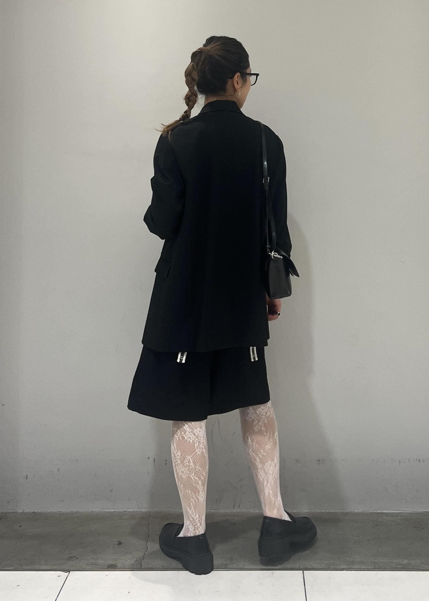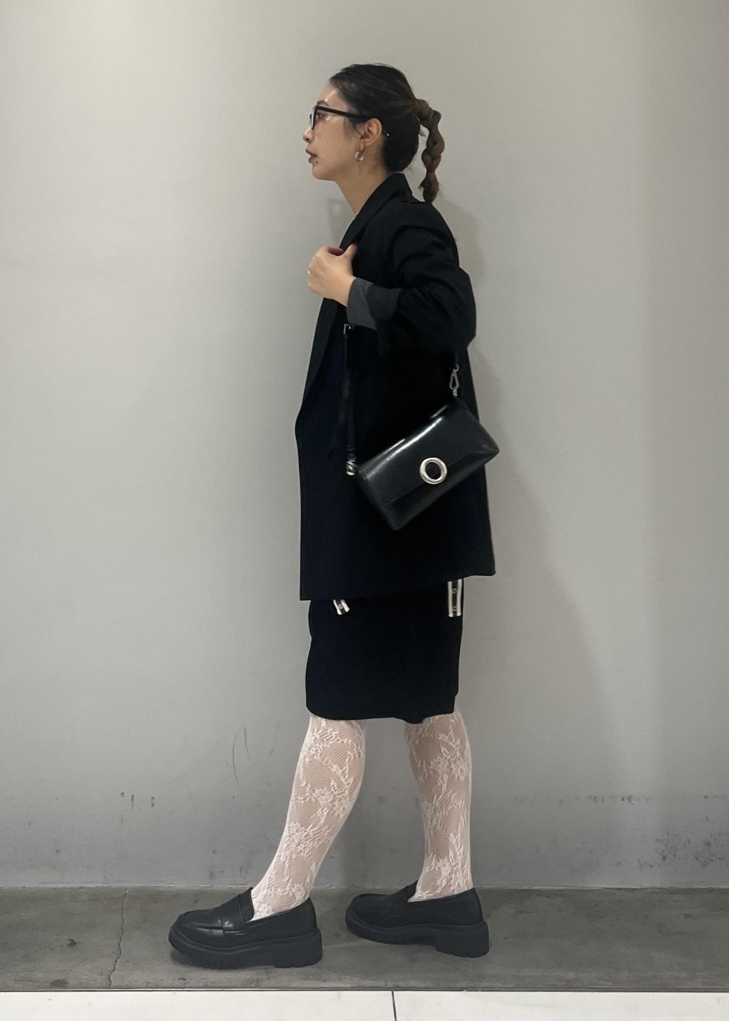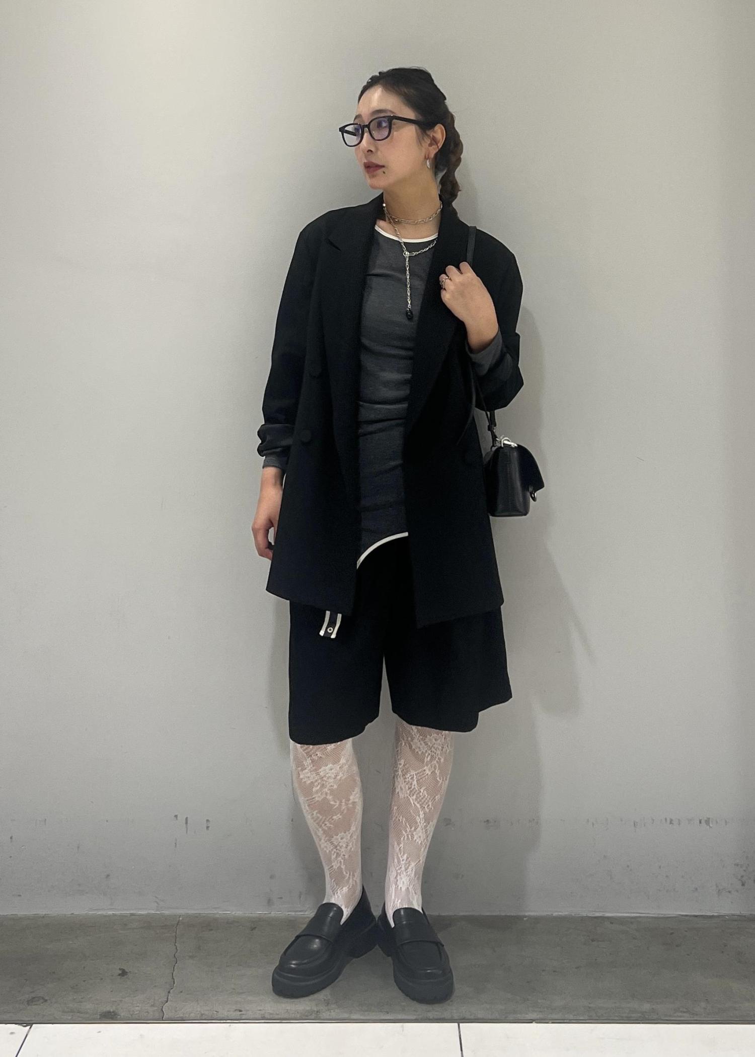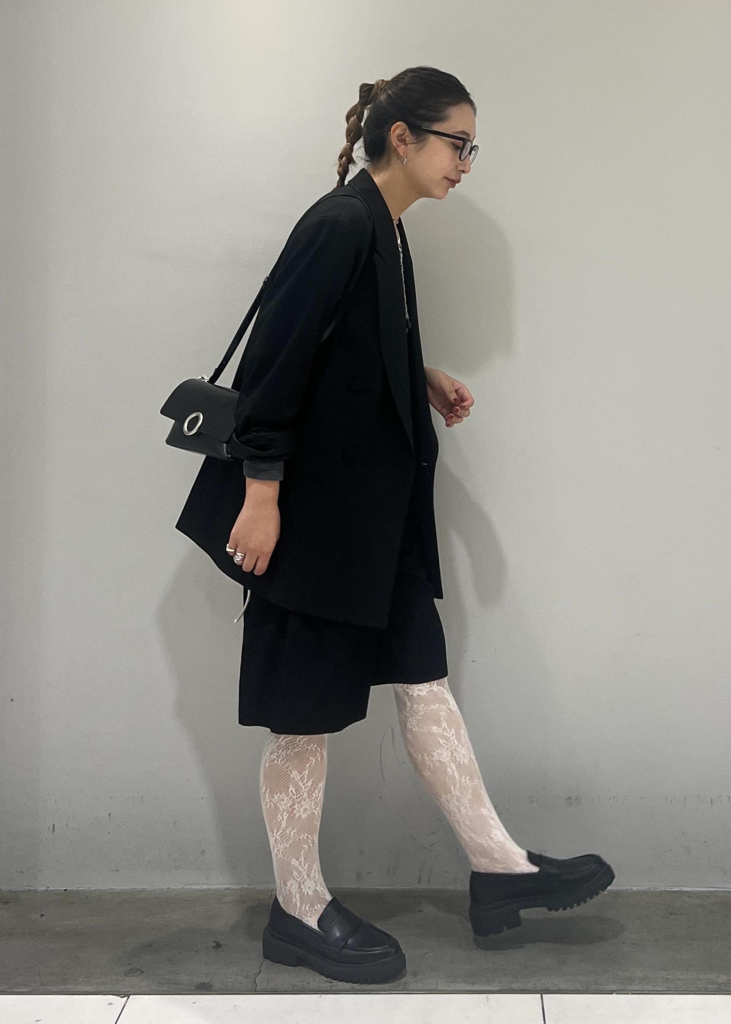 レースタイツを履きたくて、でも甘すぎるスタイリングは苦手なので、ハーフパンツとジャケット合わせで、