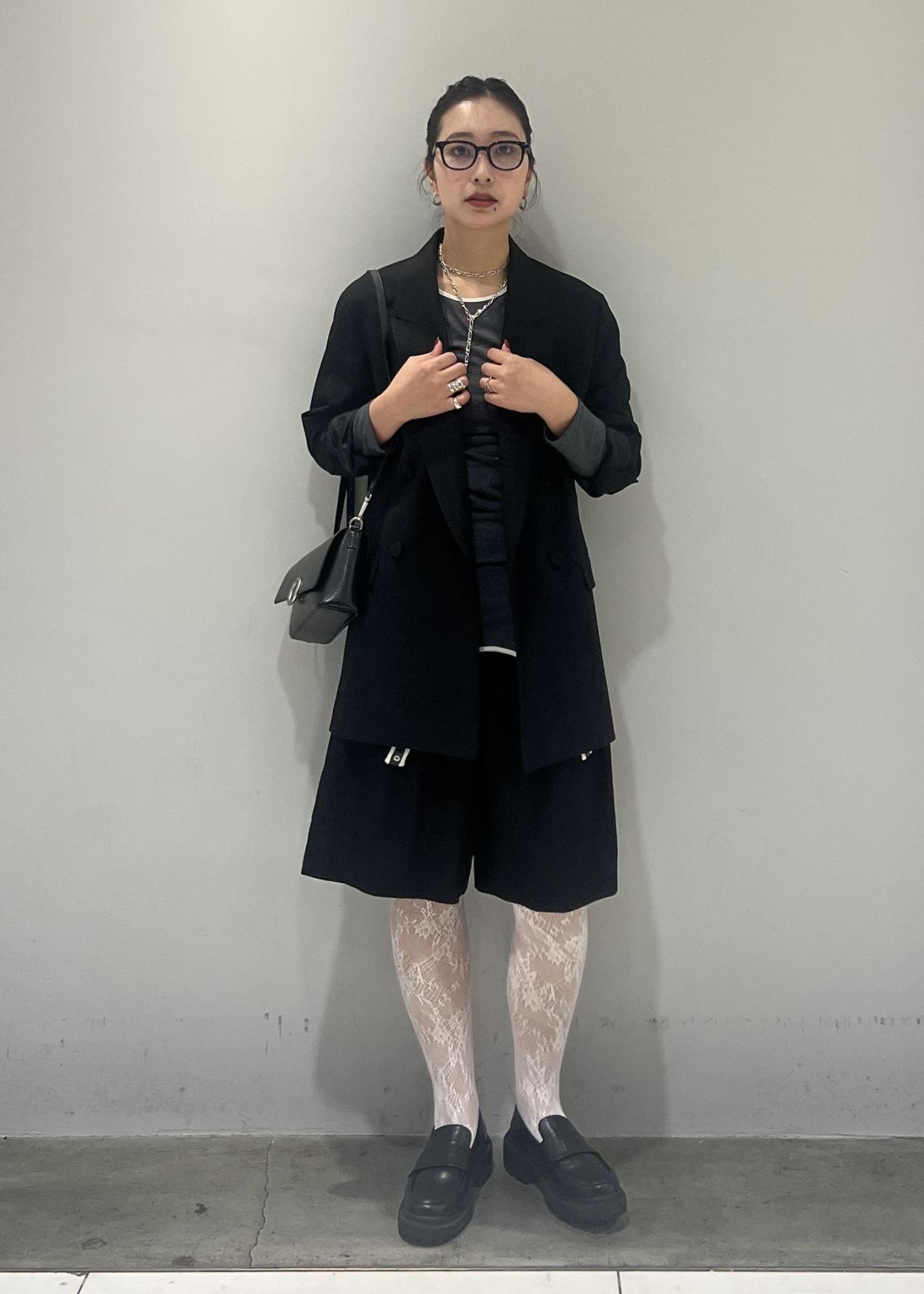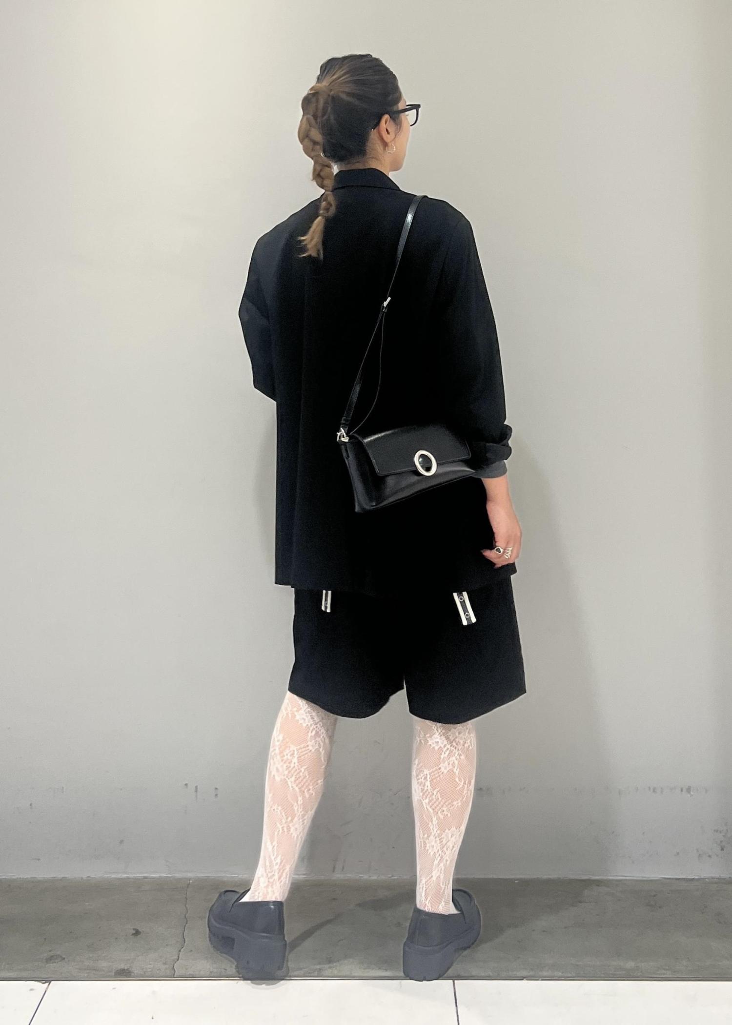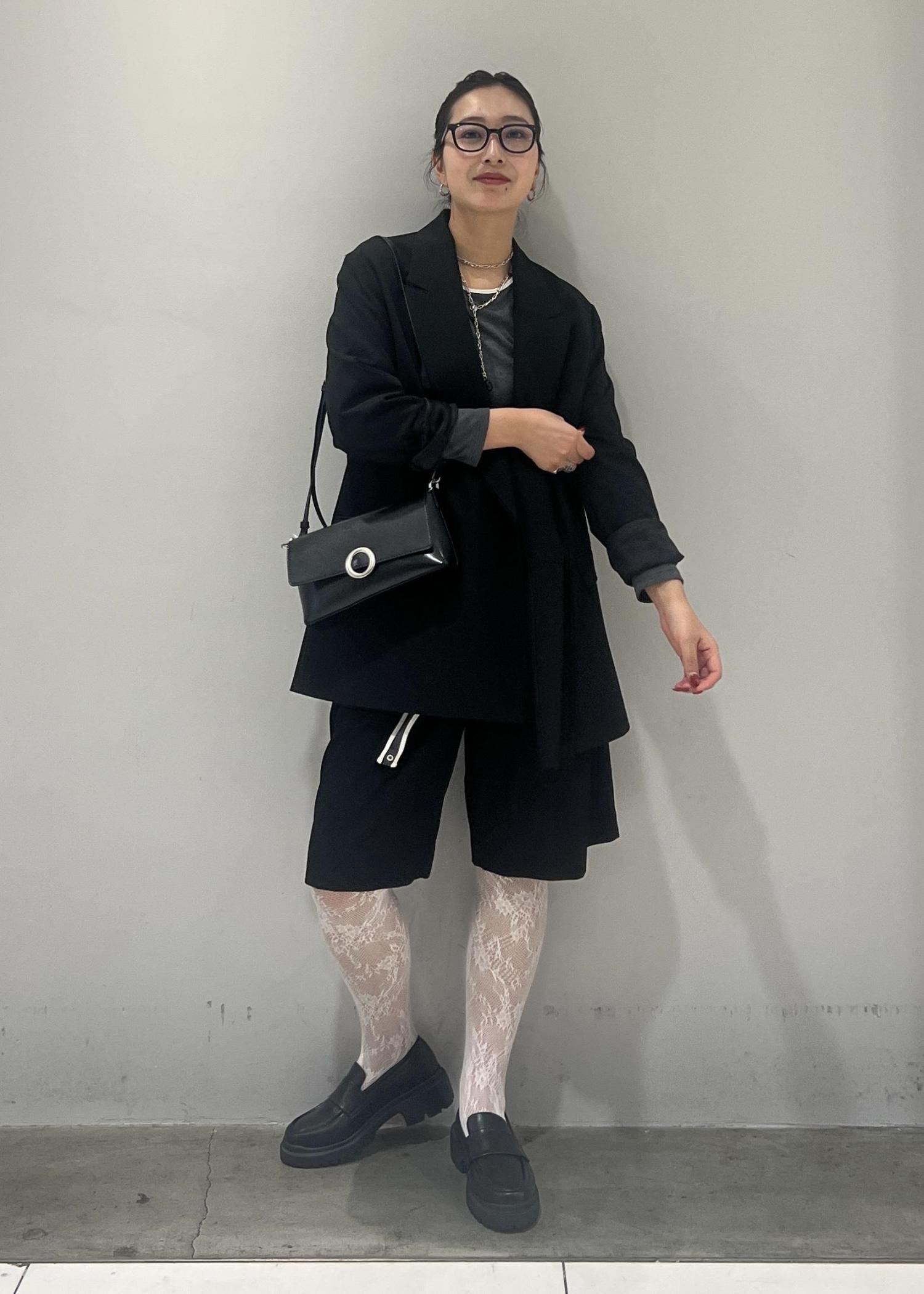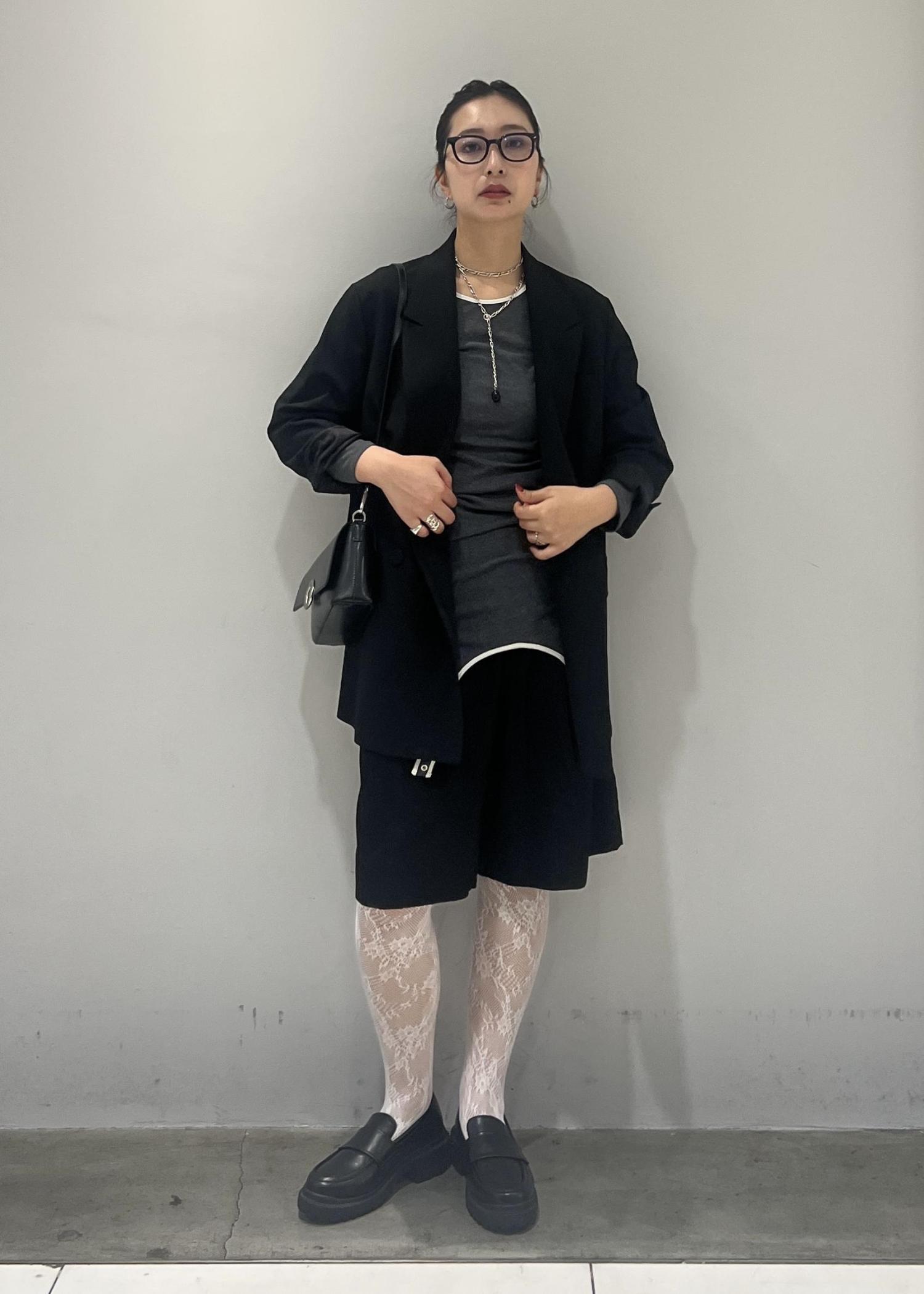 レースタイツを履きたくて、でも甘すぎるスタイリングは苦手なので、ハーフパンツとジャケット合わせで、