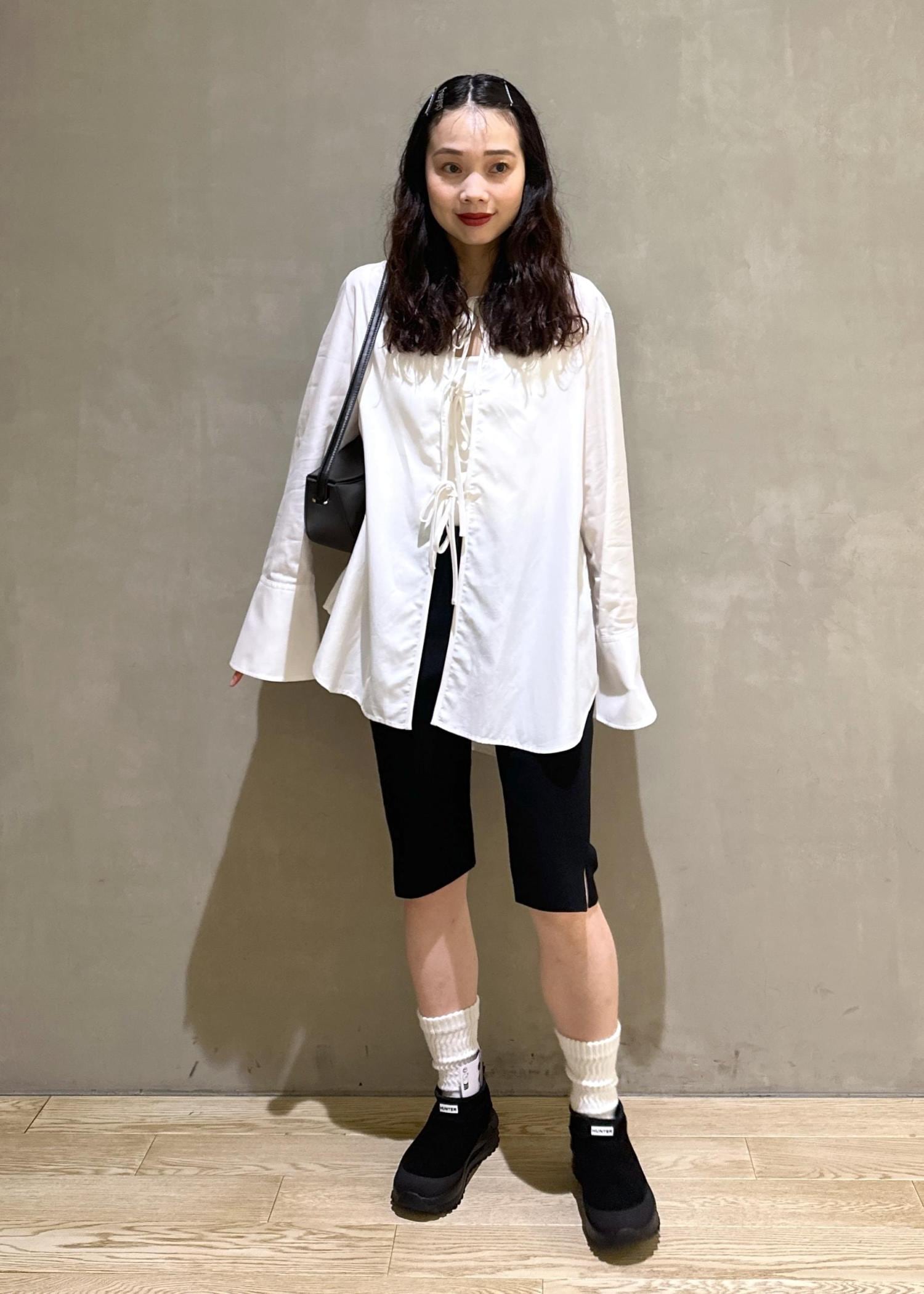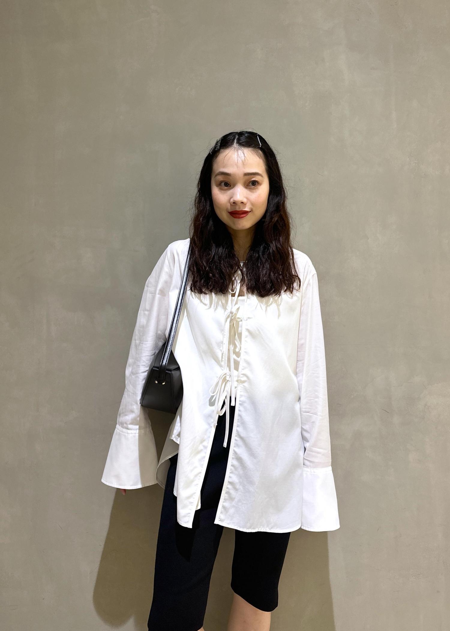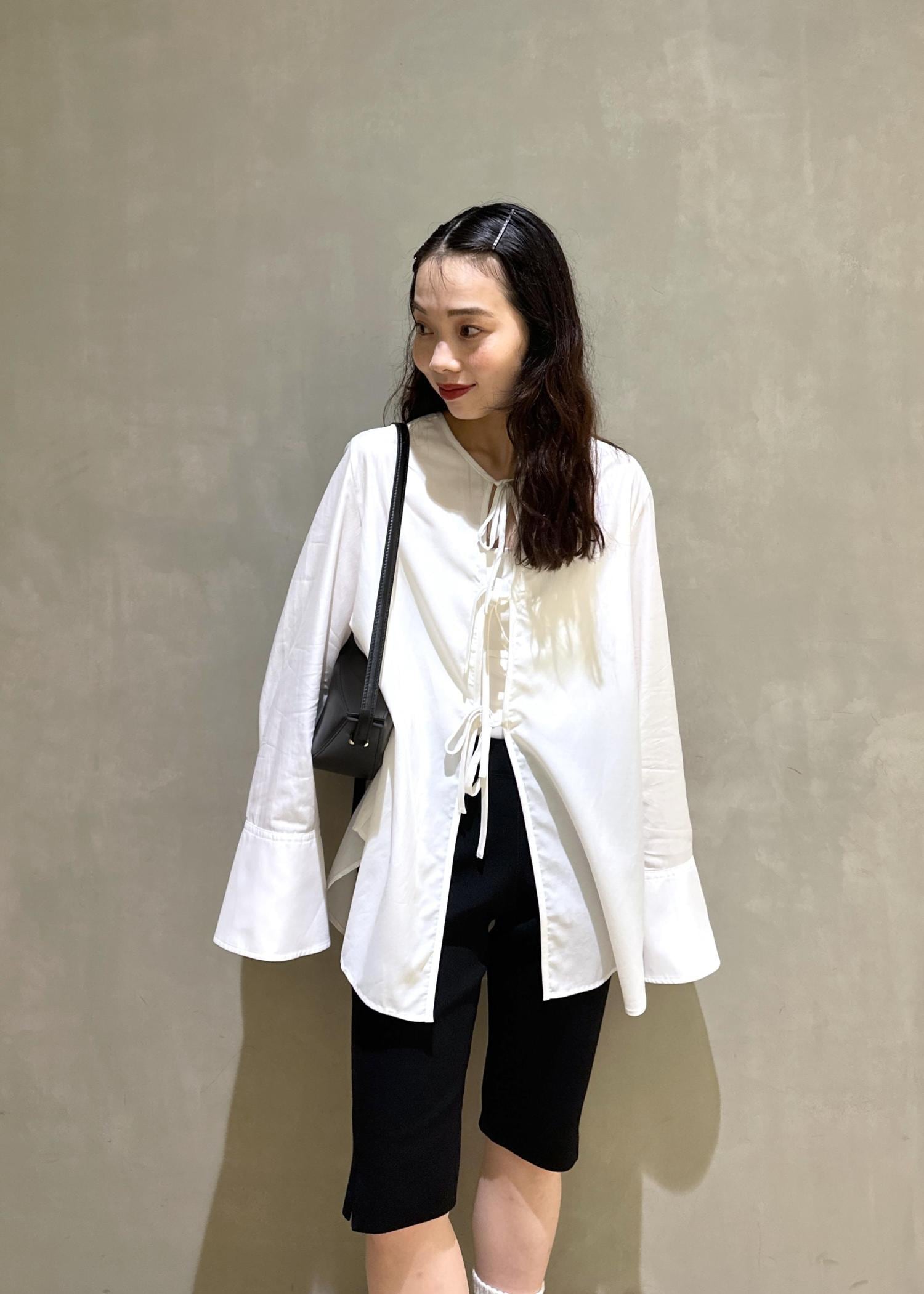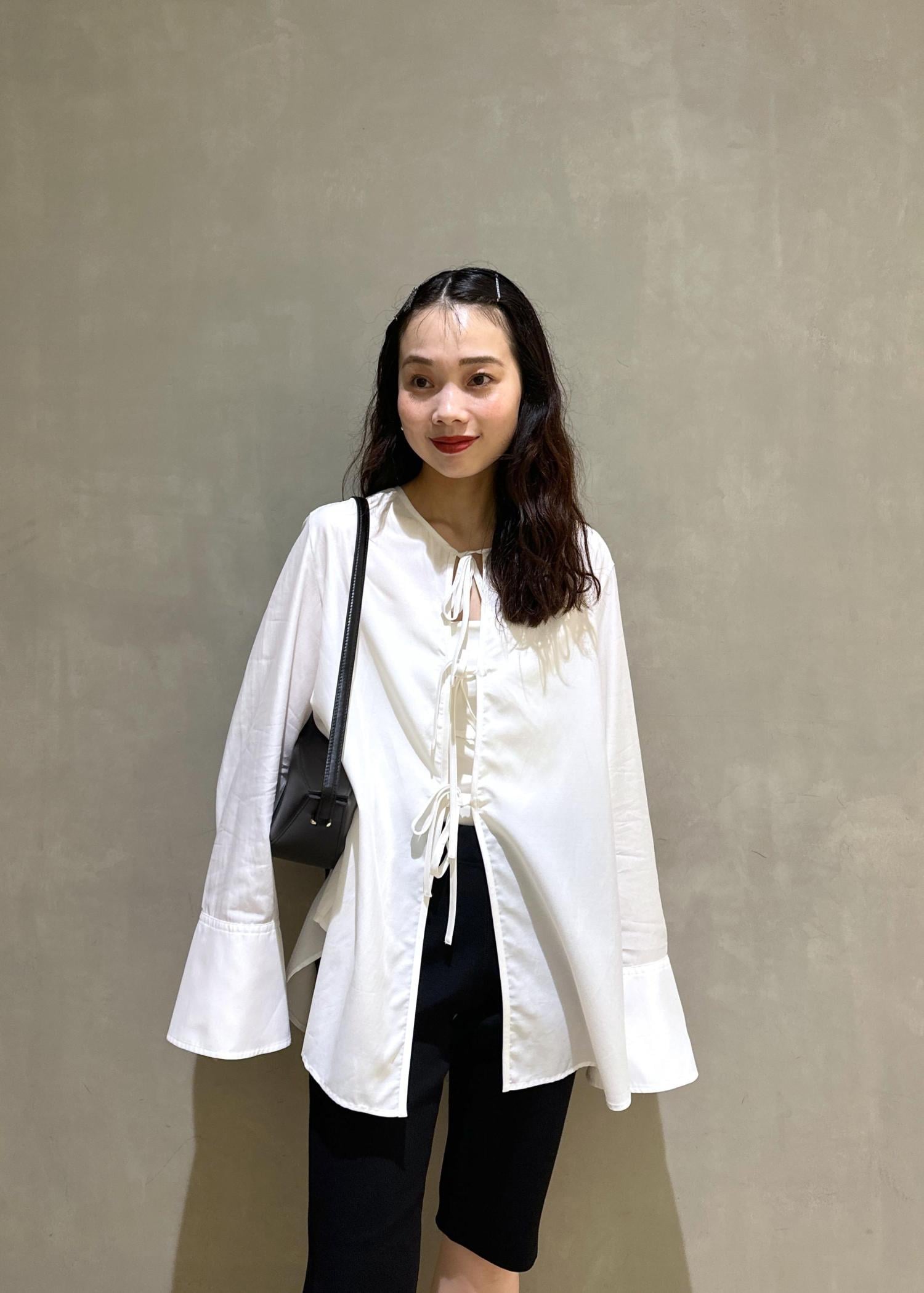ADAM ET ROPÉ FEMME【サステナブル】リボンブラウスホワイト / F¥17,600レビュー羽織りでも使える前空きのデザインです。