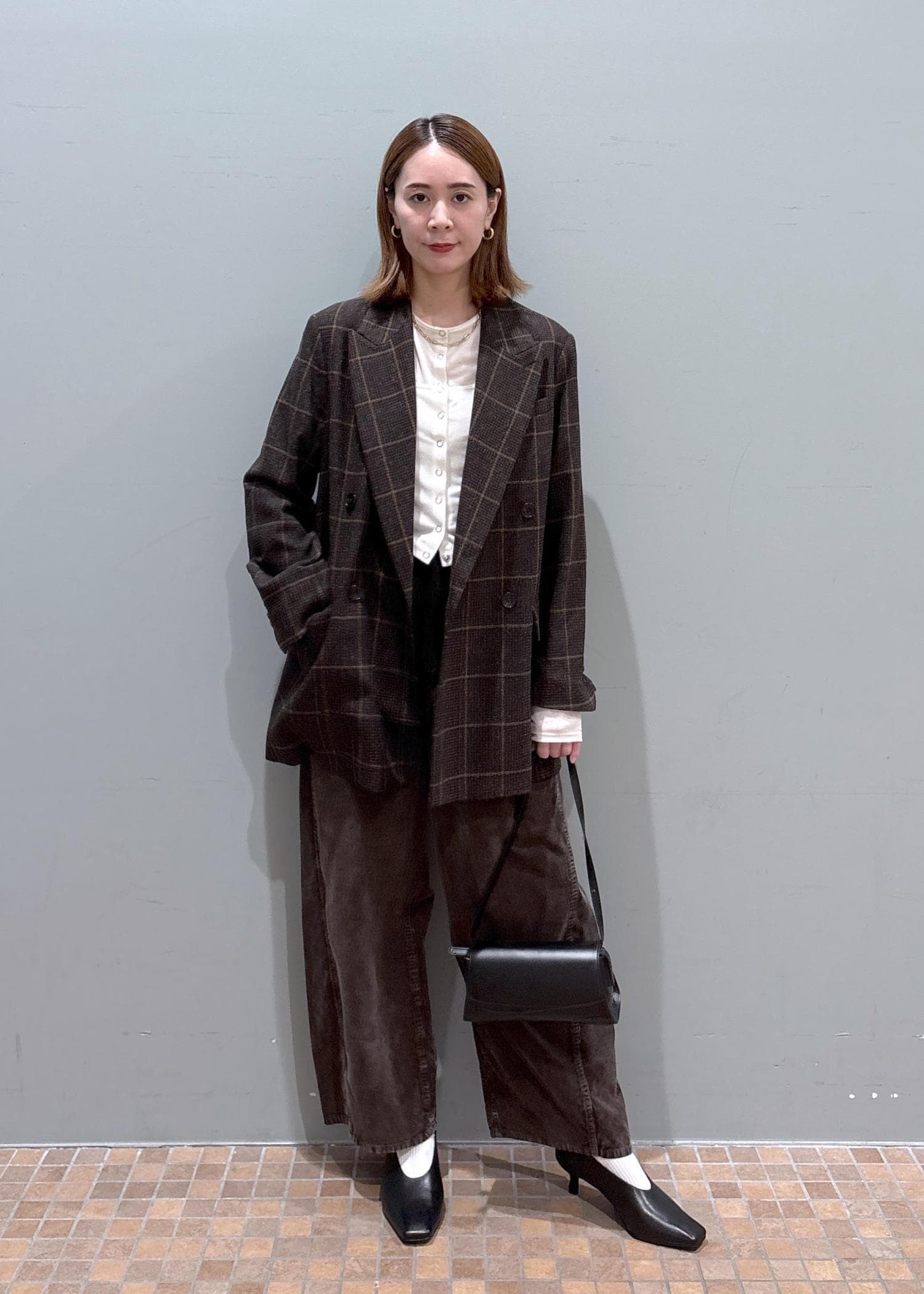 ADAM ET ROPÉ FEMMEダブルブレストツイード&チェックジャケットブラウン / 36¥40,700レビューさっと羽織るだけで、こなれ感溢れるオーバージャケットです。