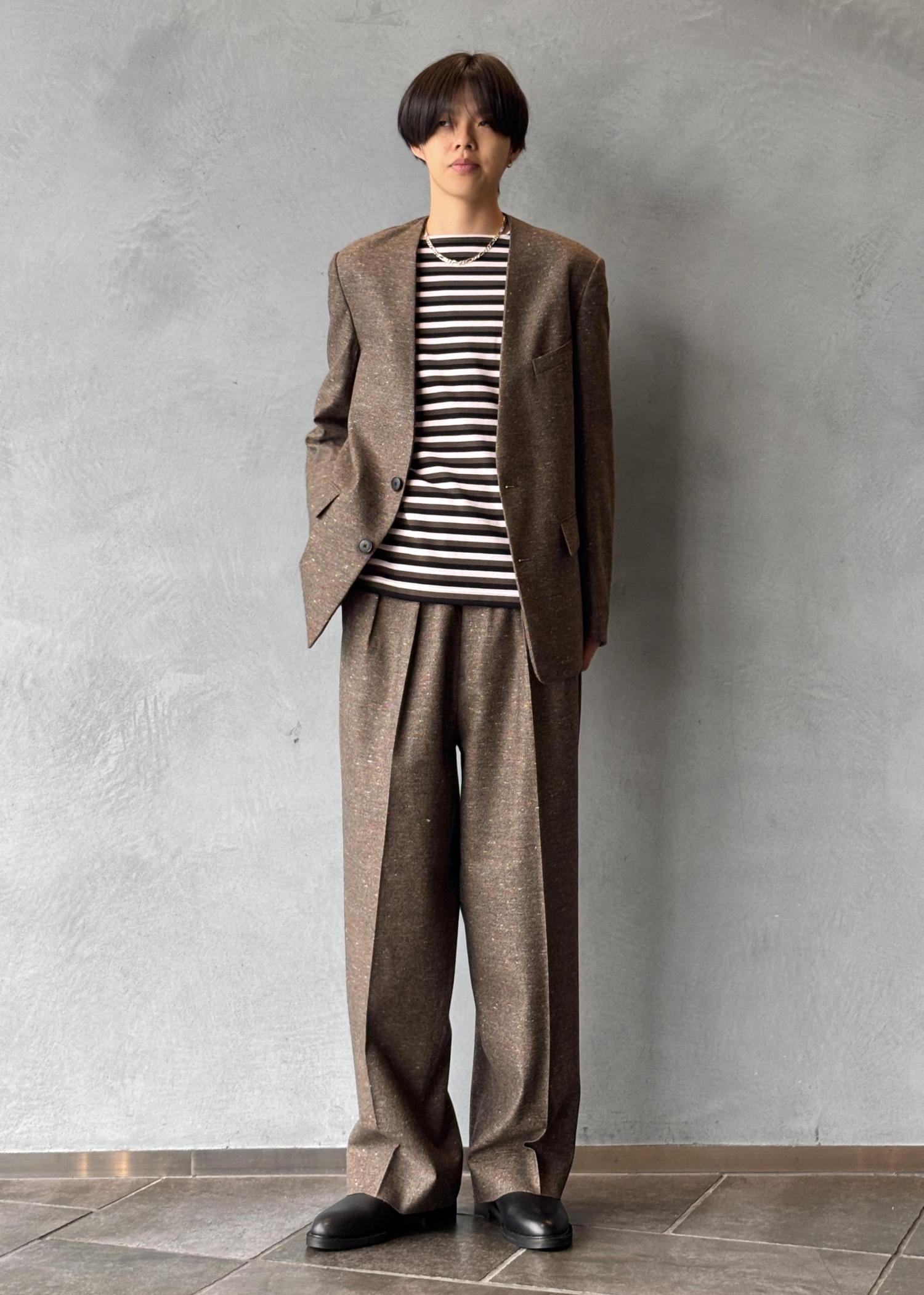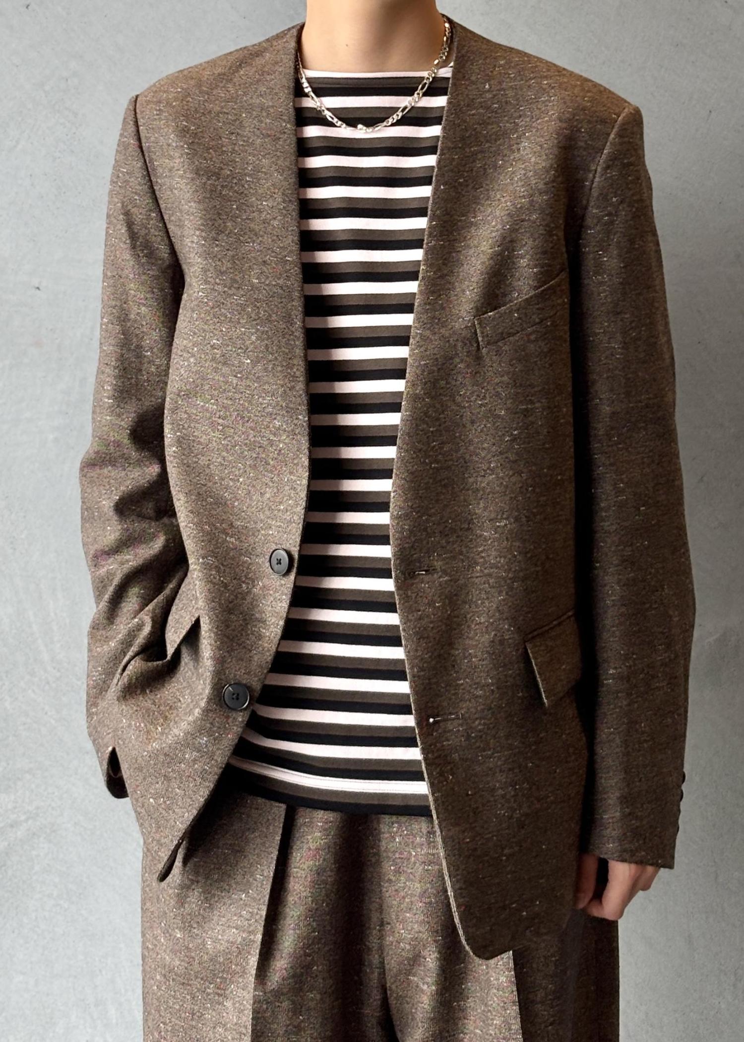 ADAM ET ROPÉ HOMMEハードクロス ノーカラージャケット / セットアップ対応ダークブラウン系 / M¥27,720レビュー丈感は少し長め。