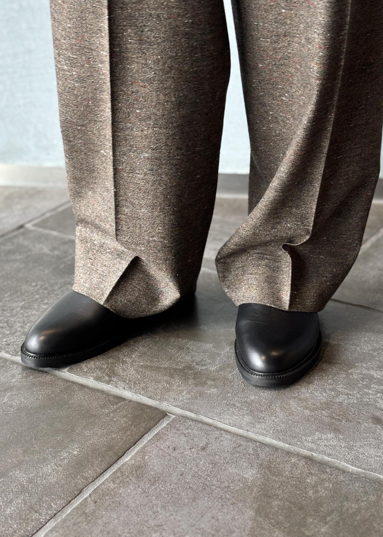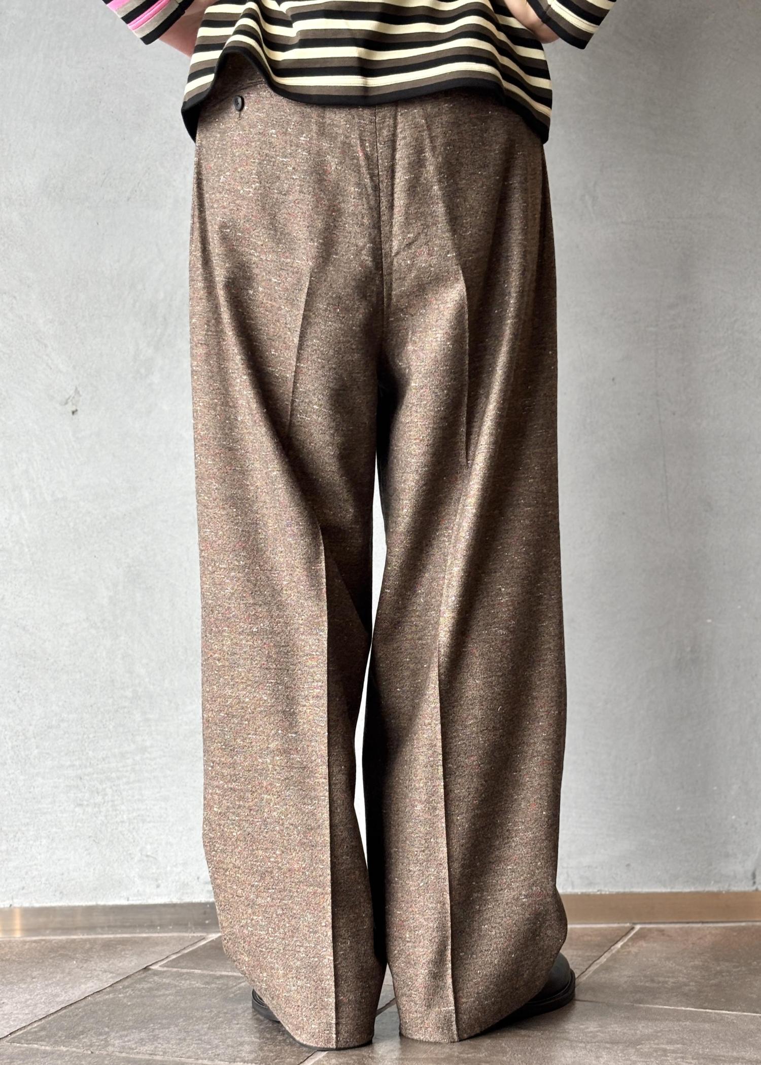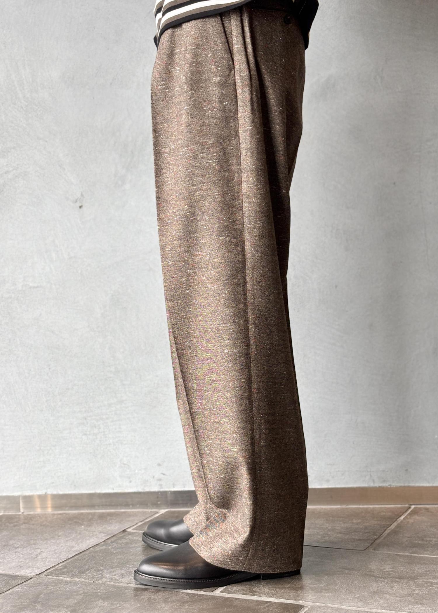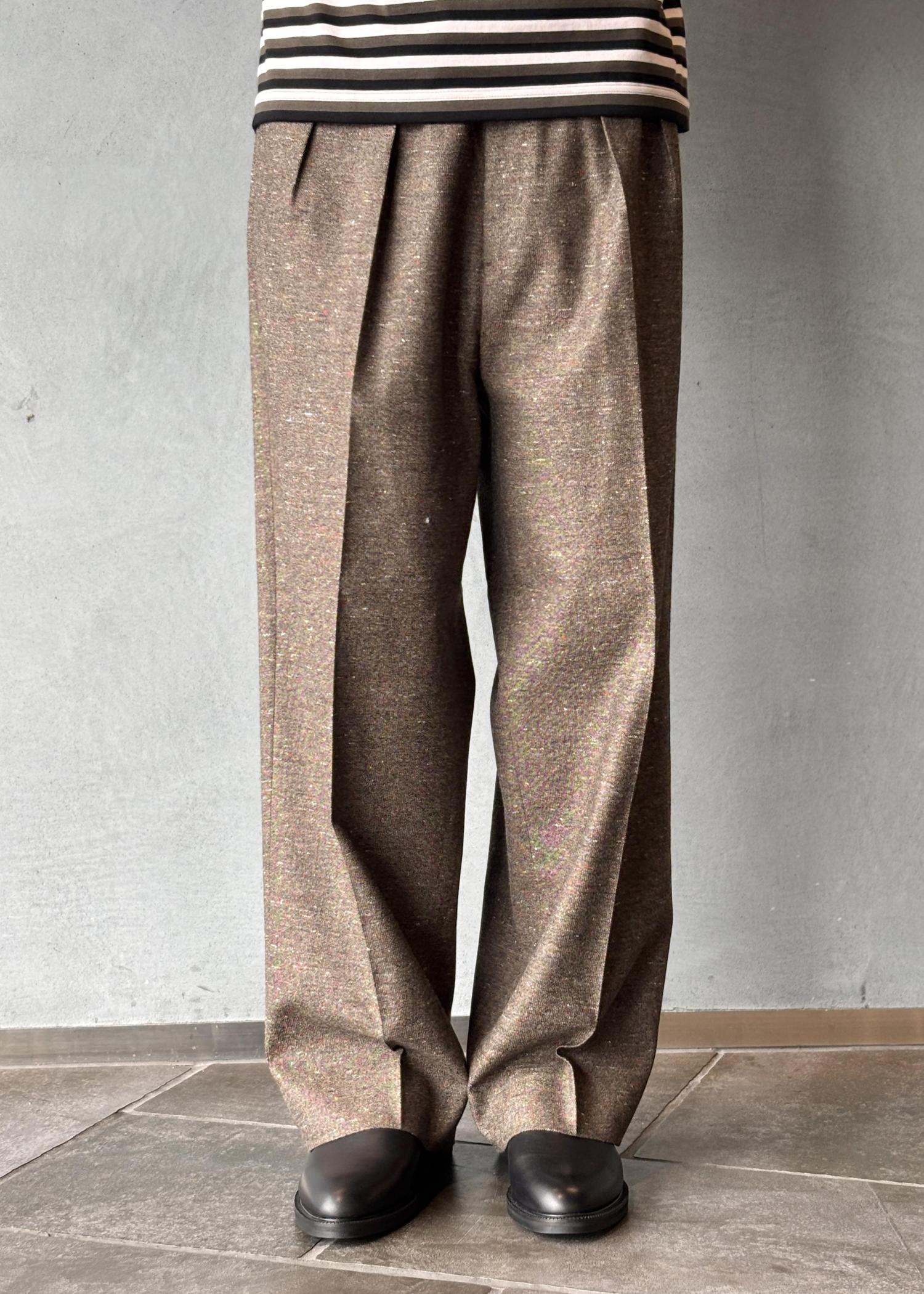ADAM ET ROPÉ HOMMEハードクロス 2プリーツ スラックスダークブラウン系 / L¥35,200レビューワイドなシルエットでゆったりしたサイズ感。