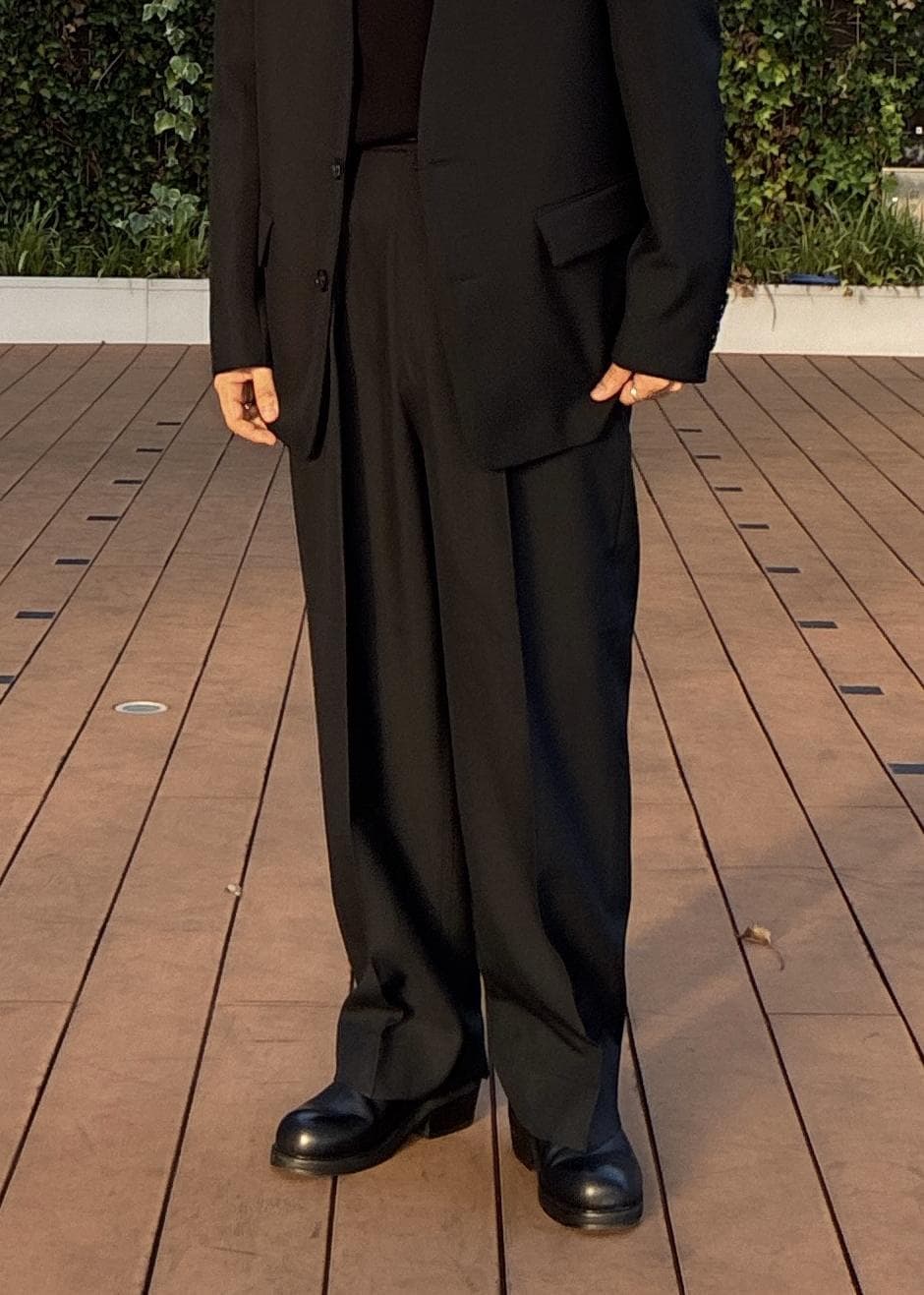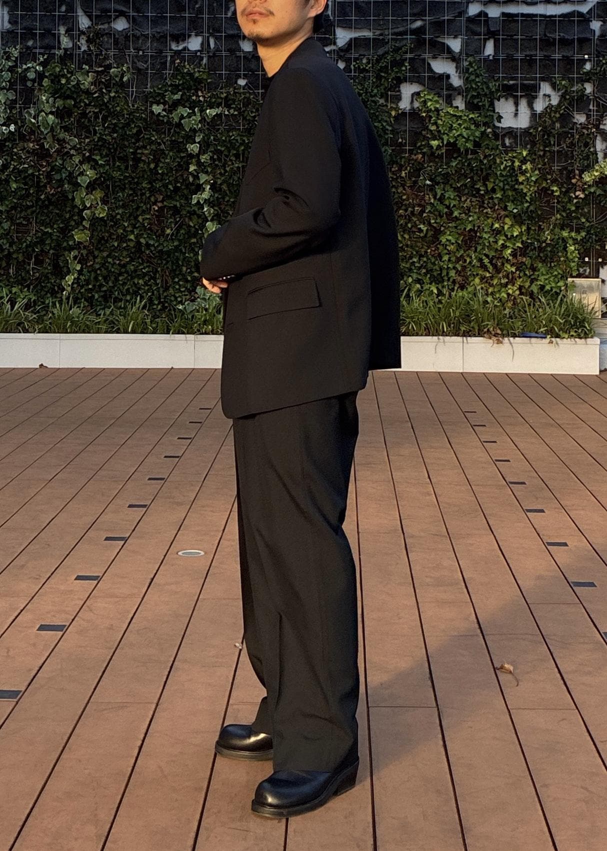 今回着用したハードクロスシリーズのセットアップは、モードでキリッと引き締まる雰囲気がかなりイケてます。。!