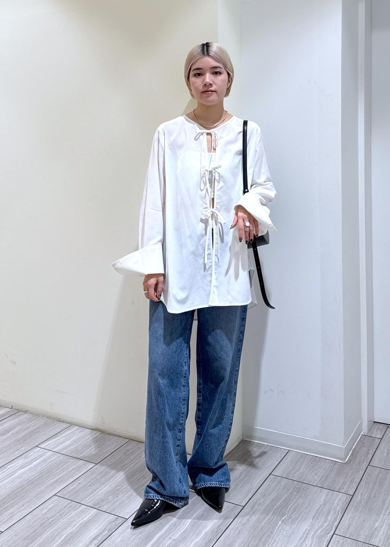 リボンが目を惹くブラウスですが、シンプルなデザインと落ち着きのあるシルエットで可愛すぎず、大人っぽい印象に◯