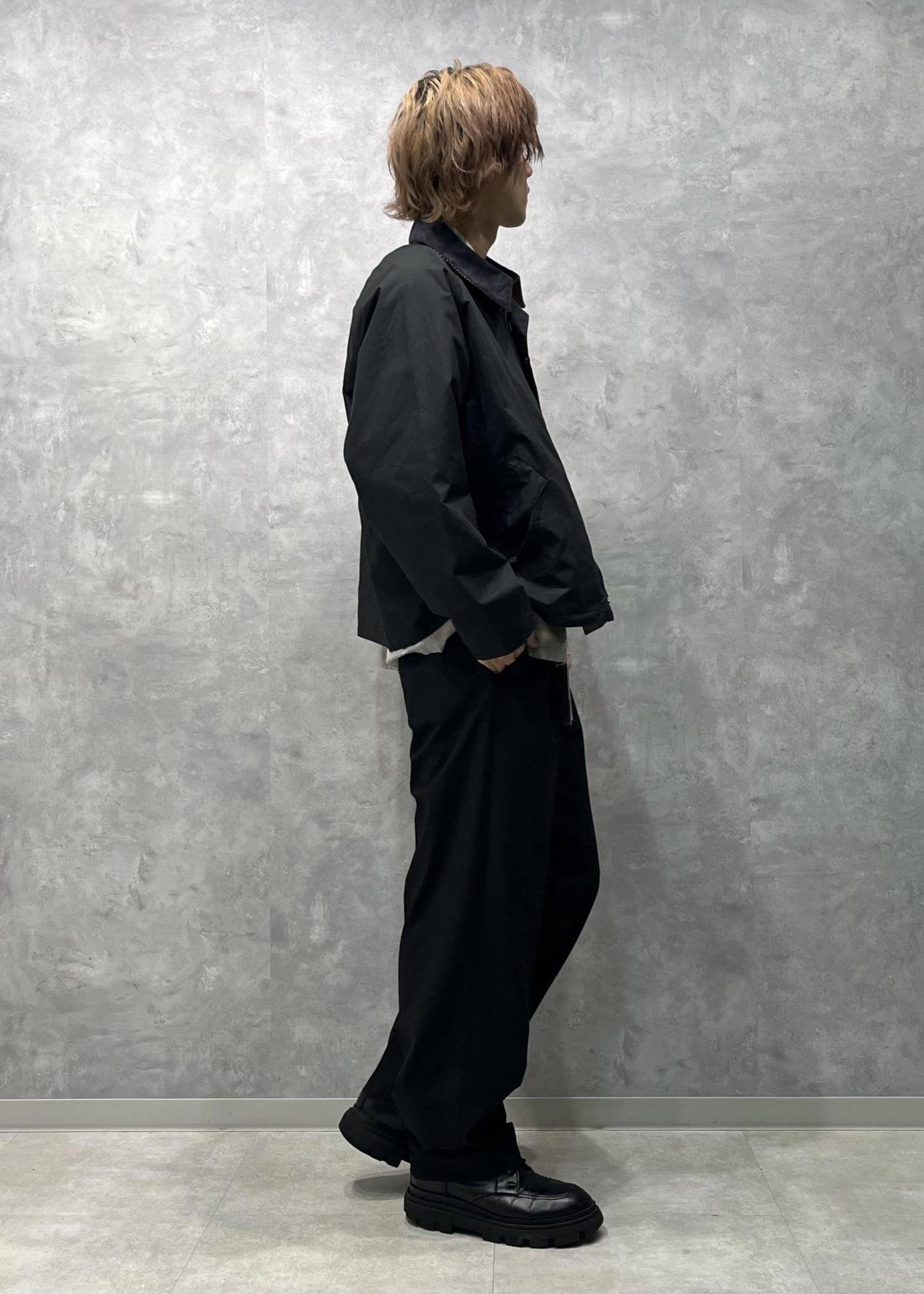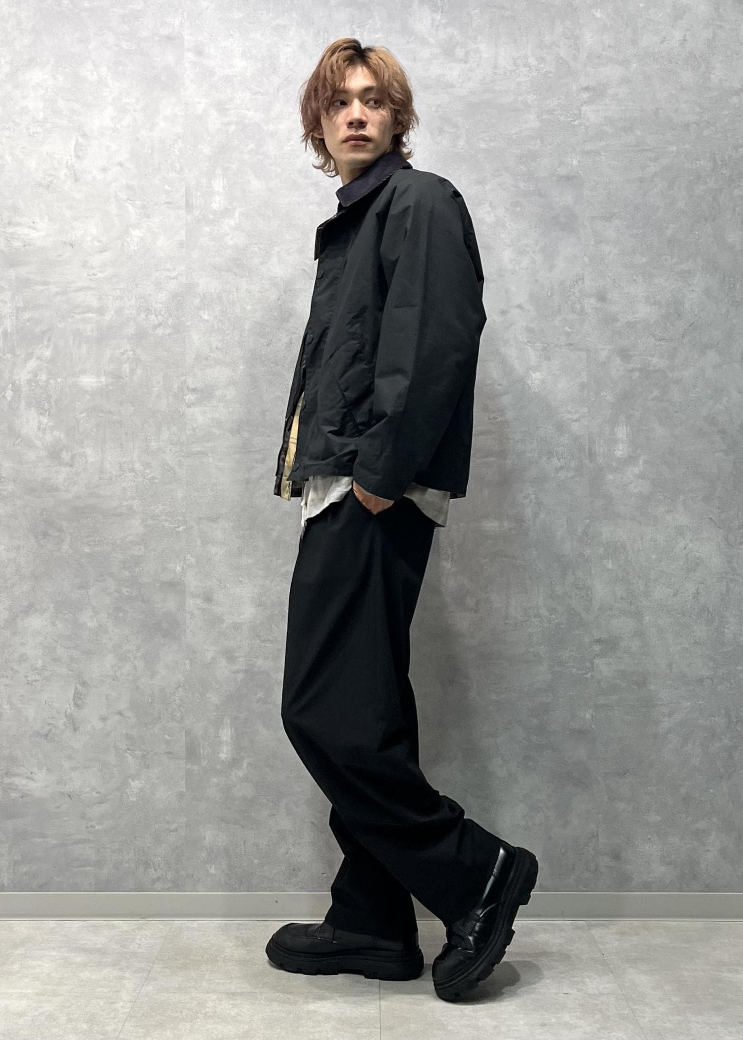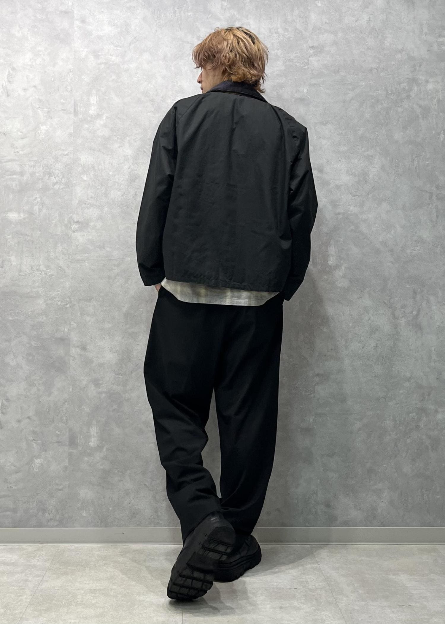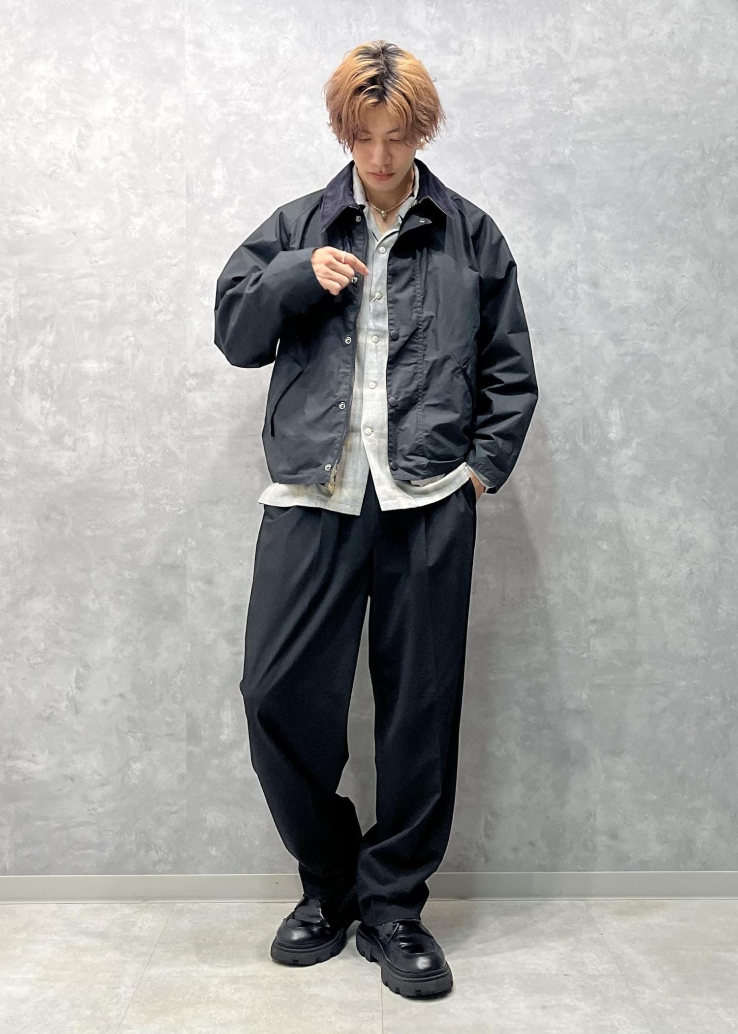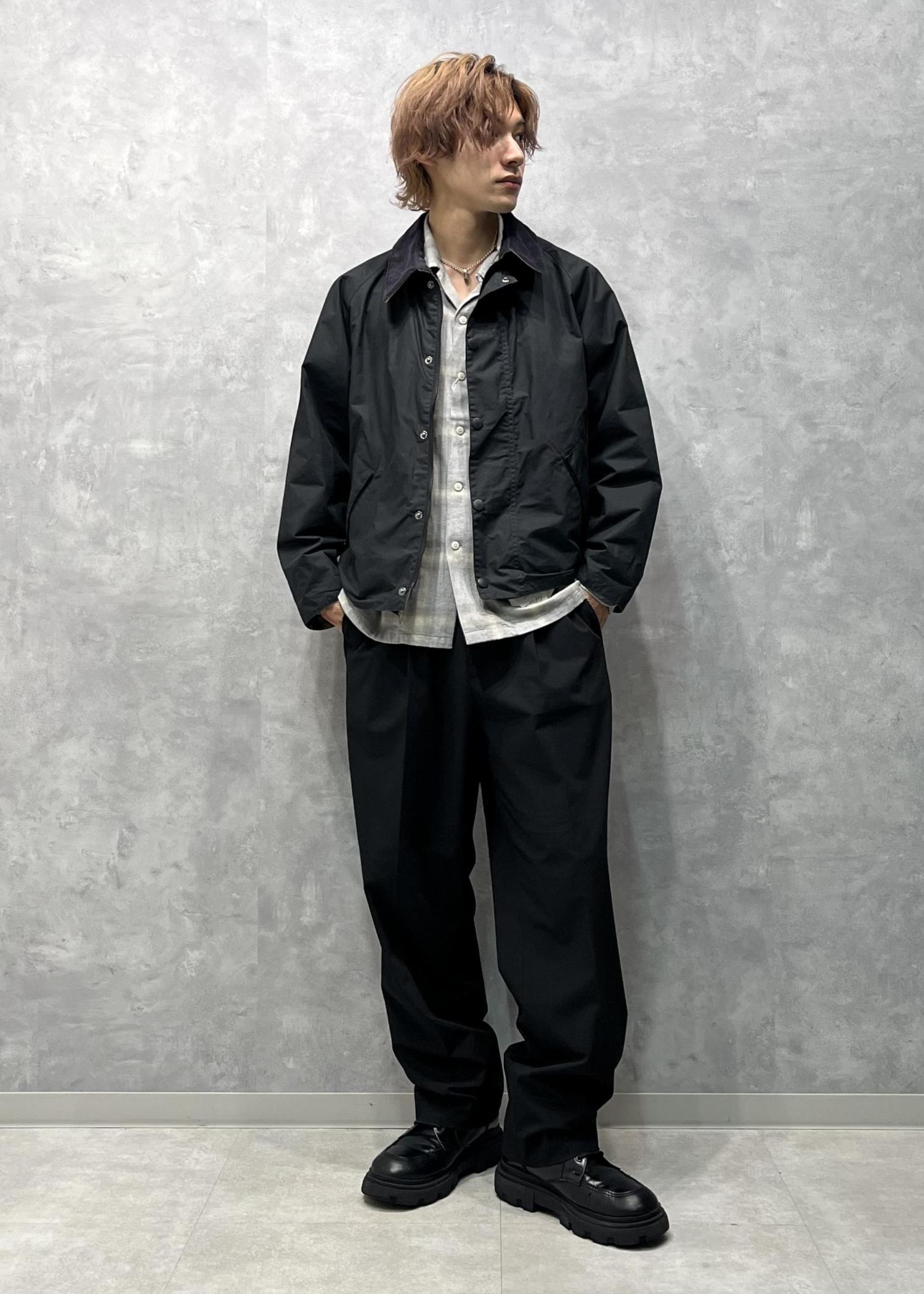 秋っぽいスタイリングになるようチェックシャツとバブアーを合わせてみました。