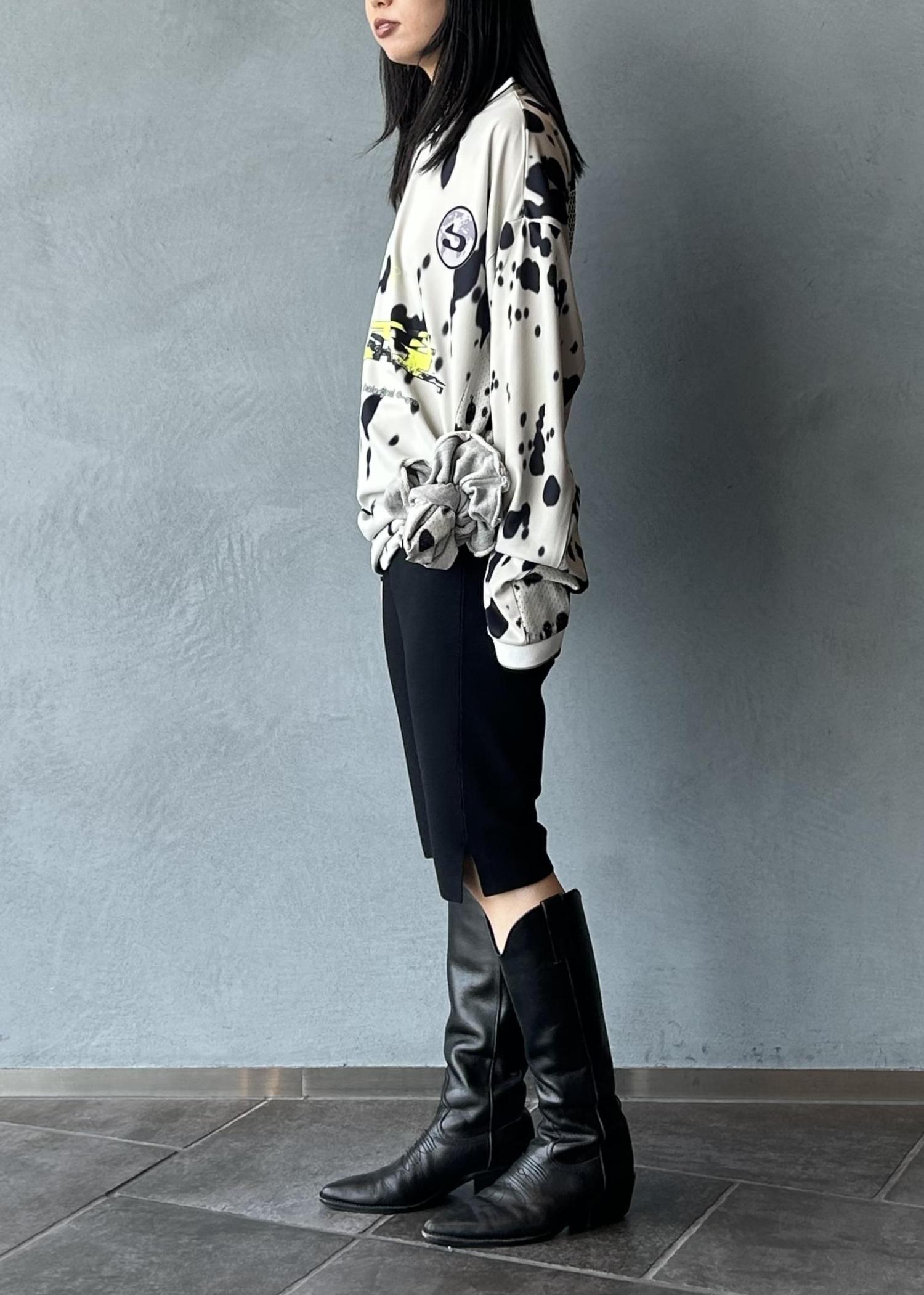 メンズライクなアイテムなので、裾をきゅっと結んだりコンパクトなパンツを合わせてバランスをとってみました。