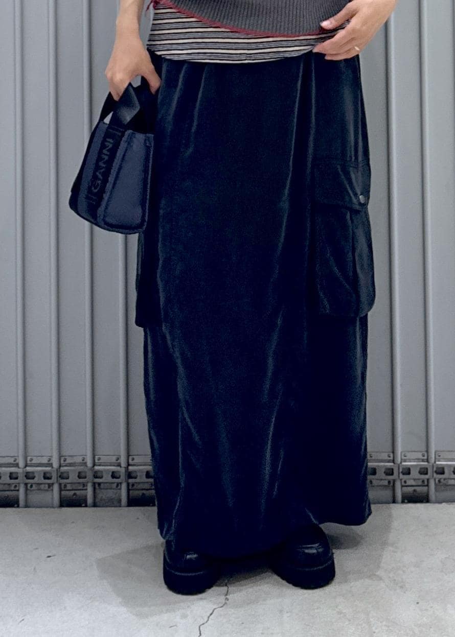 アウトレットADAM ET ROPÉ FEMME【サステナブル】キュプラカーゴスカートブラック / 38¥18,480レビュー165センチ38サイズ着用。