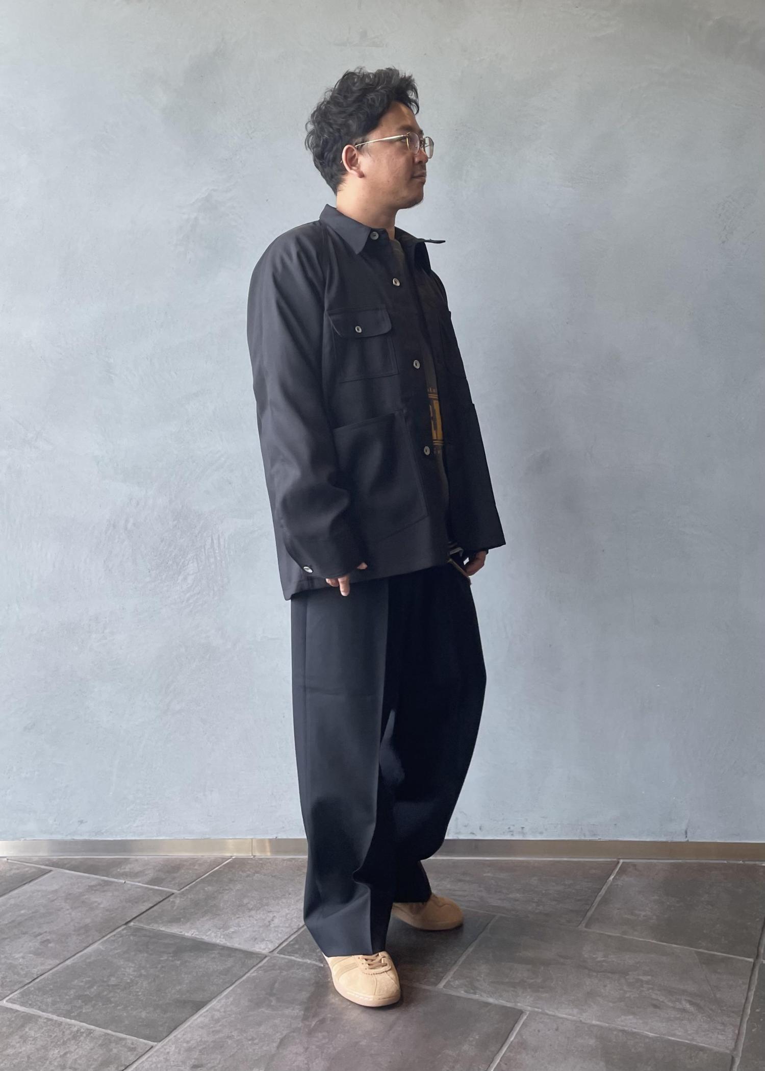 ADAM ET ROPÉ HOMMEハードクロス 2プリーツ スラックスブラック / M¥35,200レビューハリのある生地と程良い太さで合わせ易いアイテム。
