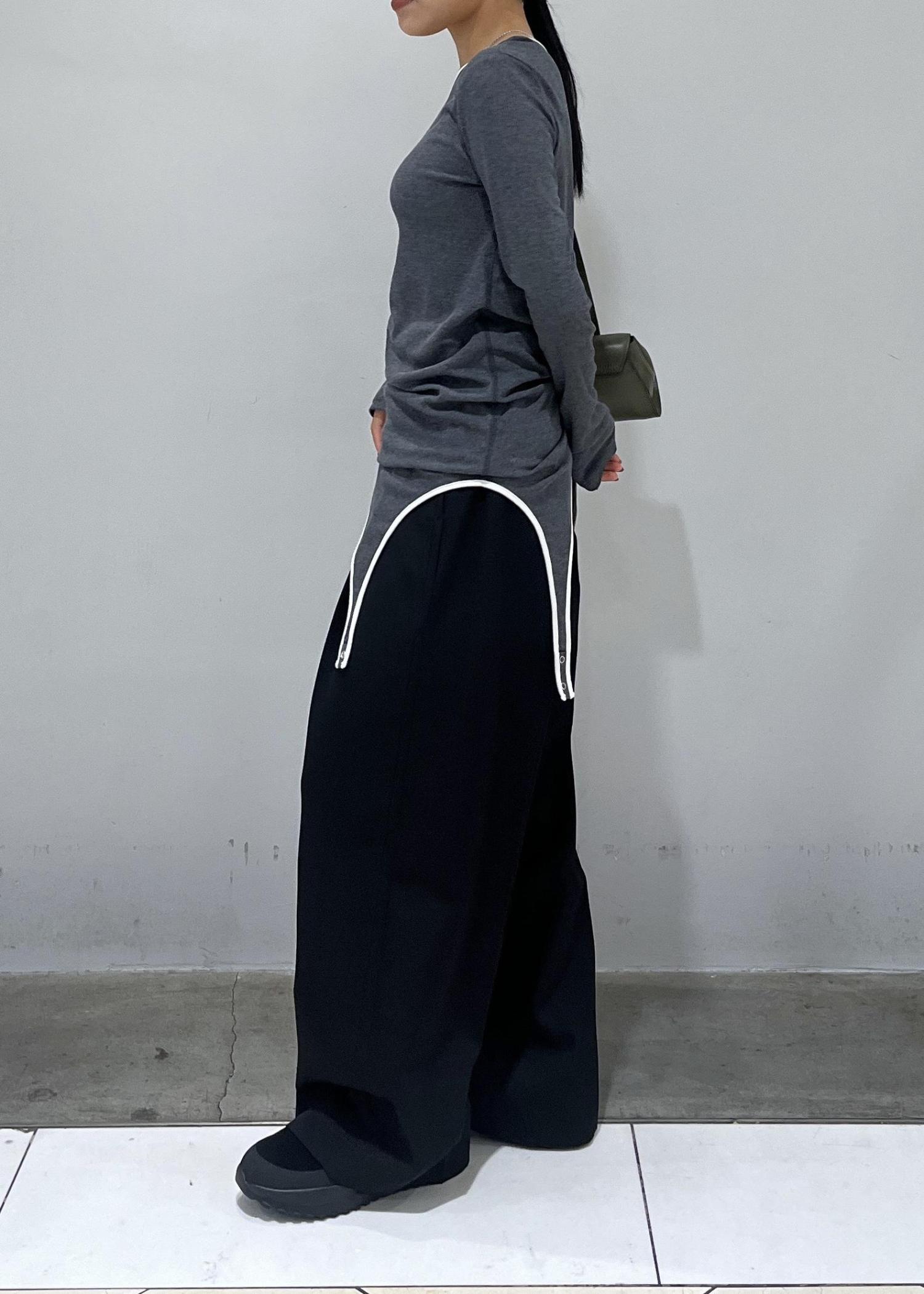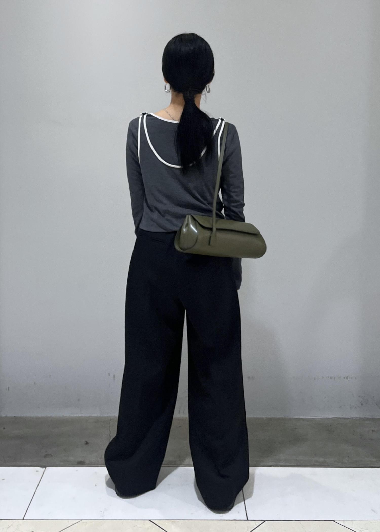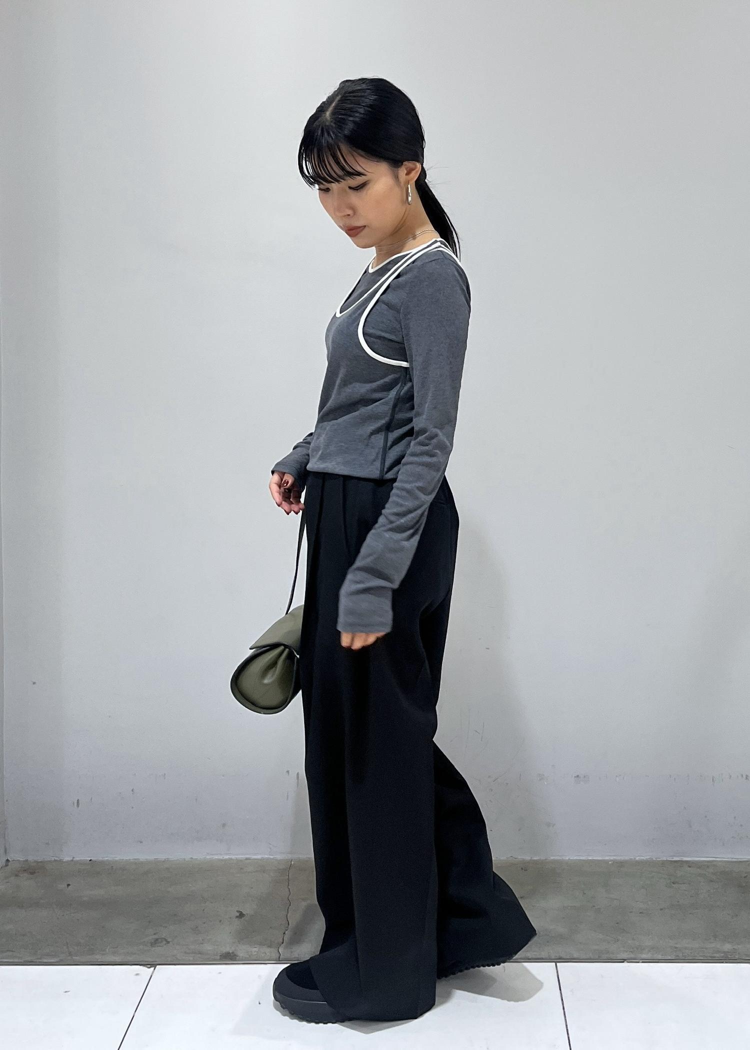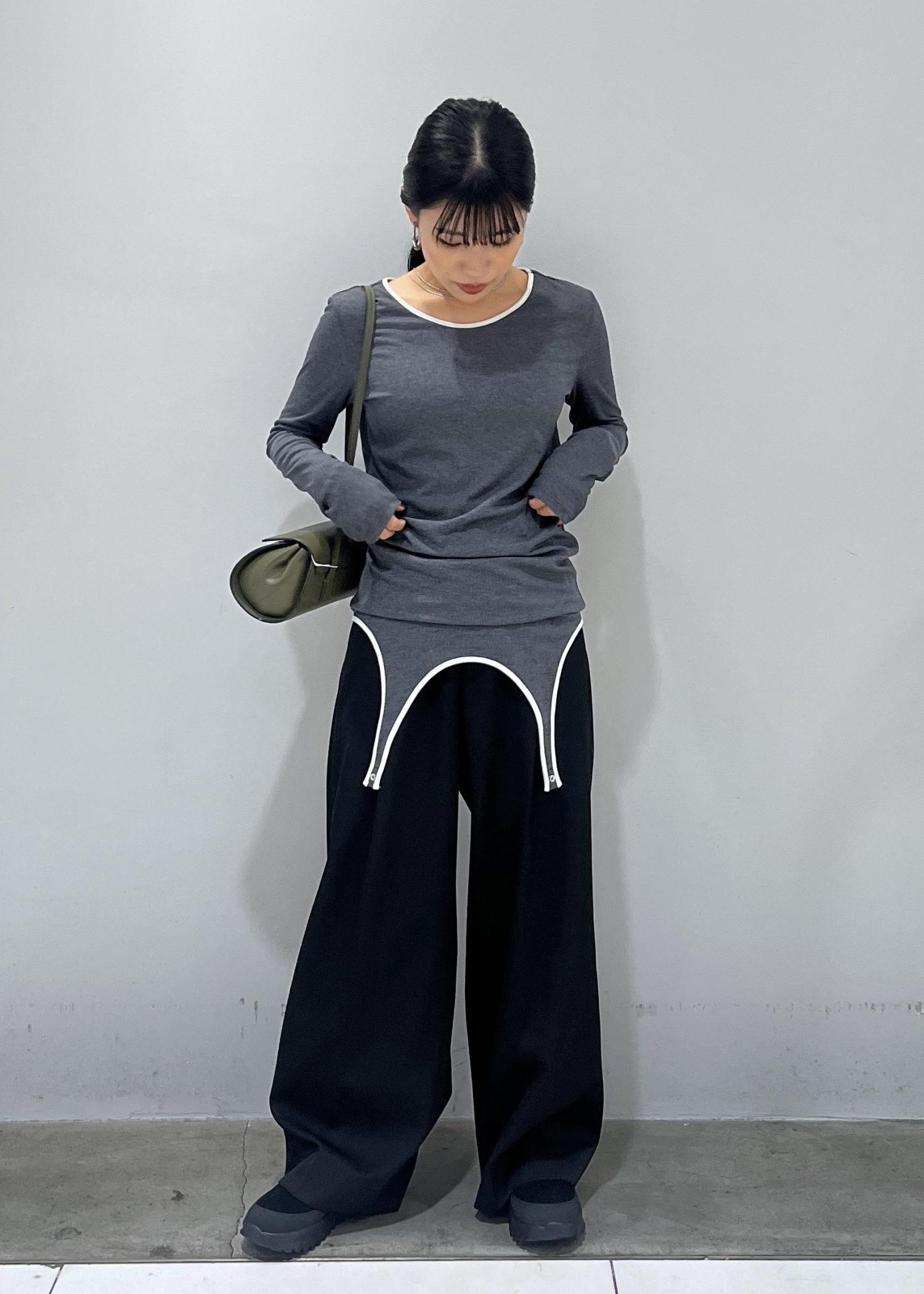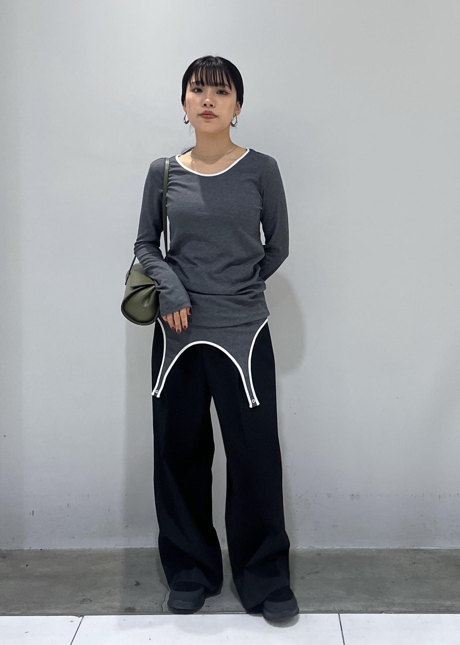 トップスは2WAYでお楽しみ頂けるのと、着用のスラックスパンツは低身長の方にもオススメアイテムです♩