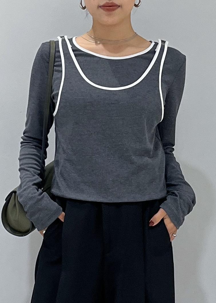 ADAM ET ROPÉ FEMME【サステナブル】タンクレイヤードトップスチャコール / F¥13,200レビュー2WAYの万能トップスです♡