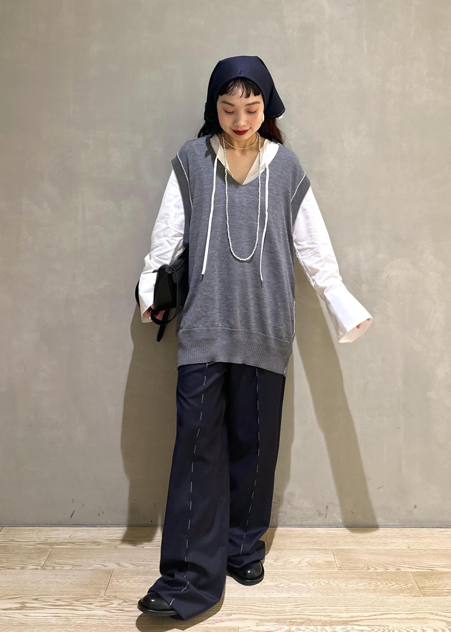 中にカットソーやリブニットをレイヤードして着ていただけるのでまだまだ冬場も合わせて頂けます。 -