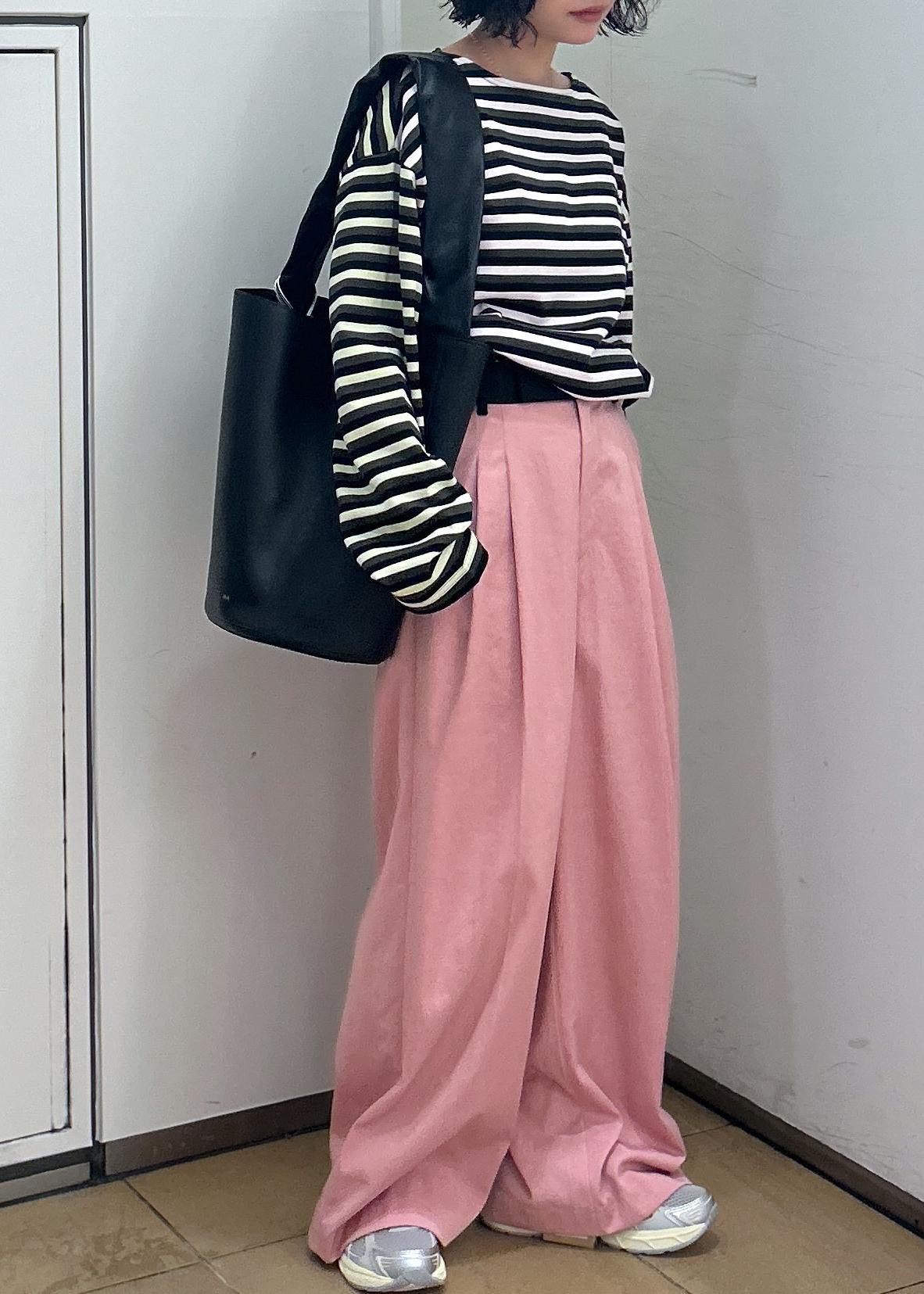 ピンクに抵抗ある方でも、シルエットも綺麗めなので取り入れやすいアイテムです! -