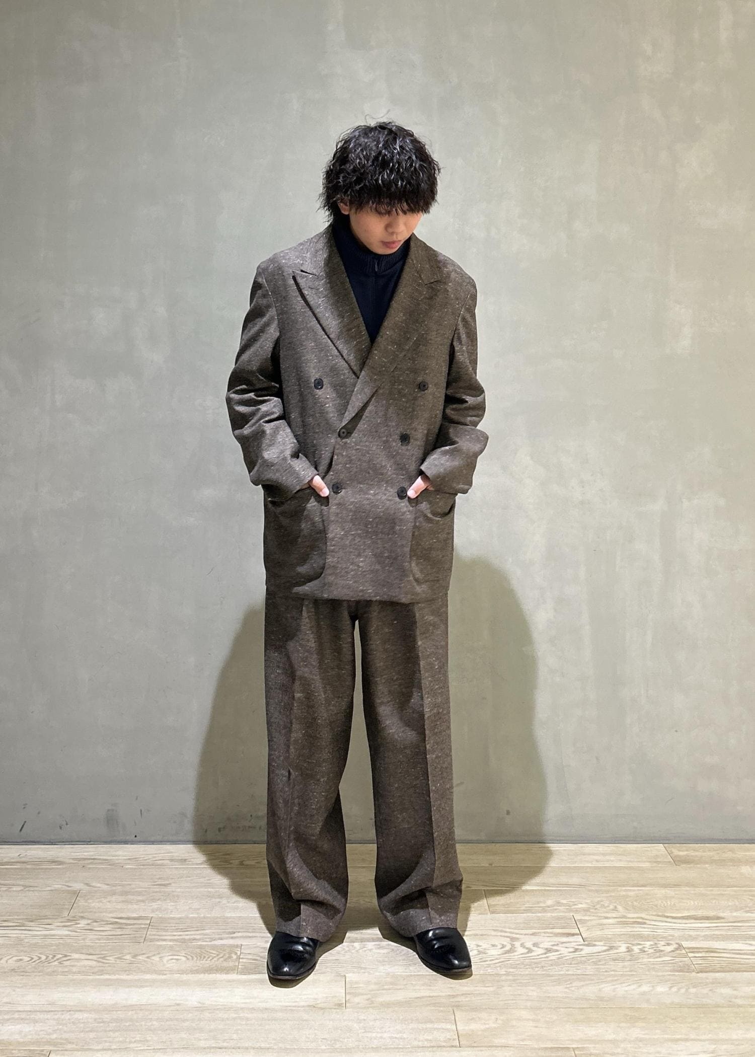 ADAM ET ROPÉ HOMMEハードクロス ダブルブレストジャケット / セットアップ対応ダークブラウン系 /¥52,800レビュー【サイズ感】