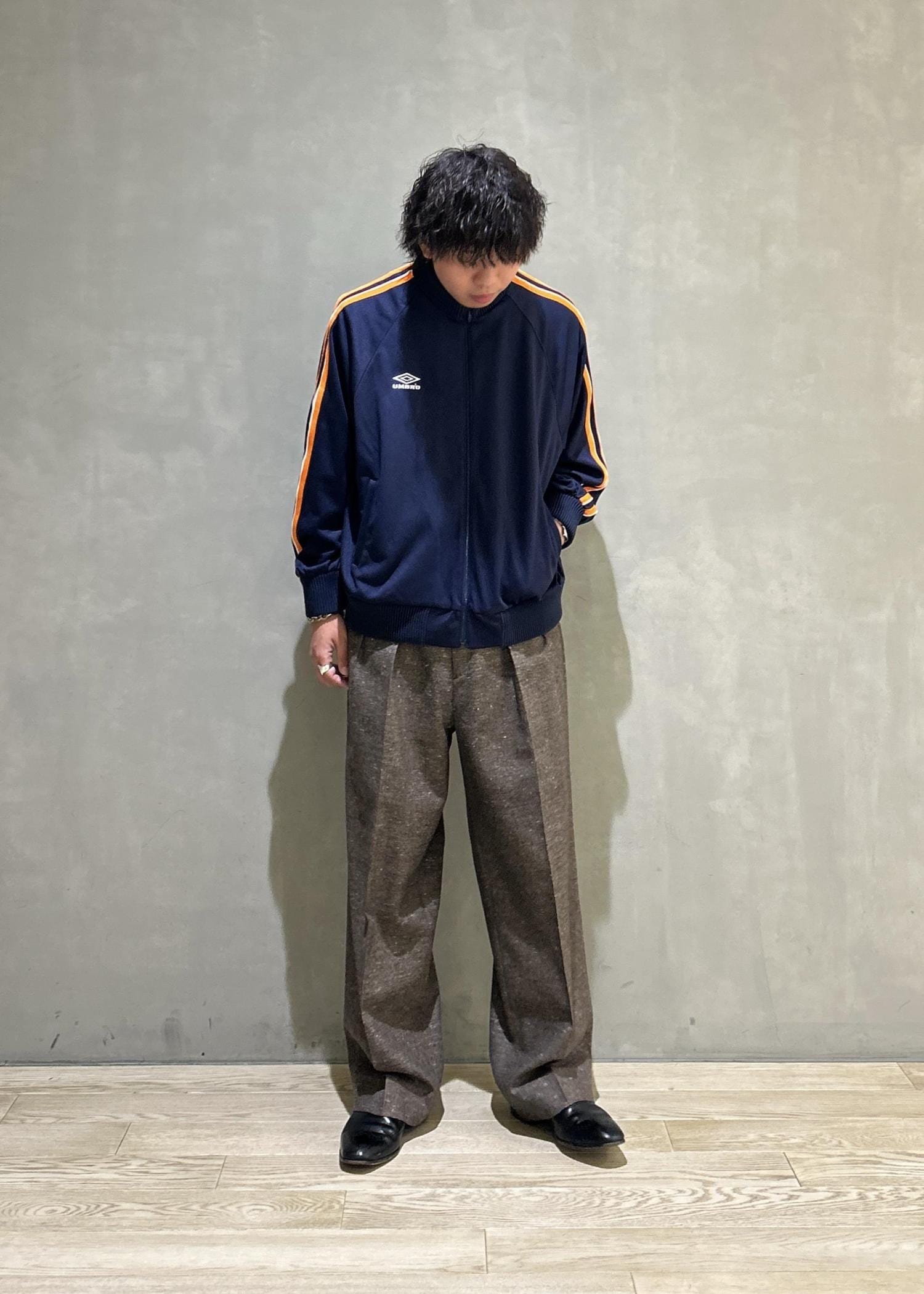 人気のトリプルコラボシリーズのジャージを合わせて古着っぽい印象になってすごくオススメです!