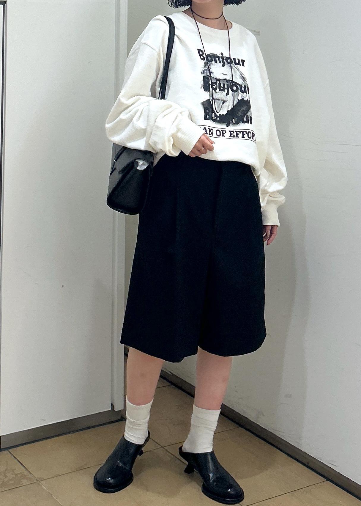 アウトレットADAM ET ROPÉ FEMME【サステナブル】ソリッド&ストライプハーフパンツブラック / 38¥13,090レビュー152センチですが、大きめのシルエットで着用したかったため、あえて38サイズを着用。