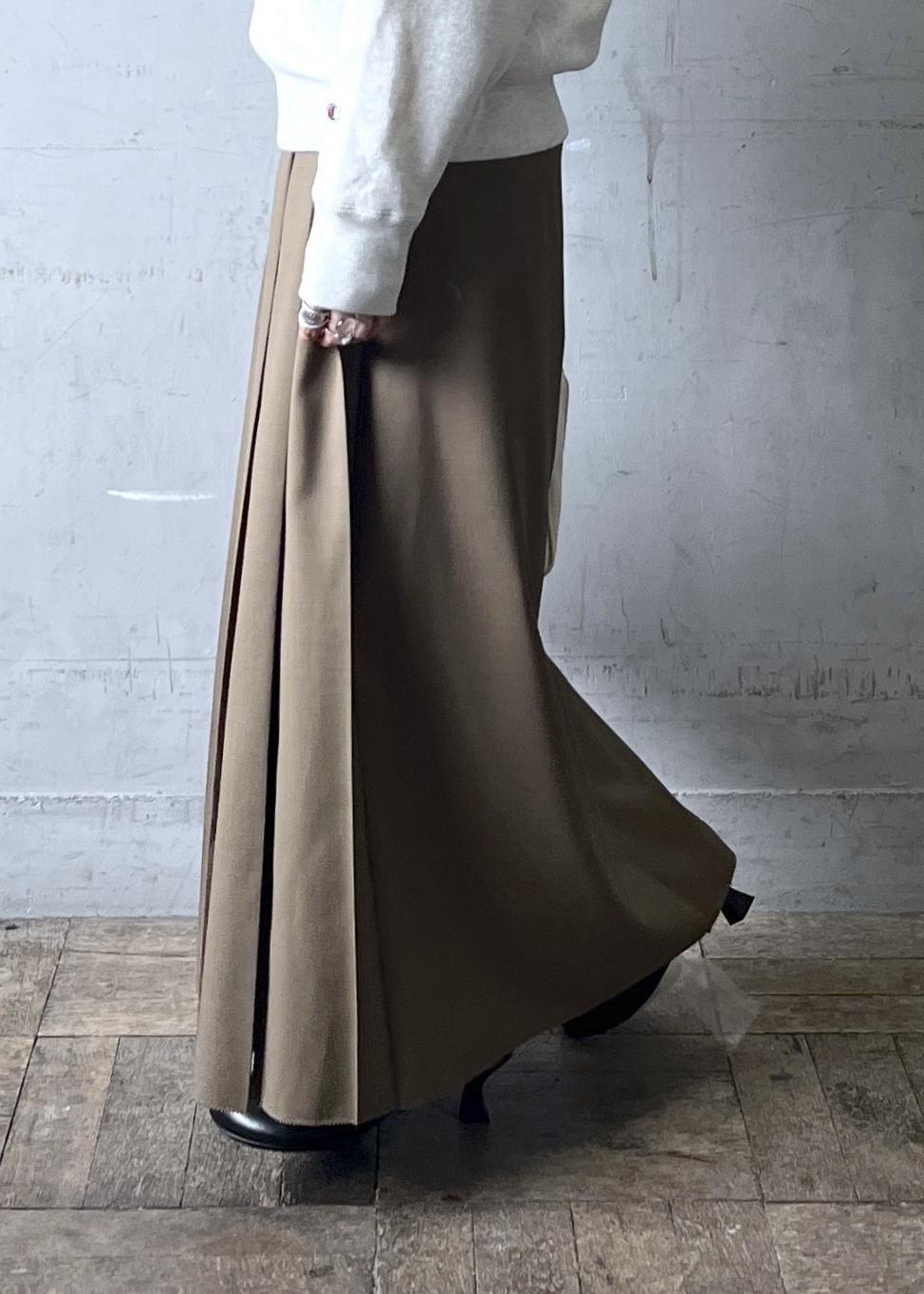 EMOELLE【EMOELLE】フロントプリーツスカートキャメル系 / 36¥29,700レビュー普段36を着用し、こちらも同サイズでウエスト・腰・ヒップジャスト。