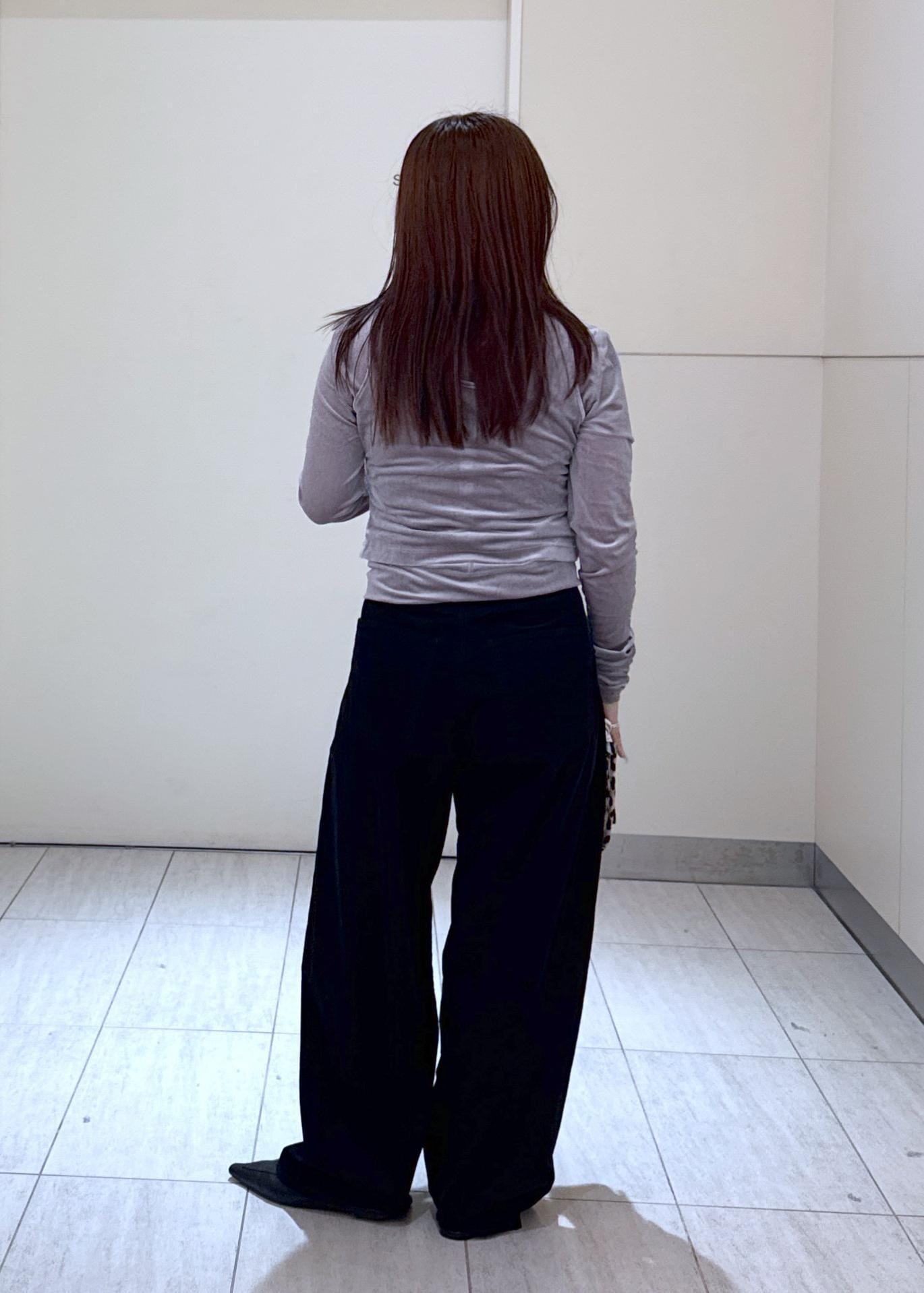 ADAM ET ROPÉ FEMME【新色追加】ガーメントダイコーデュロイパンツブラック / 34¥19,800レビュー34サイズで丈は長すぎず厚底合わせで綺麗に着れます。厚手過ぎずひとつ合わせると秋感が一気に出ます。