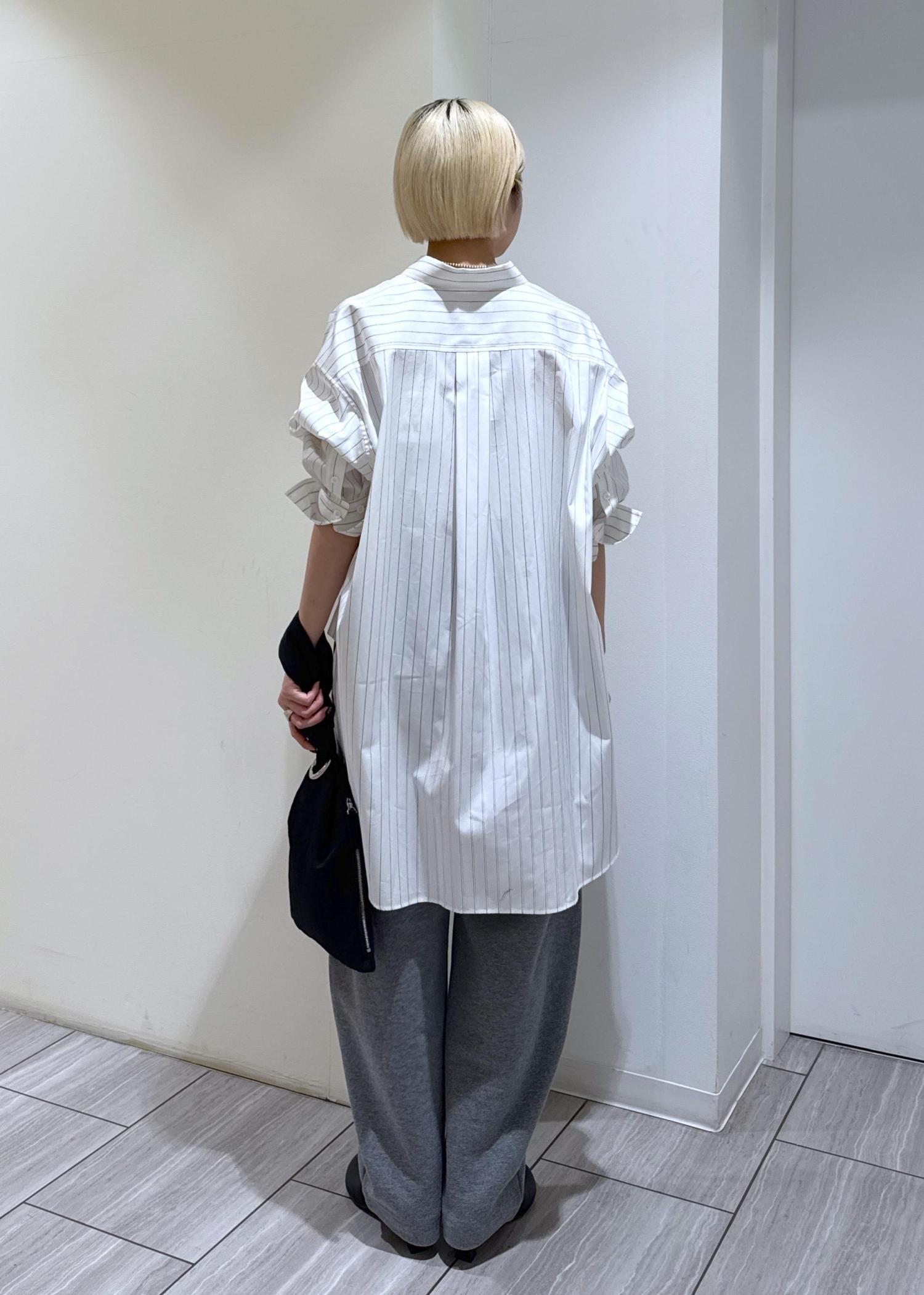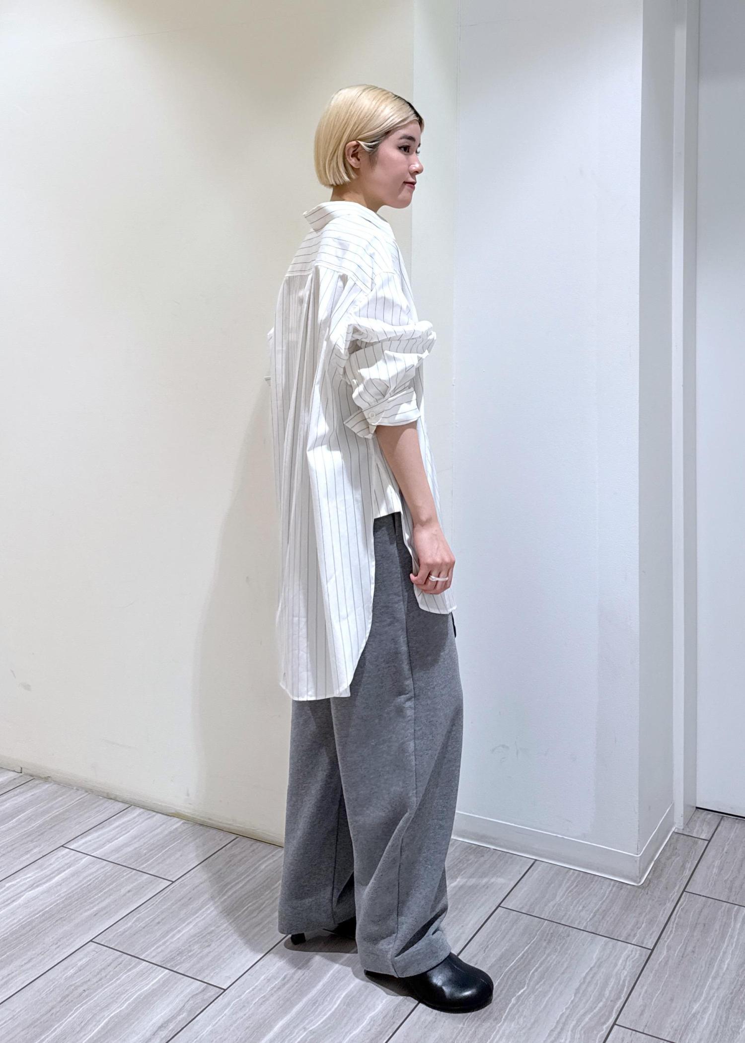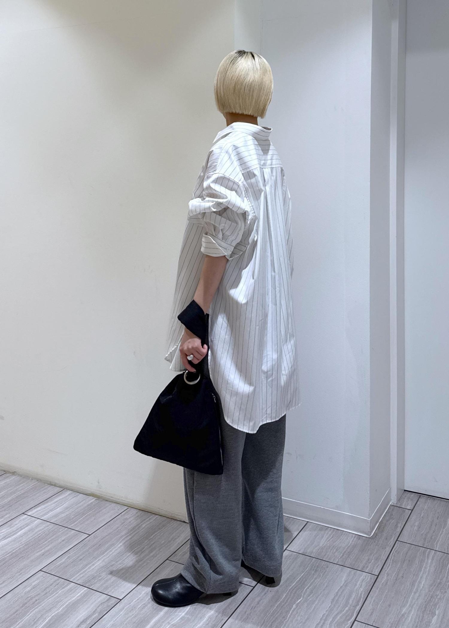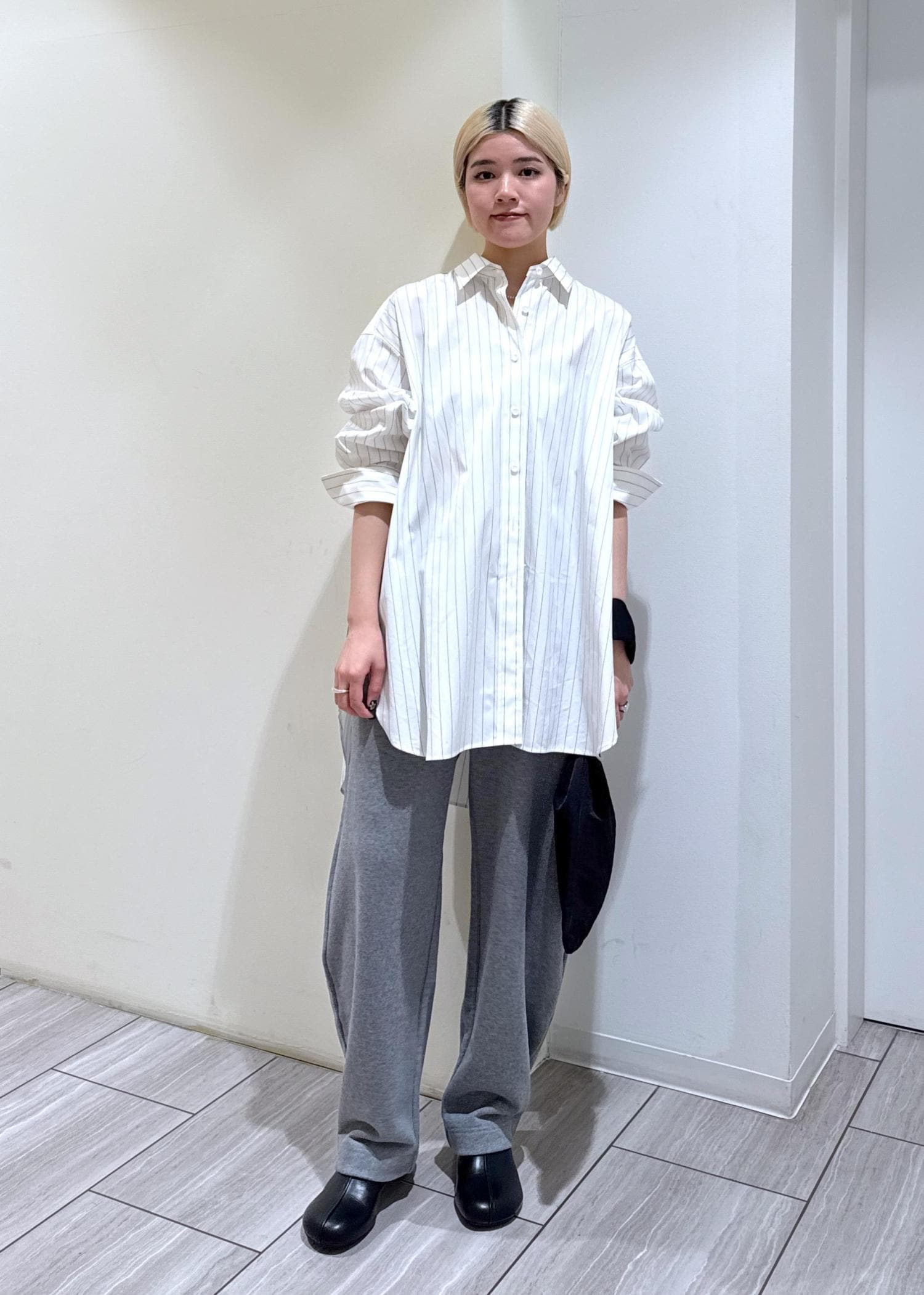 オーバーサイズでハリのあるシャツをメインに、コーデを組みました!