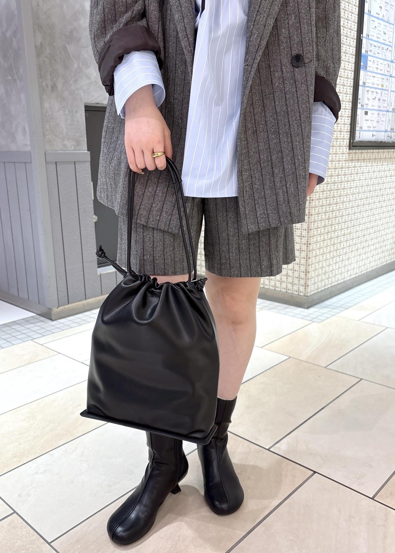 ADAM ET ROPÉ FEMME【サステナブル】アーティフシャルレザー巾着バッグブラック / F¥13,860レビュー巾着型で形可愛いのとマチがある為容量入ります