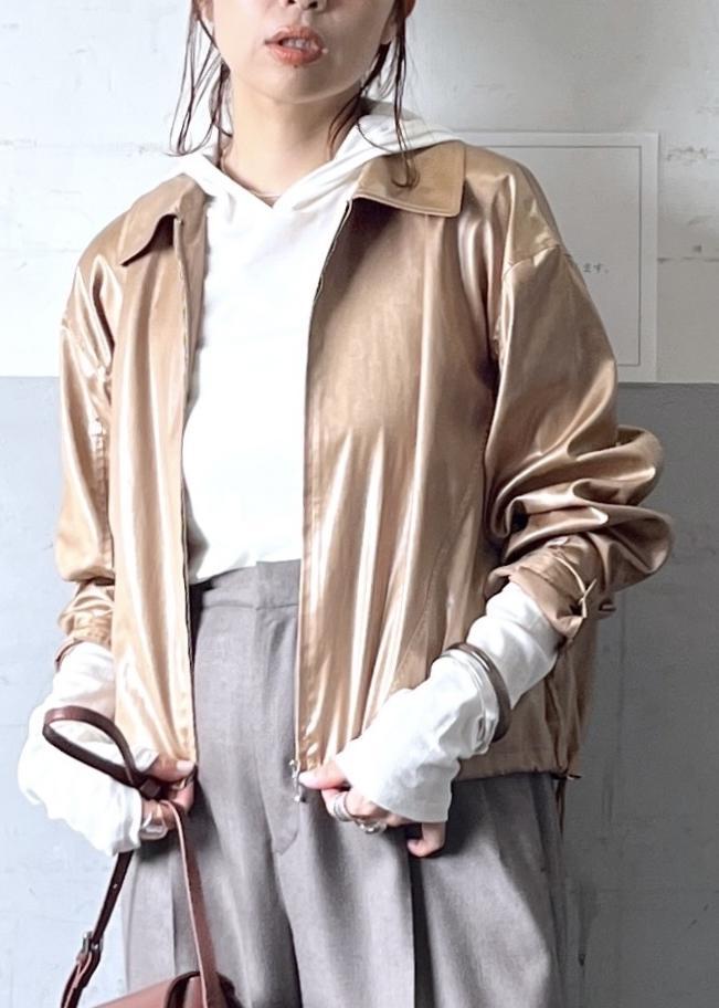 レザー見えしますが、実際にはポリエステルでとっても軽いので気軽に羽織れるのが嬉しい。
