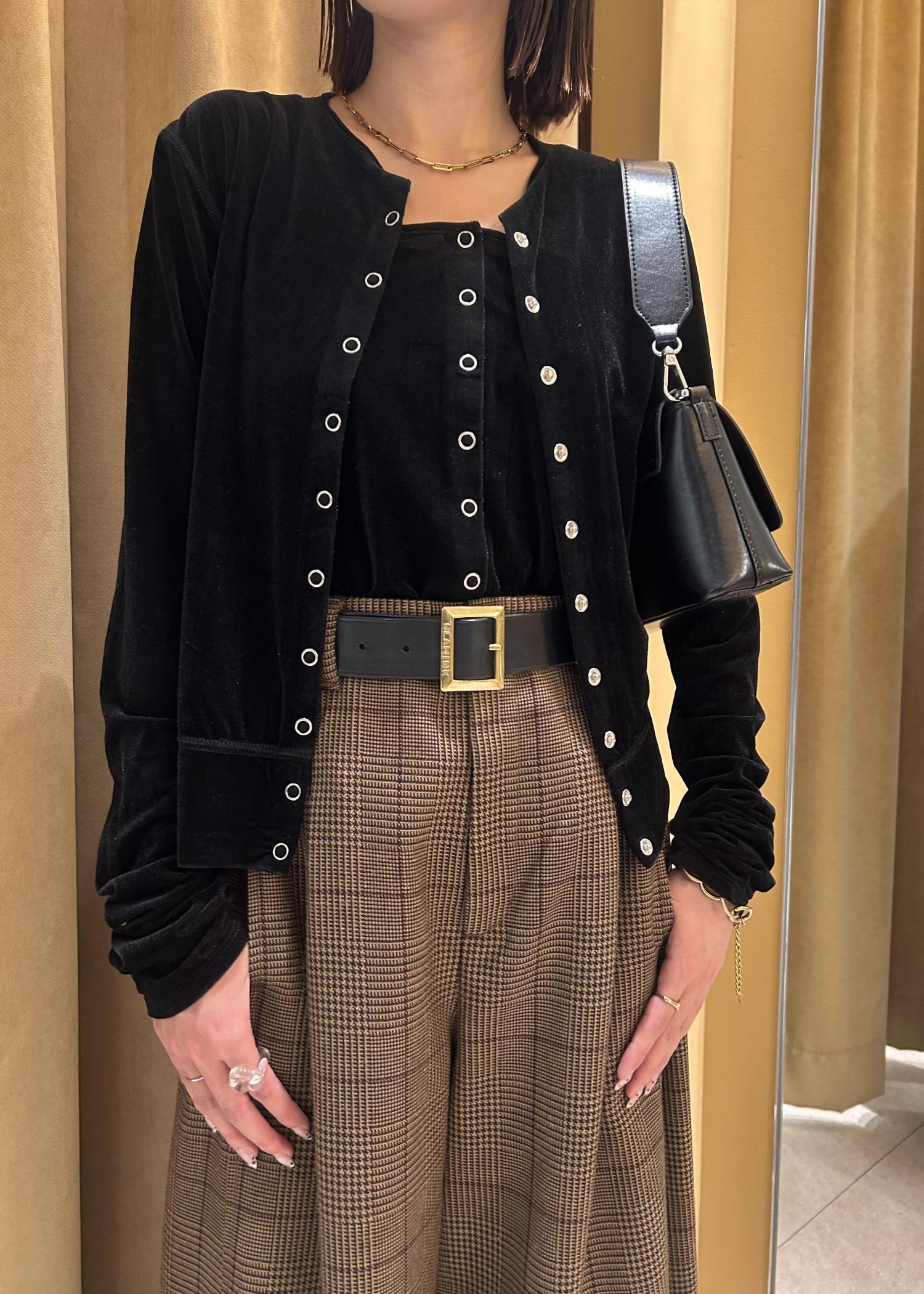 ADAM ET ROPÉ FEMMEマルチWAYシアートリコットベロアカーディガンブラック / F¥17,600レビュー程よくシアー素材になっているので