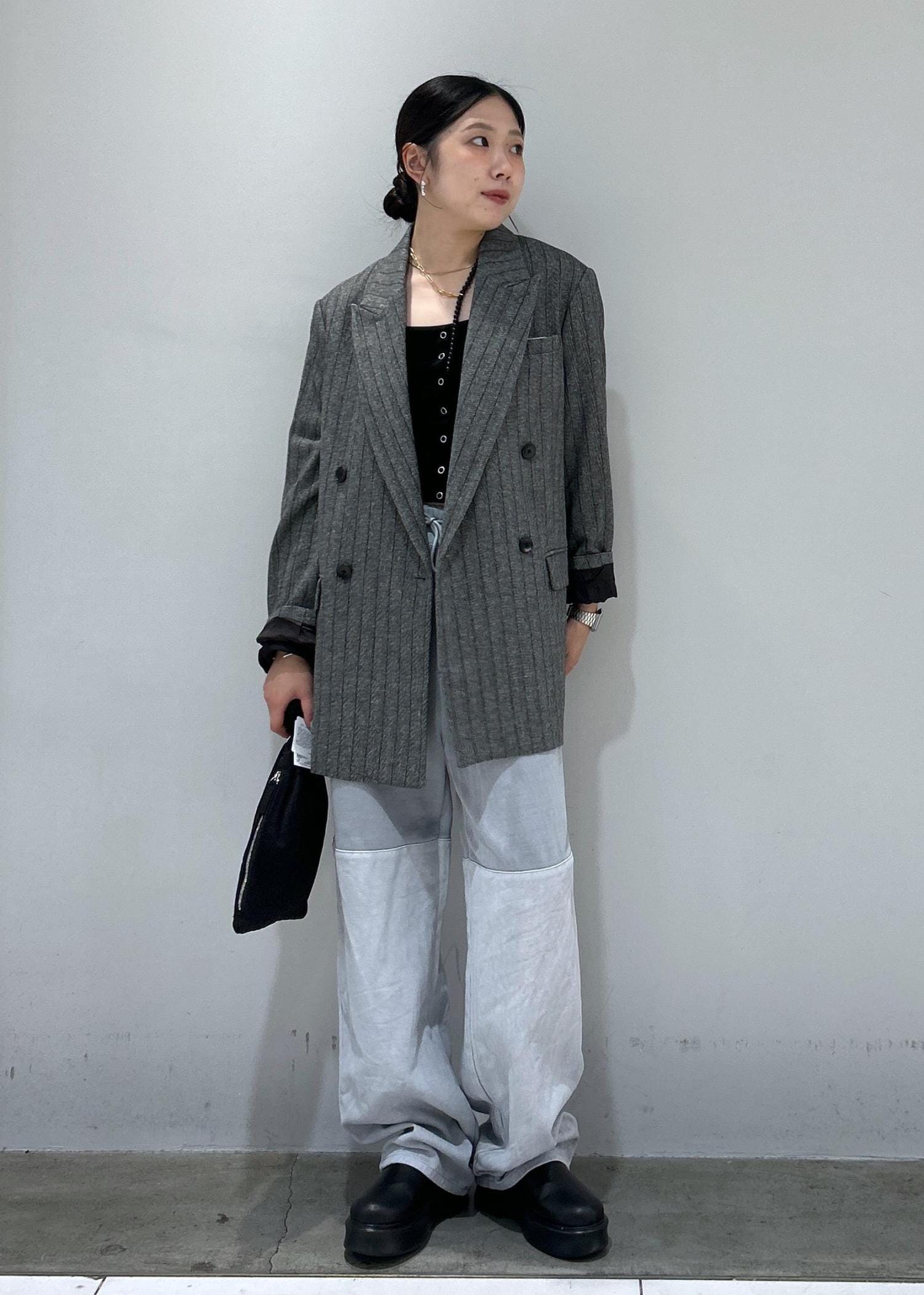 ADAM ET ROPÉ FEMMEダブルブレストツイード&チェックジャケットグレー / 36¥40,700レビューオーバーサイズのアイテムで、161cm36サイズを着用しております。