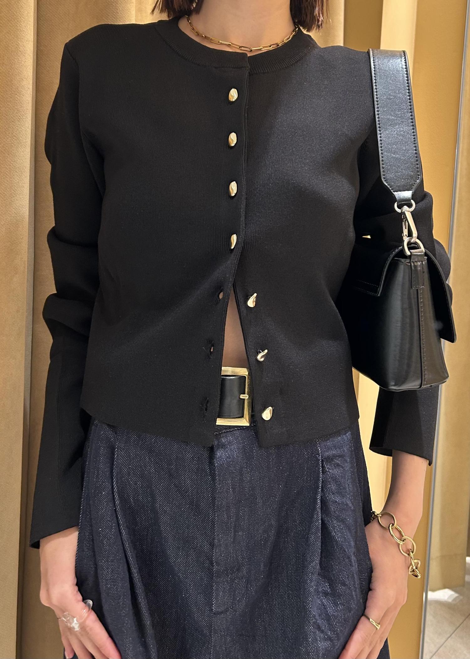 ADAM ET ROPÉ FEMMEセレクトレングスクルーネックニットカーディガンブラック / 36¥14,300レビュードライタッチで今の気温からサラッと
