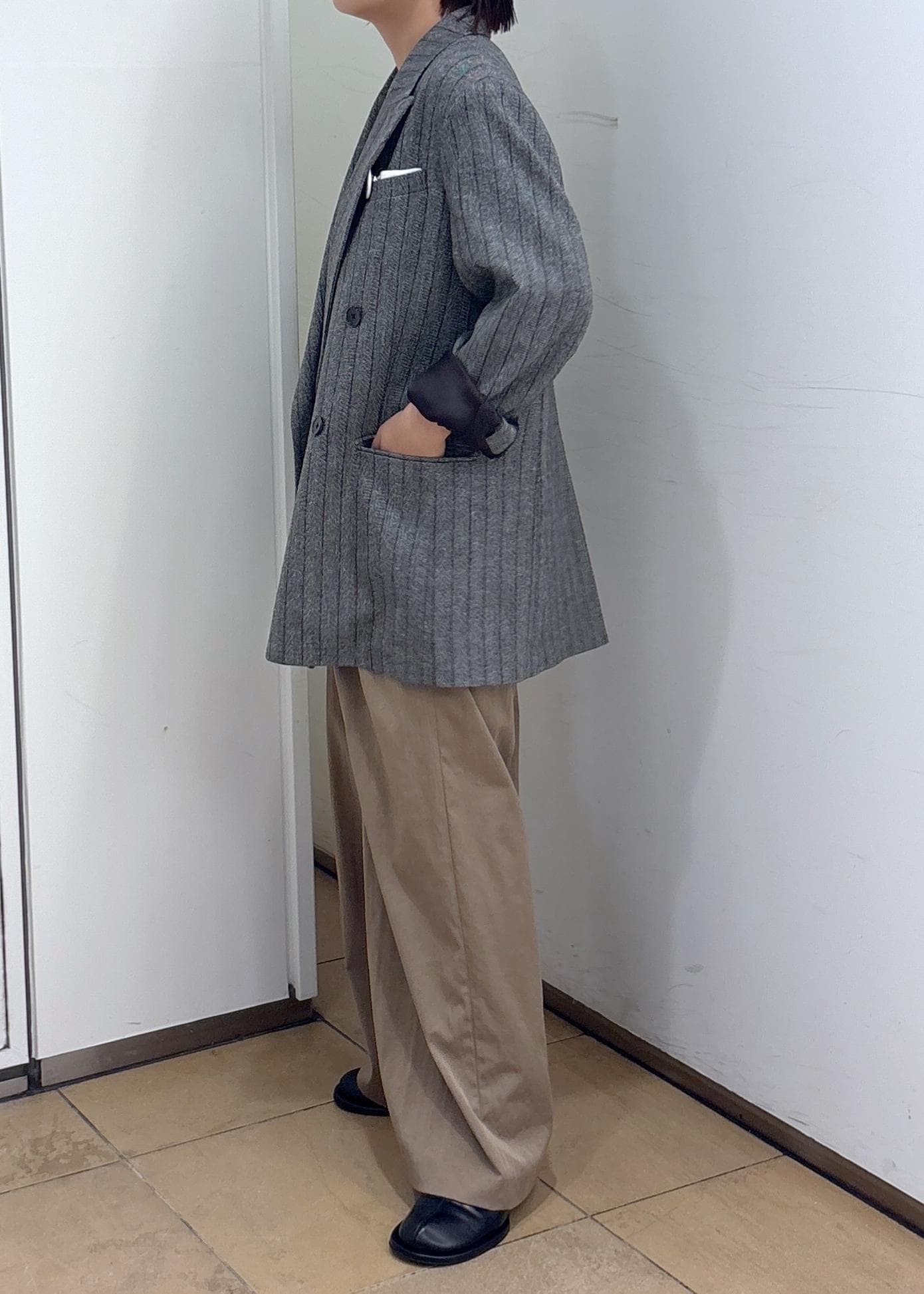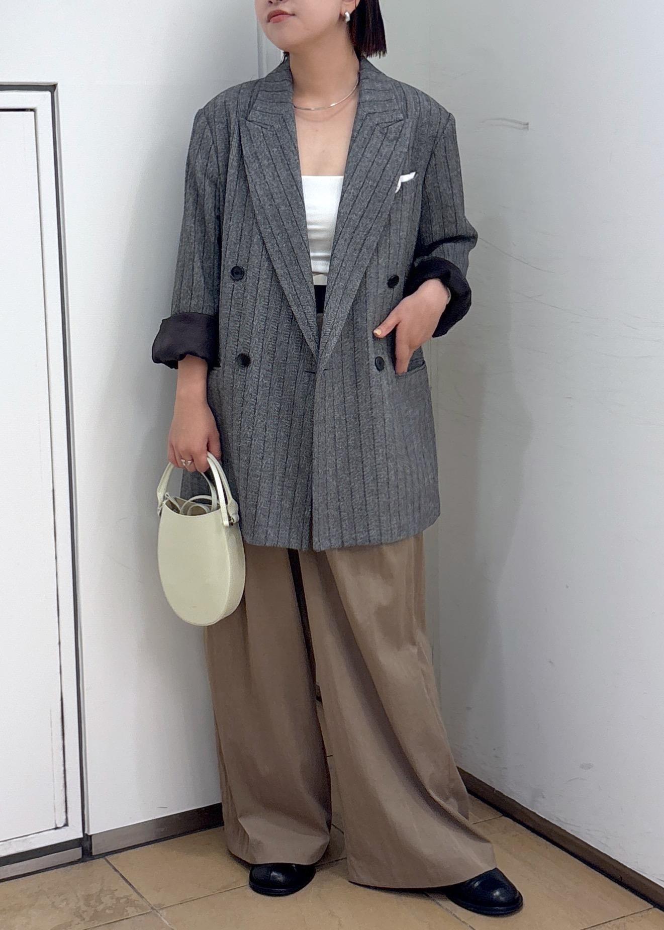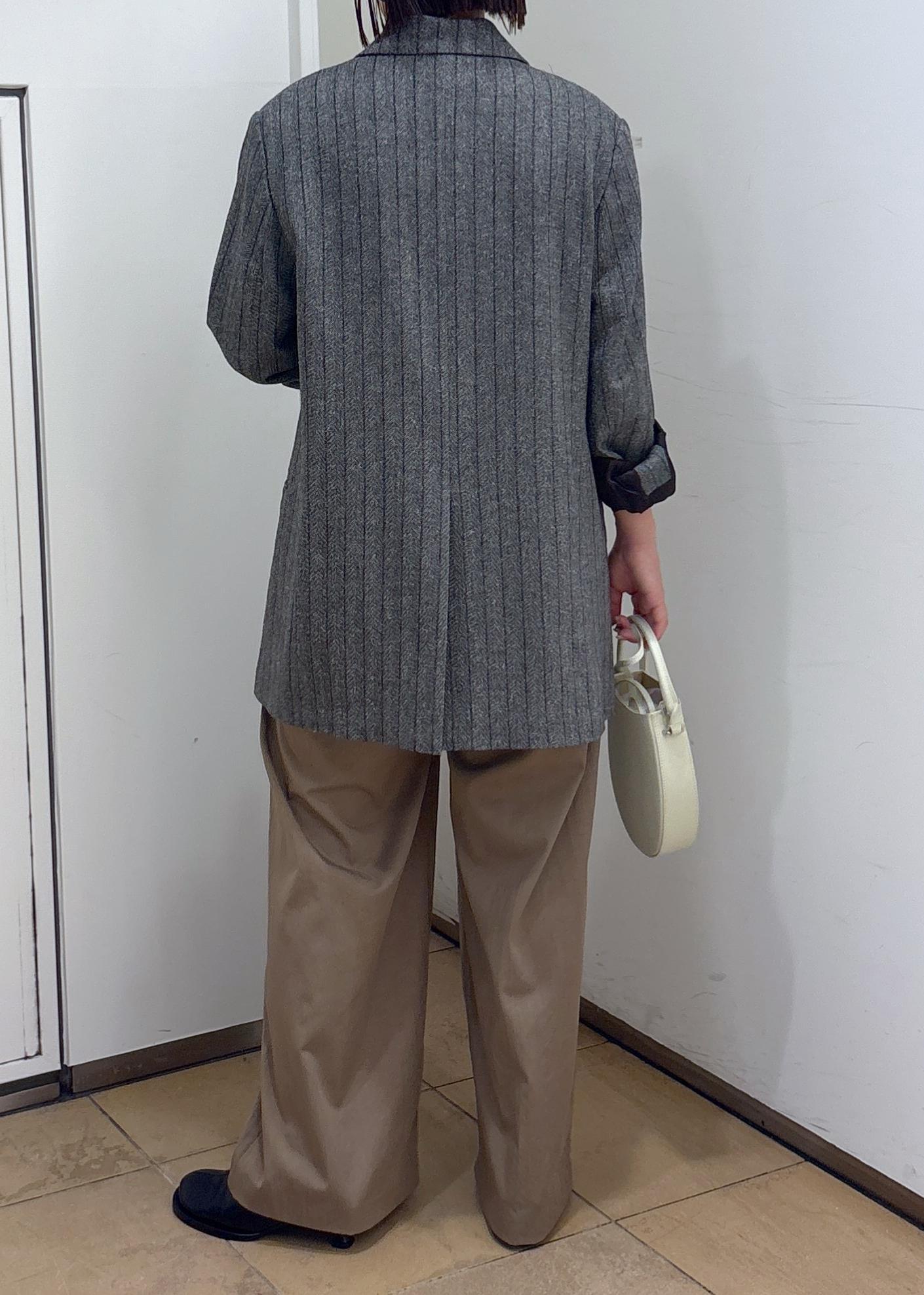 ADAM ET ROPÉ FEMMEダブルブレストツイード&チェックジャケットグレー / 36¥40,700レビュー158cmで36サイズを着用しました。ゆったりとしたサイズ感でお尻が隠れる丈感です。