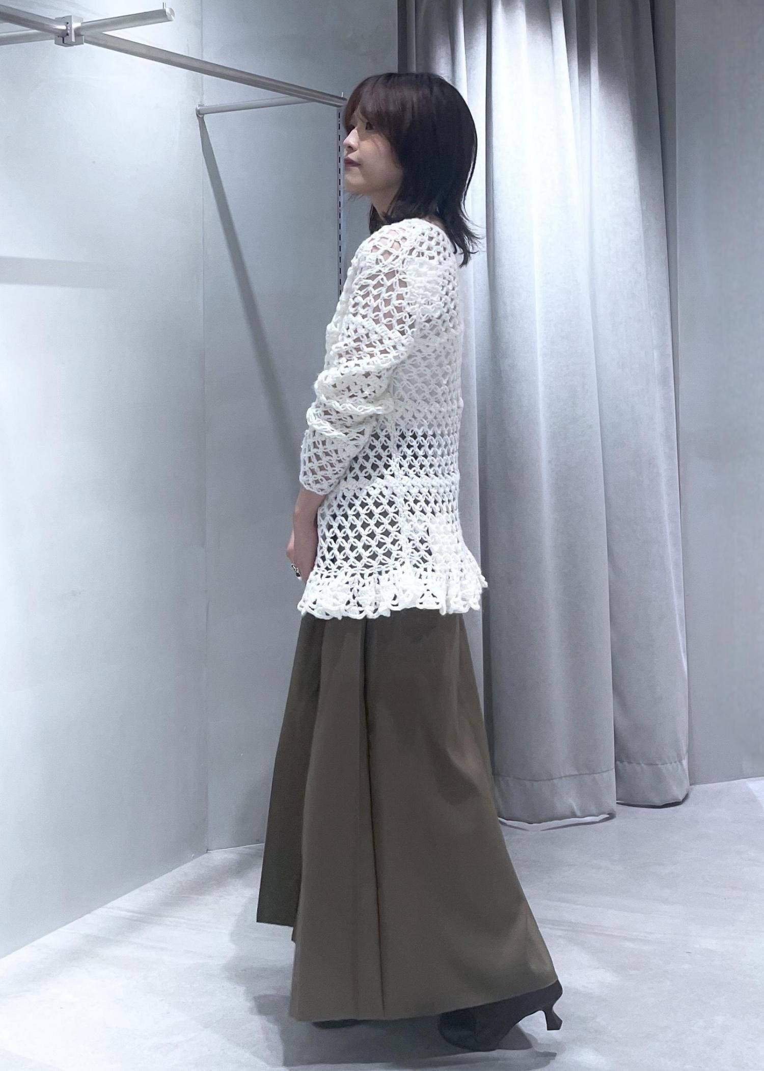 スカートもウールが入っていますが、生地は薄目なのとスリッドが脇に入っているので今の時期からでも合わせやすいですよ!