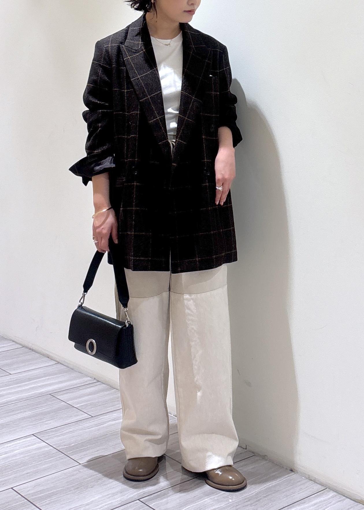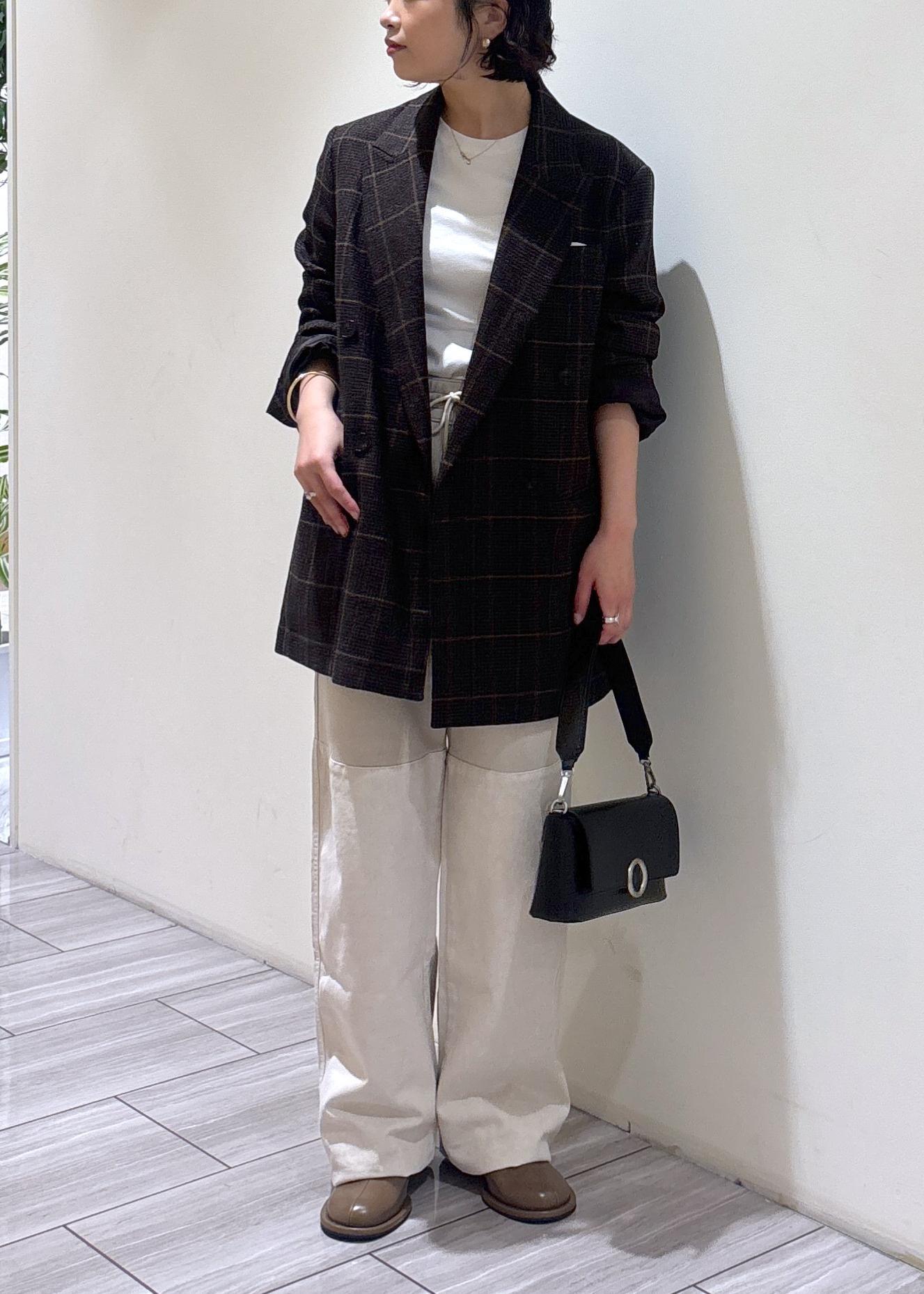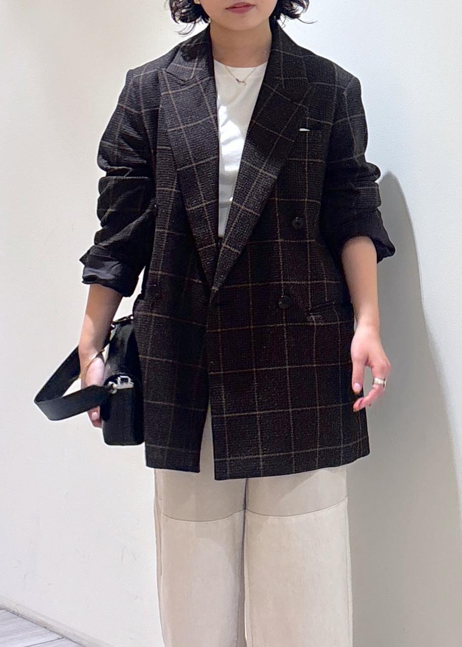 ADAM ET ROPÉ FEMMEダブルブレストツイード&チェックジャケットブラウン / 36¥40,700レビューオーバーサイズなシルエットでゆったりとしてます。