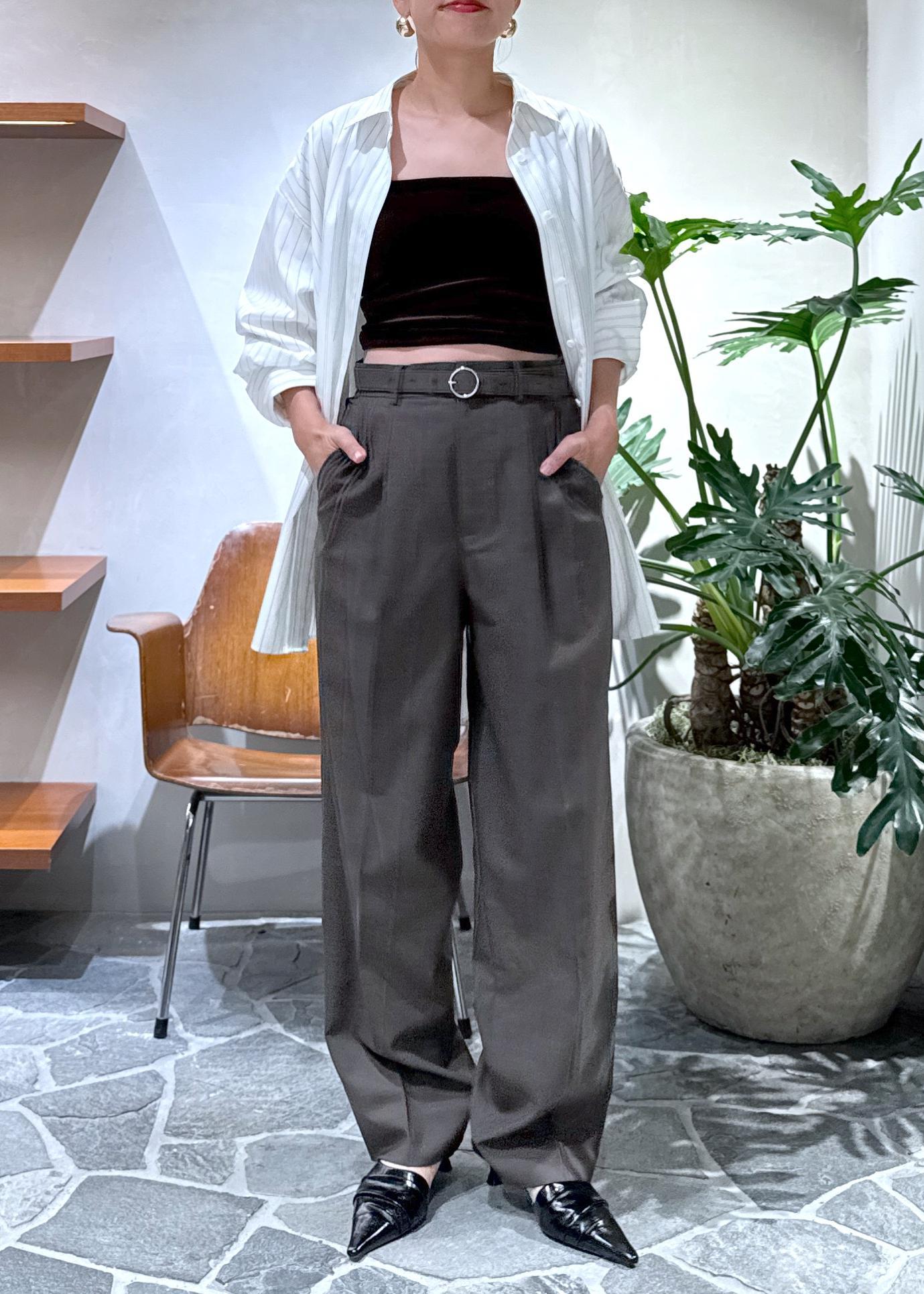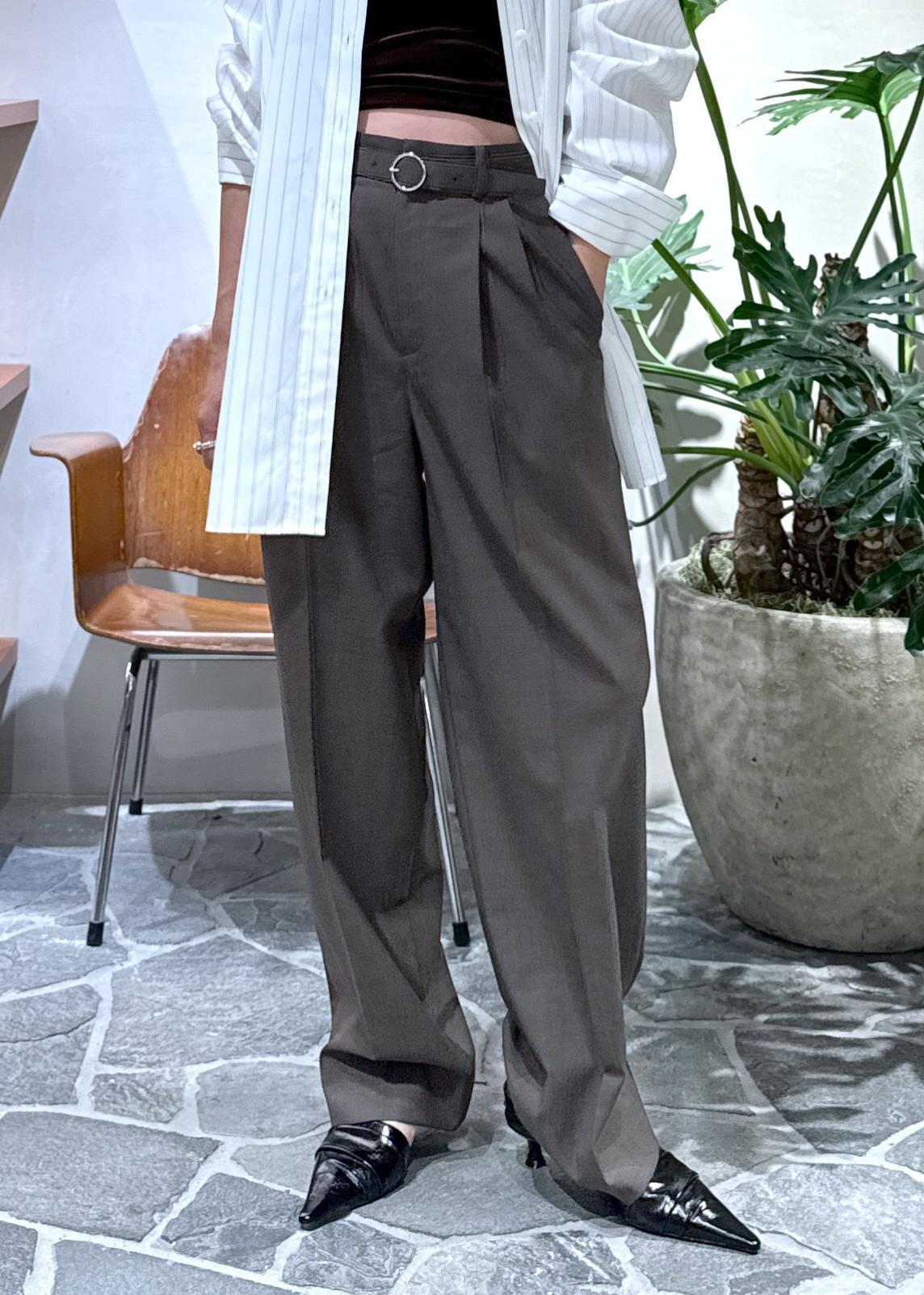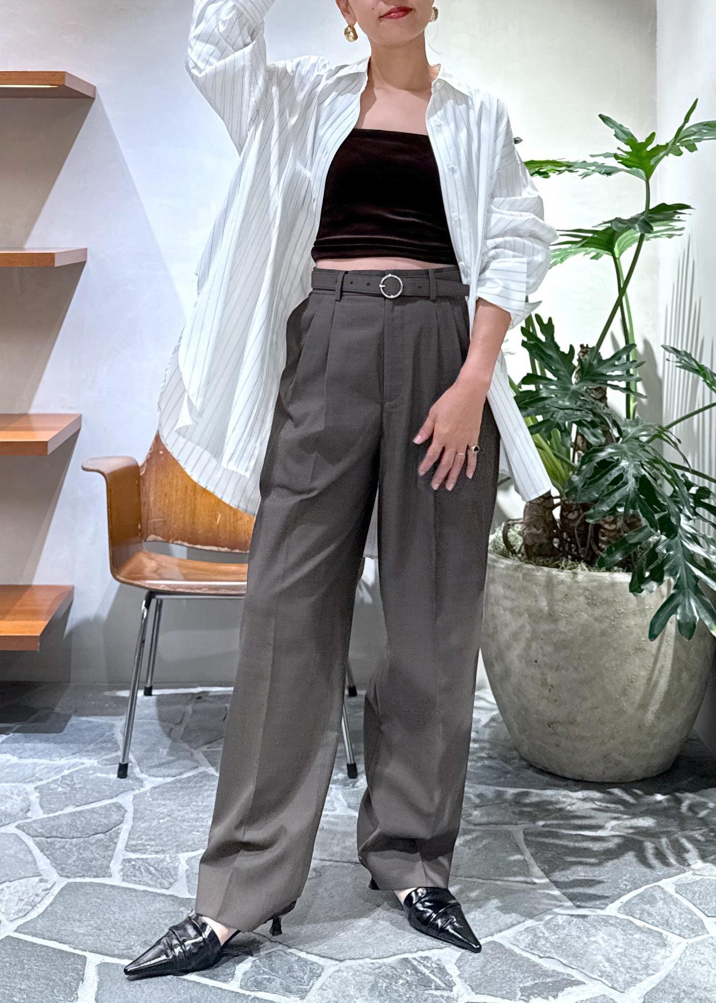 EMOELLE【EMOELLE】ベルテッドスラックスグレー系 / 36¥29,700レビューウール混の素材が上品な表面を出してくれて、ハンサムな印象に。ハイウエストとストレートシルエットがかっこいいです。