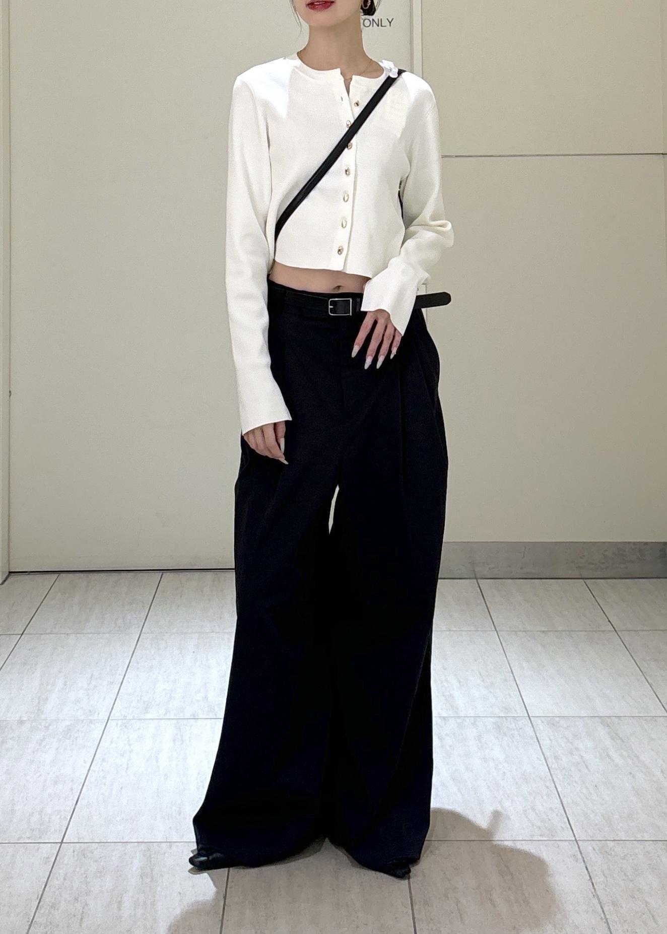 ADAM ET ROPÉ FEMMEセレクトレングスクルーネックニットカーディガンオフホワイト / 36¥14,300レビューコンパクトなシルエットと袖丈の長さが絶妙なバランスで一枚でスタイルアップが叶います◎