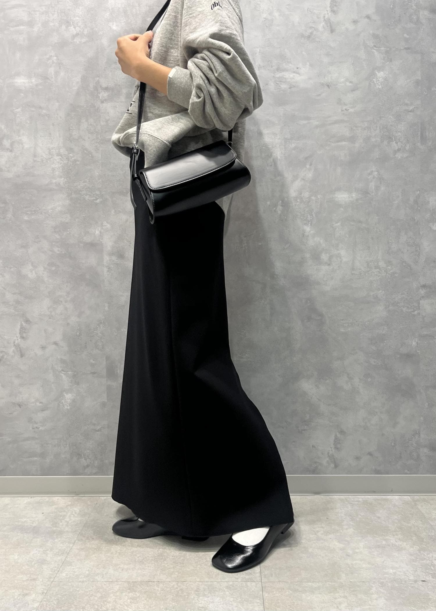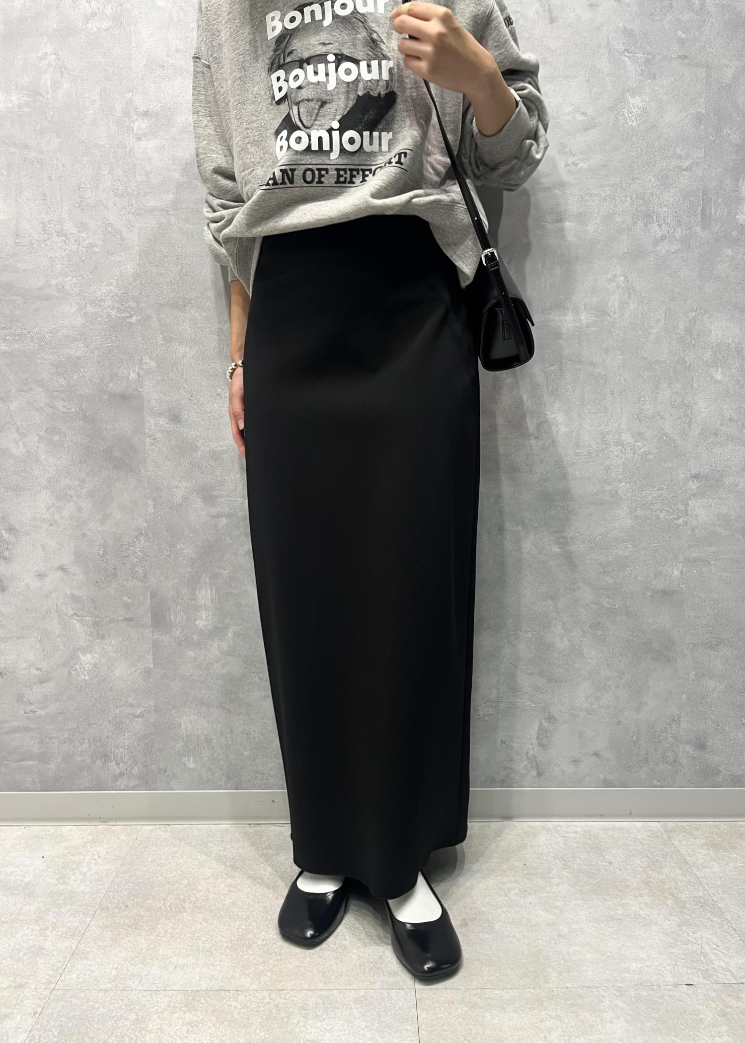 EMOELLE【EMOELLE】バックスリットIラインロングスカートブラック / 36¥26,400レビュー身長162amで36サイズ着用です。生地がしっかりとしているので腰回りのラインも拾いすぎず綺麗に着用できました。