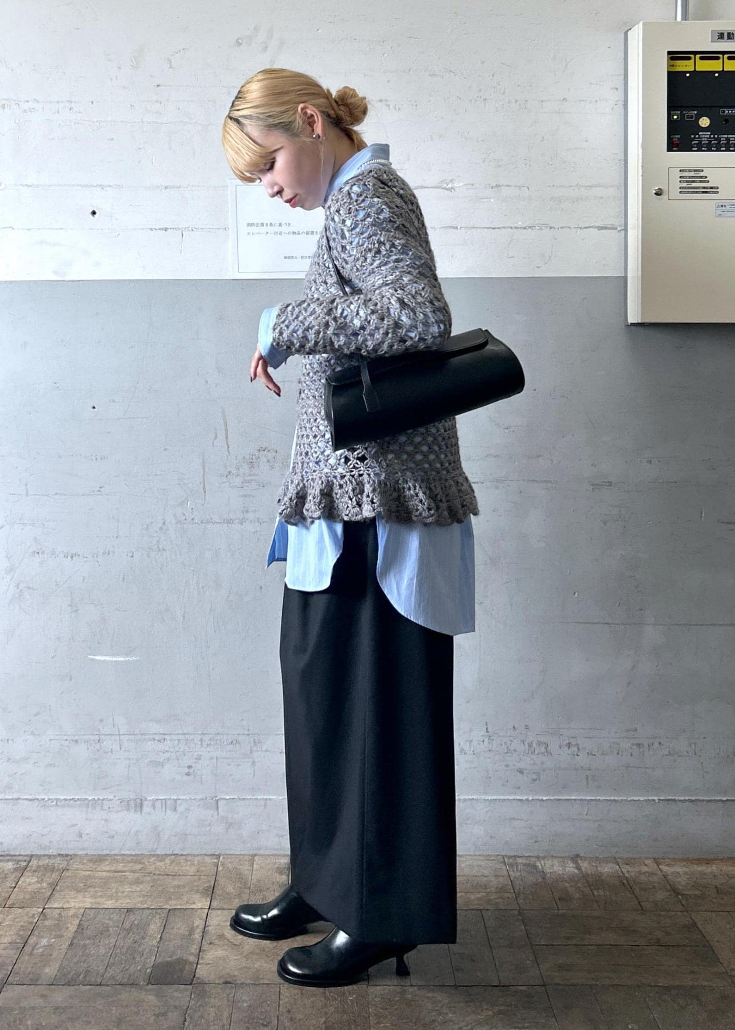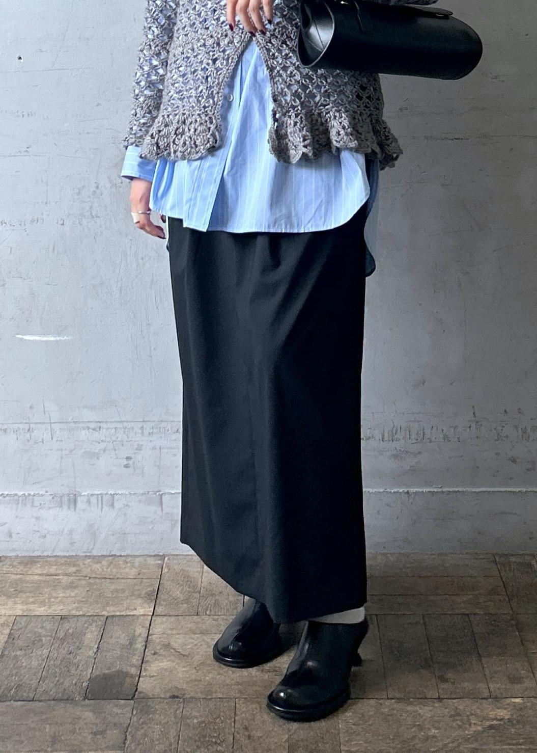 スリットがあることにより、前だけインするスタイルでも着ていただけるので使っていただきやすいです。