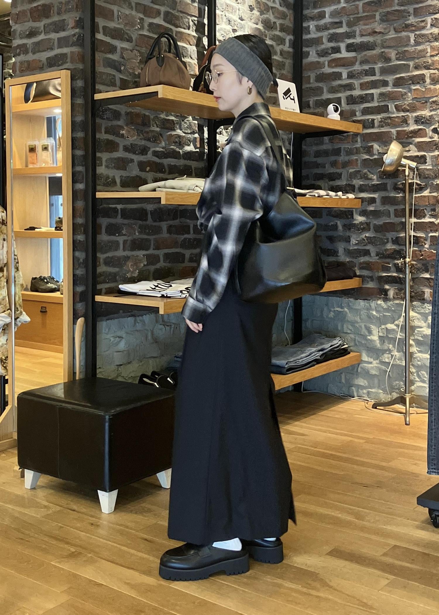 ロンTやスウェット、ニットやシャツ幅広いアイテムと合うので、着回しが楽しめるスカートです!