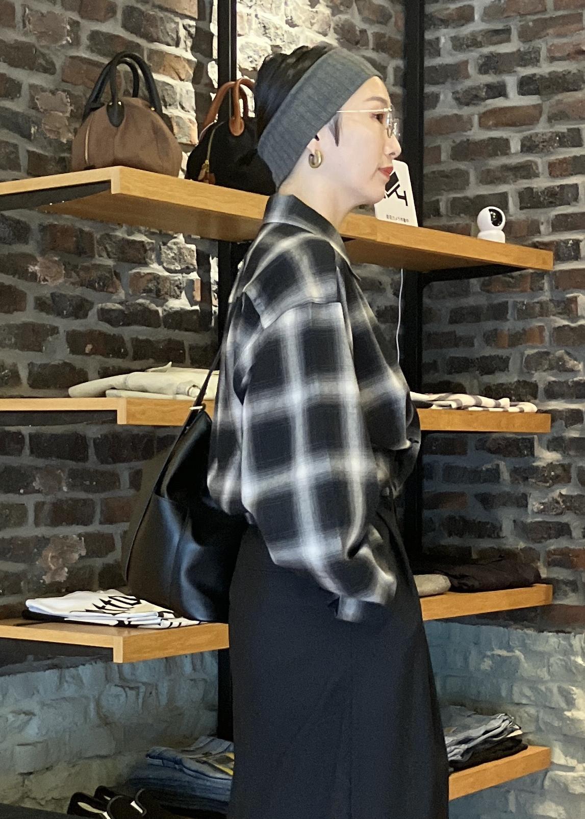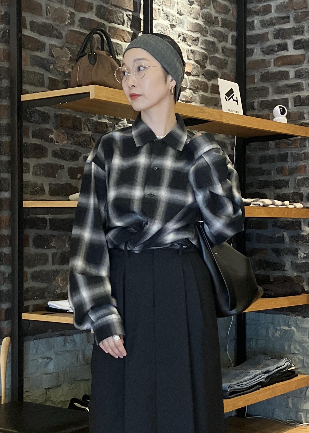 ADAM ET ROPÉ HOMMEオンブレチェック オープンカラーシャツブラック系 / M¥17,930レビューメンズのチェックシャツですが、女性がゆるめに着ても素敵ですよ。