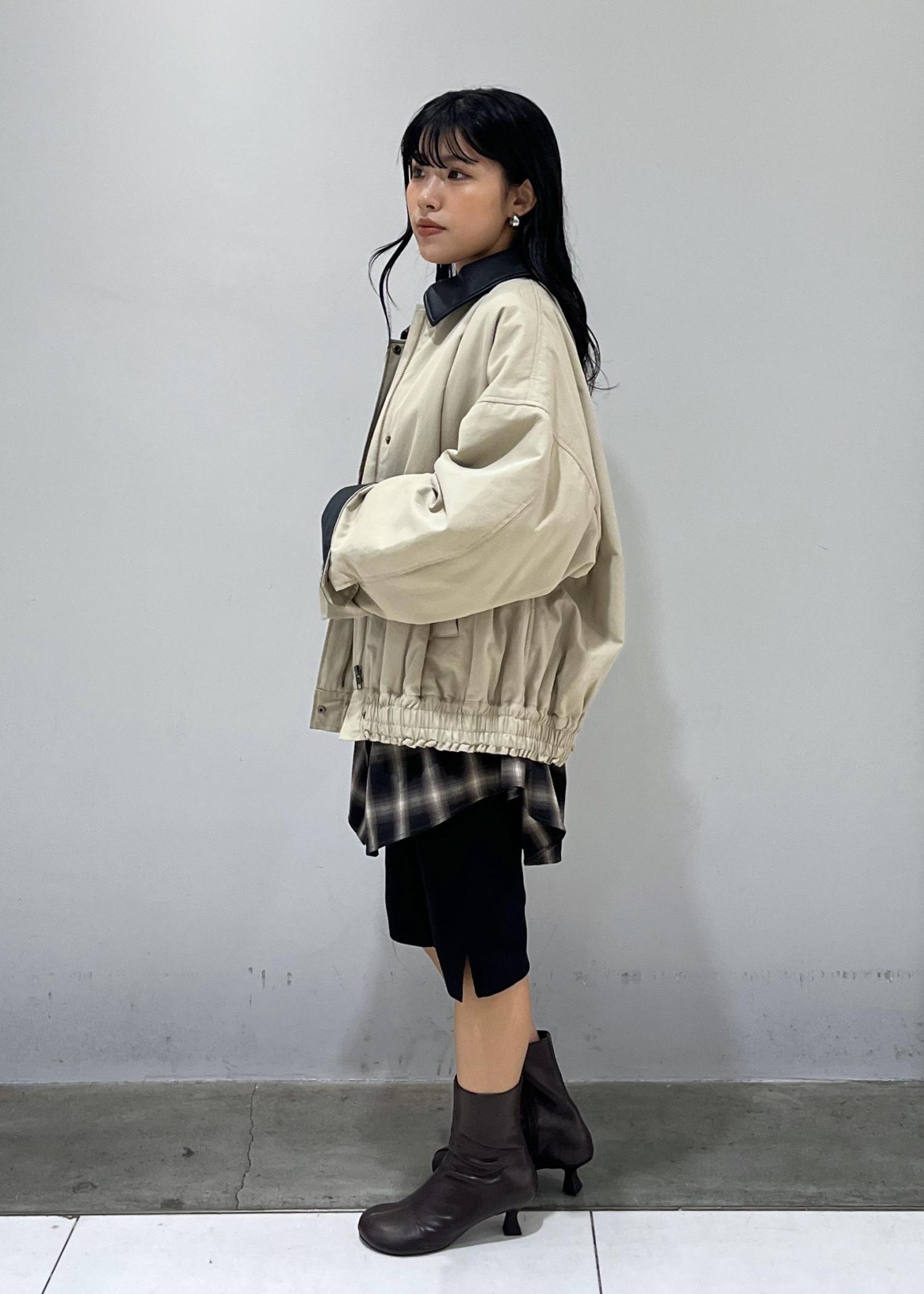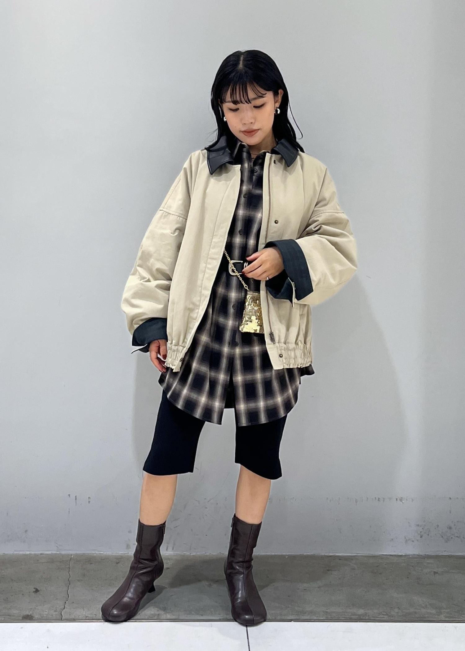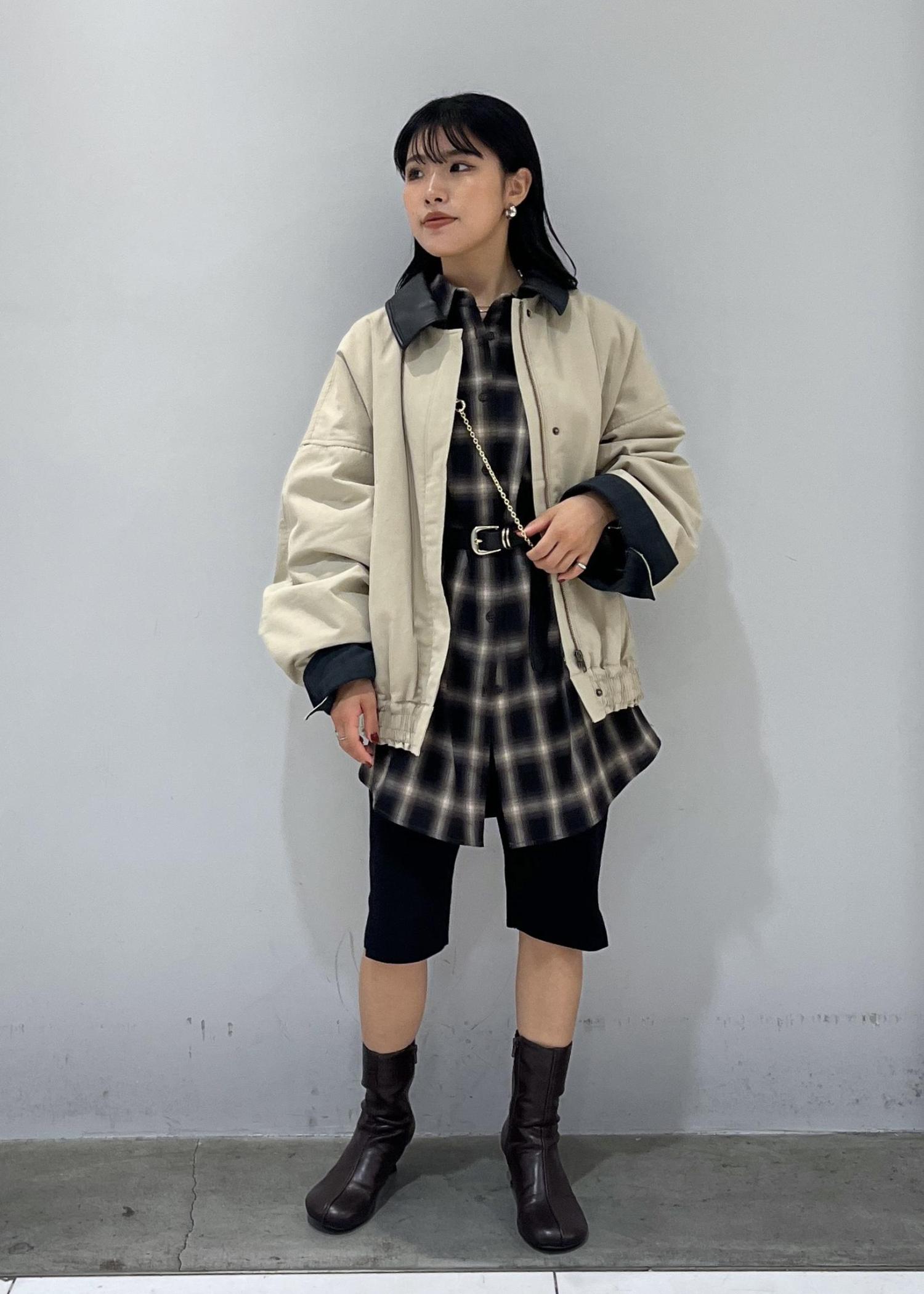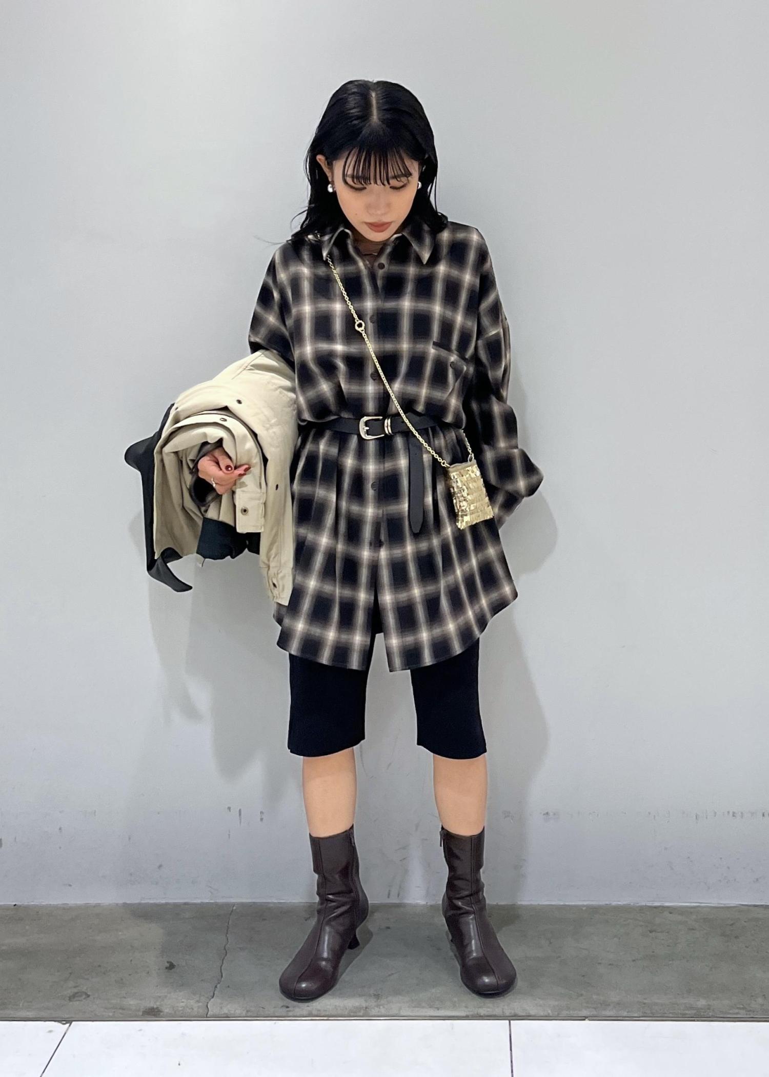 シャツはオーバーサイズになっているので低身長の方はベルトなどでとめていただくとバランスが取りやすいと思います♩