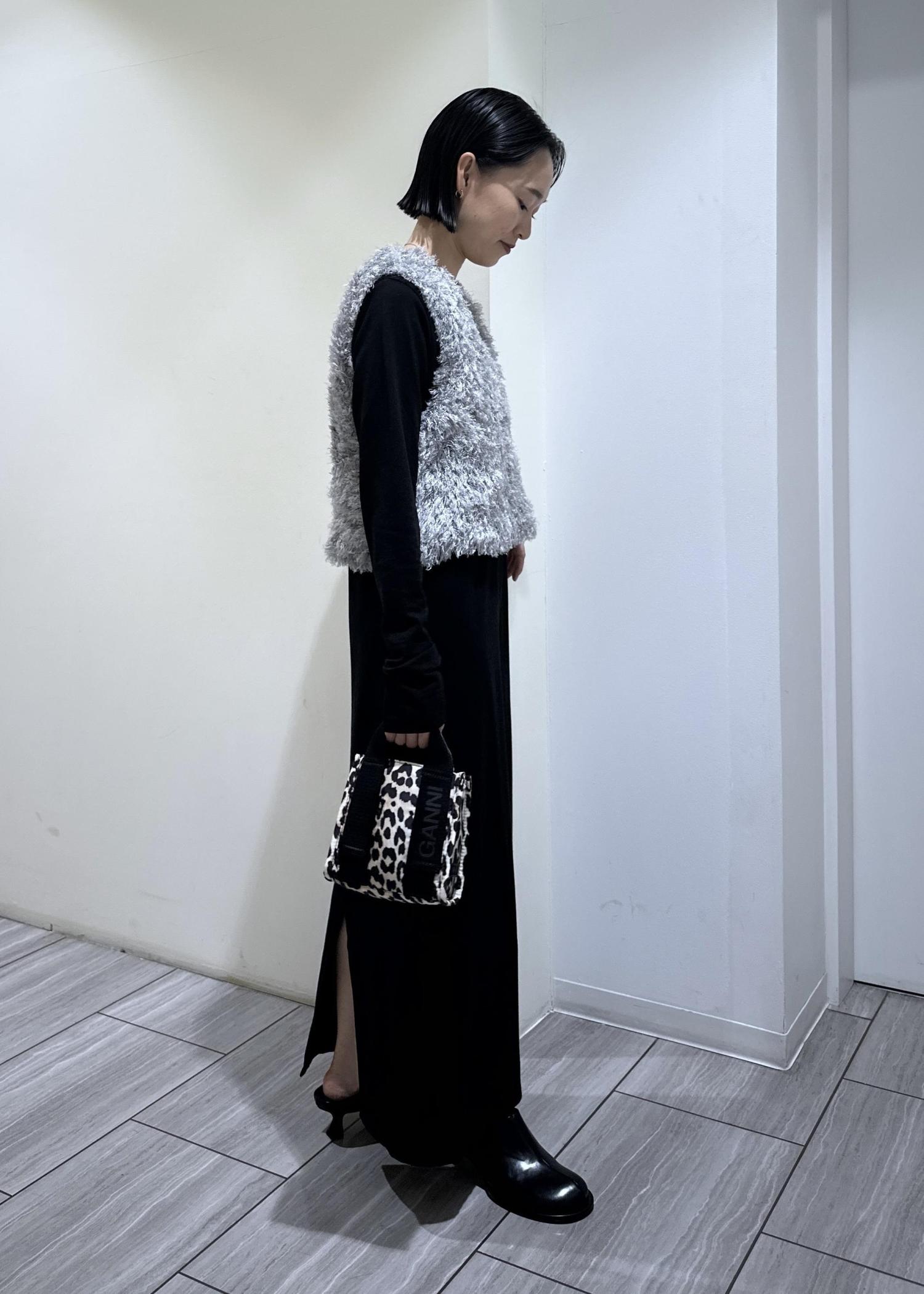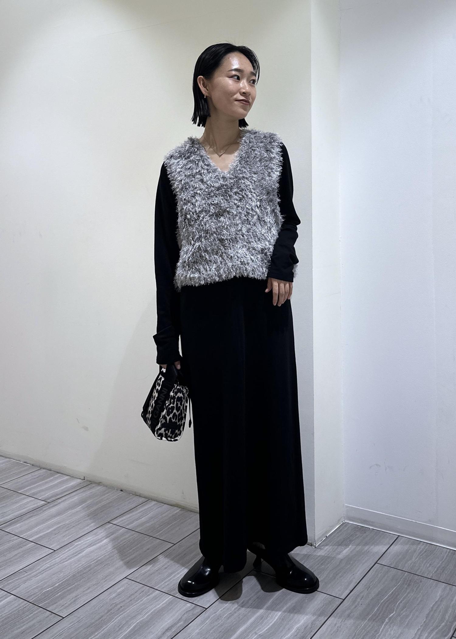 ADAM ET ROPÉ FEMMEフェザーベストグレー / F¥13,860レビューコーディネートのポイントになるアイテム。レイヤードスタイルで綺麗めにもカジュアルにも合わせやすいアイテムになっています◯