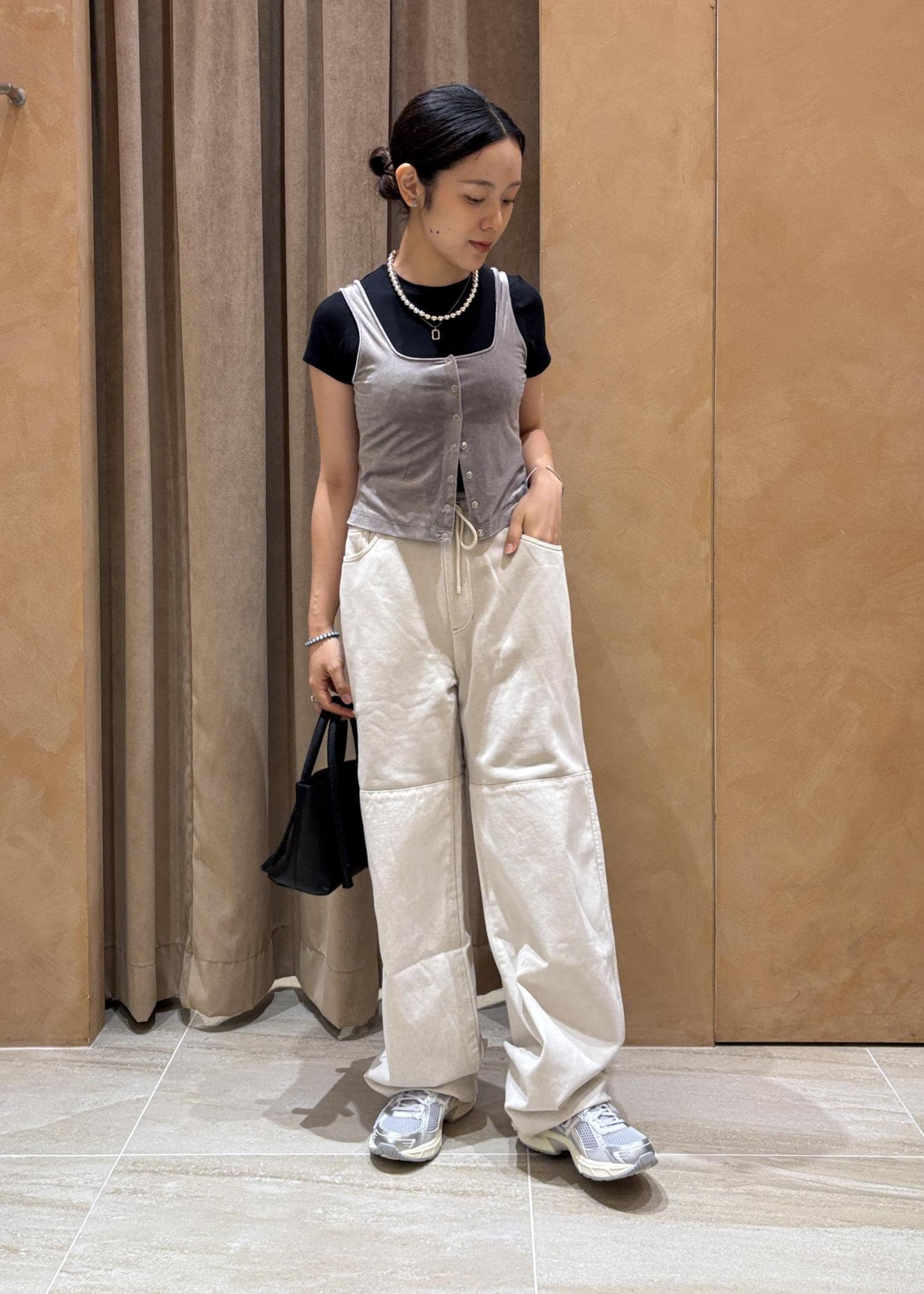 ADAM ET ROPÉ FEMME【AMOMENTO for ADAM ET ROPE'】別注DRAWSTRING DENIM PANTSベージュ / S¥30,800レビューデニムとスウェットの切り返しがスタイリングのアクセントになります!!