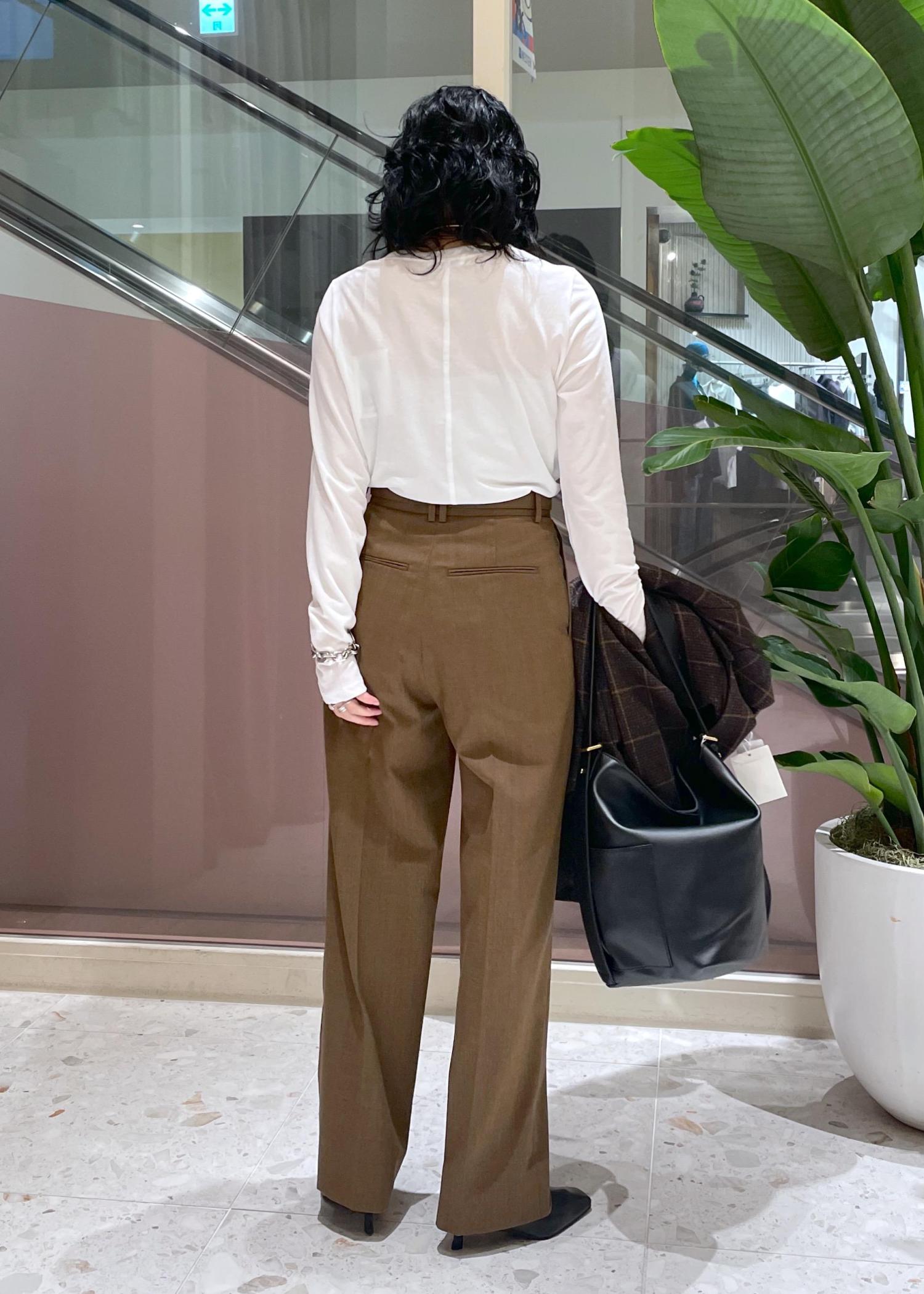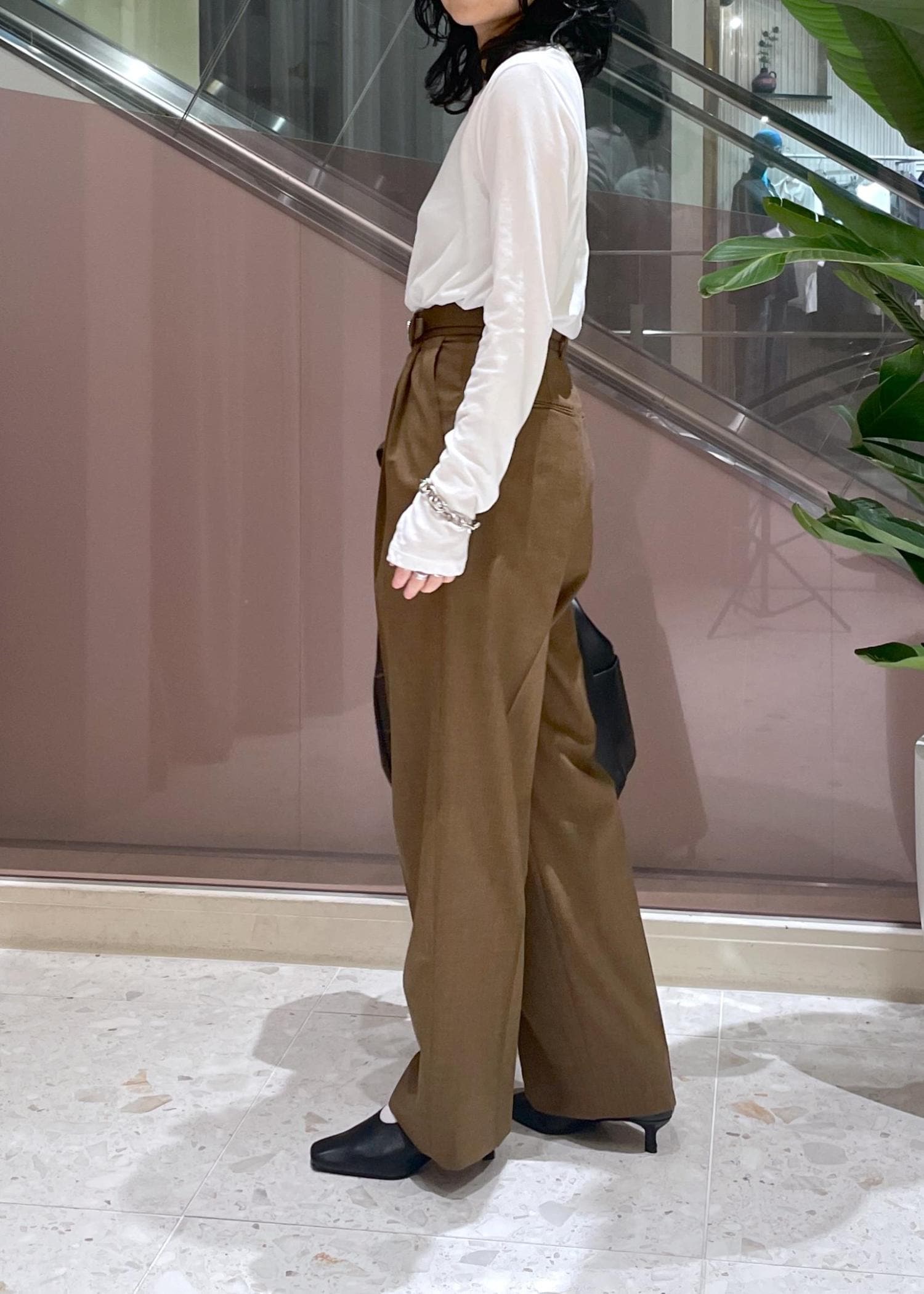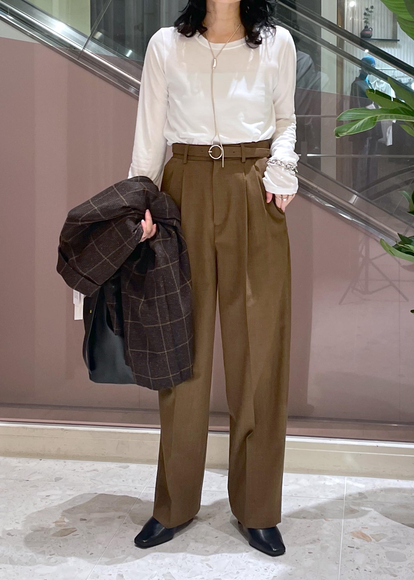 EMOELLE【EMOELLE】ベルテッドスラックスキャメル系 / 36¥29,700レビュー36サイズでウエスト周りもちょうど良いサイズ感です、丈は長めですが足元で溜まる感じです。