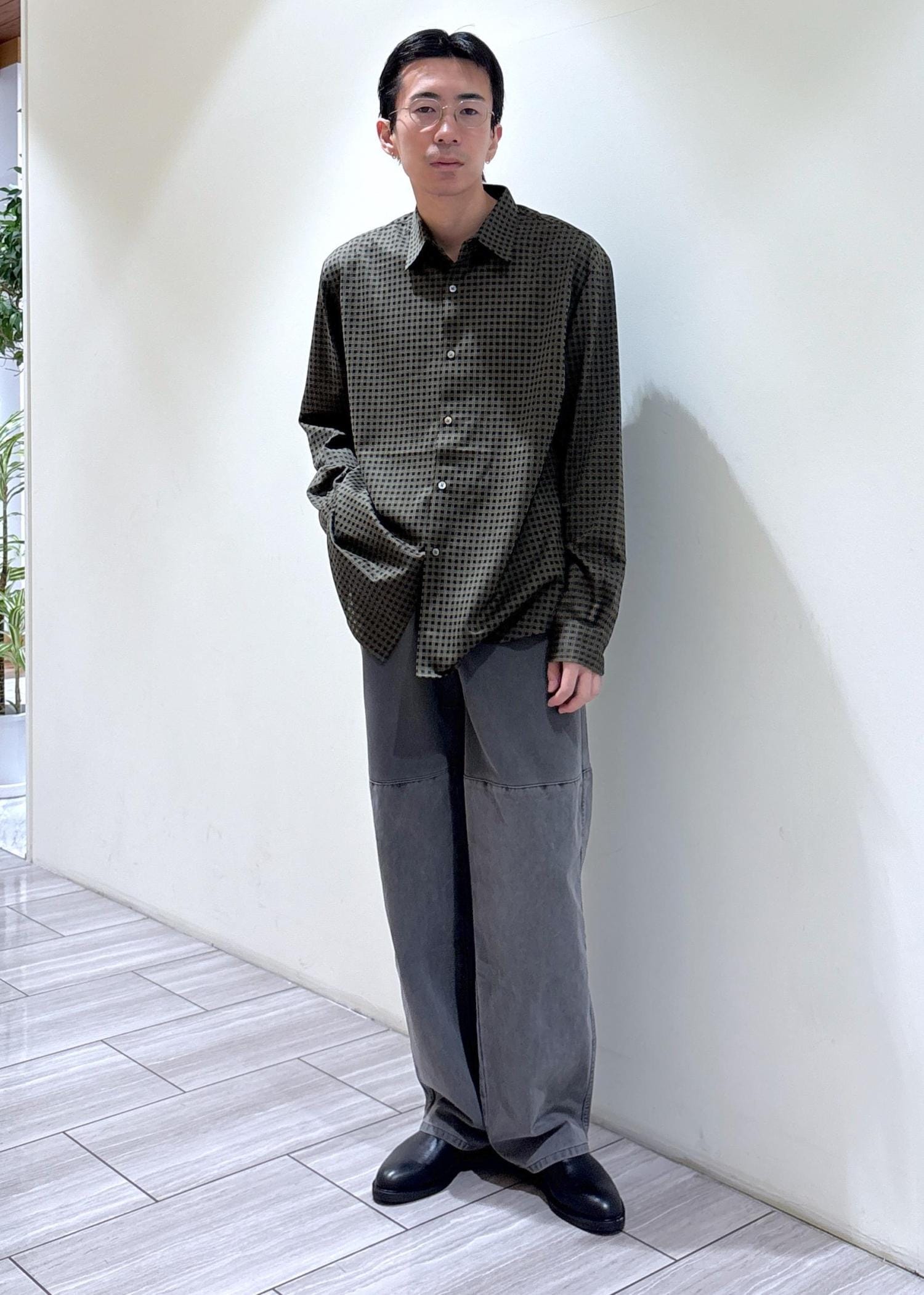 柔らかさのある素材感なので、スウェットやデニムのカジュアルなアイテムとも相性◎