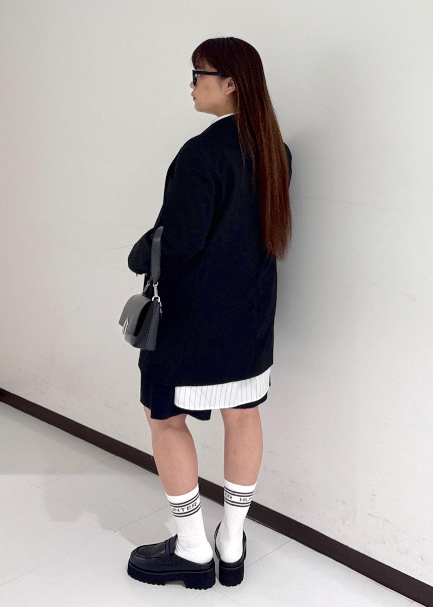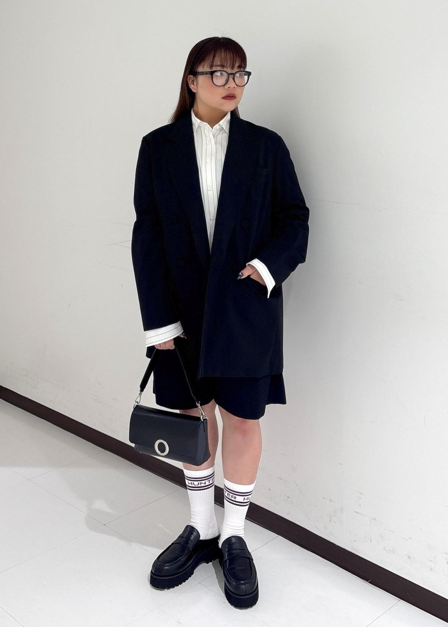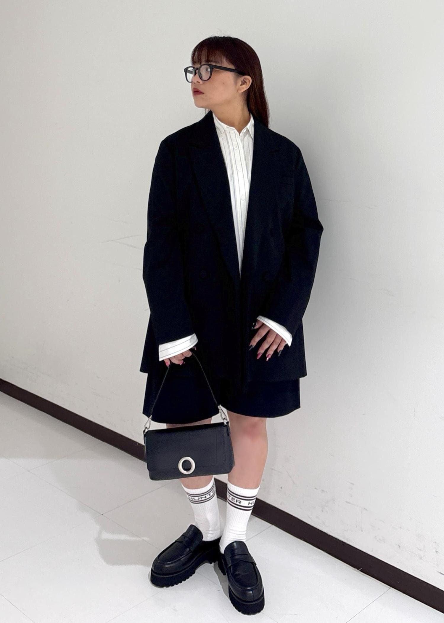 オーバーなサイズがトレンド感を出しつつ、カッコよく仕上げてくれます。マニッシュコーデにも使えてシーン問わず着回せます!