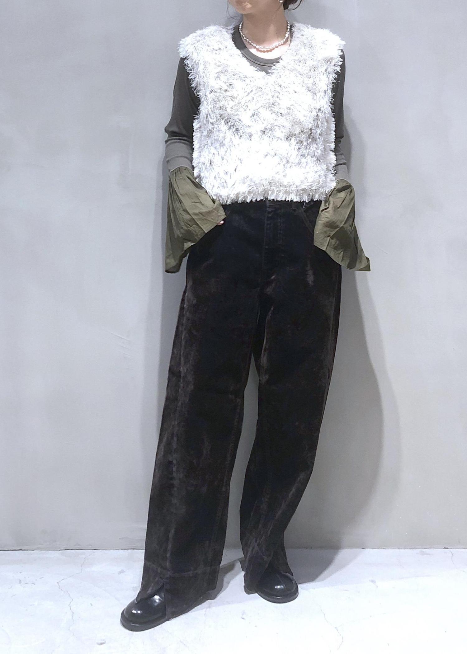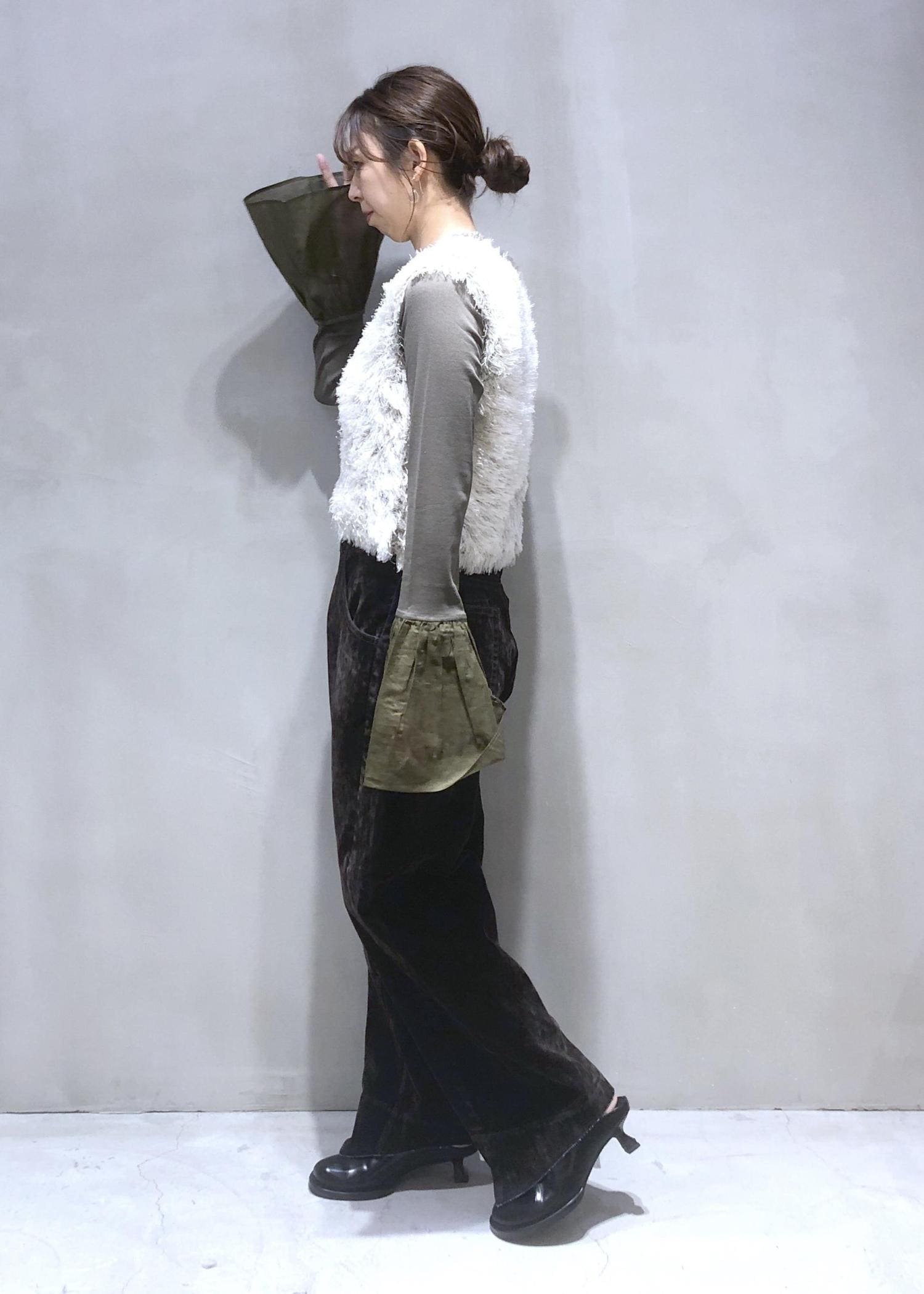 ADAM ET ROPÉ FEMMEフェザーベストキナリ系 / F¥13,860レビューサラッとしたファー素材なので着やすく、暑い時期からTシャツなどに重ねてコーディネートを楽しめます!
